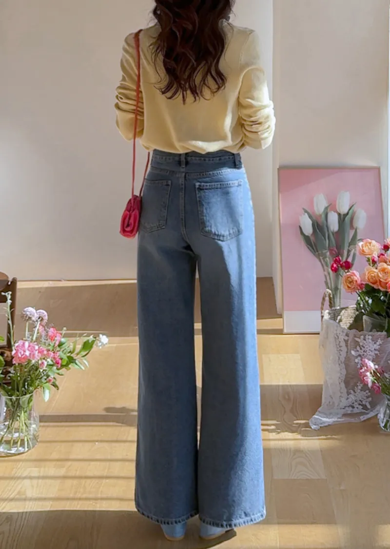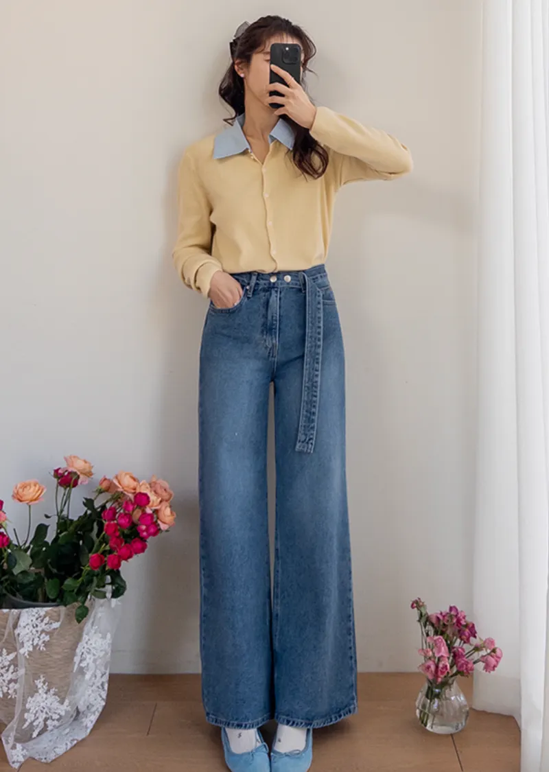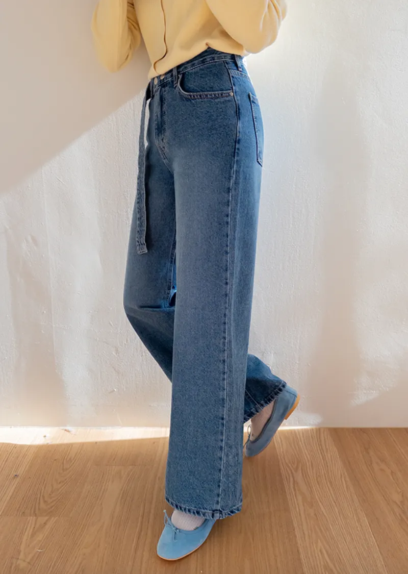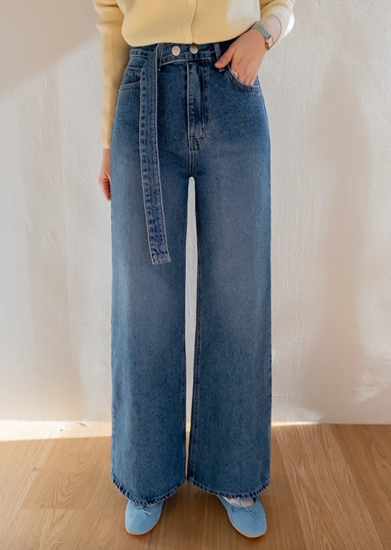 【寬鬆牛仔褲,布料厚實! 】【腰帶設計增添一抹亮色】【自然遮蓋下半身線條! 】【日常穿著的完美之選♥】