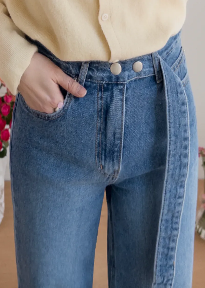 獨特腰帶雙扣設計舒適修身牛仔褲