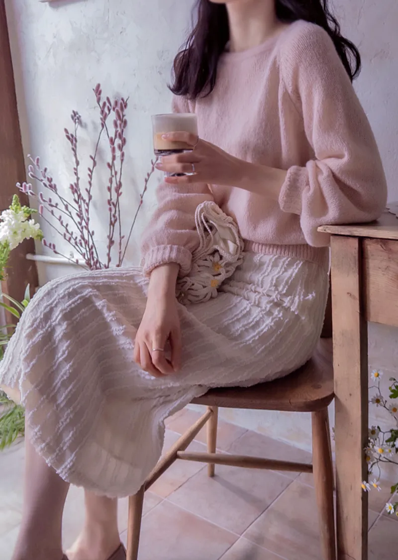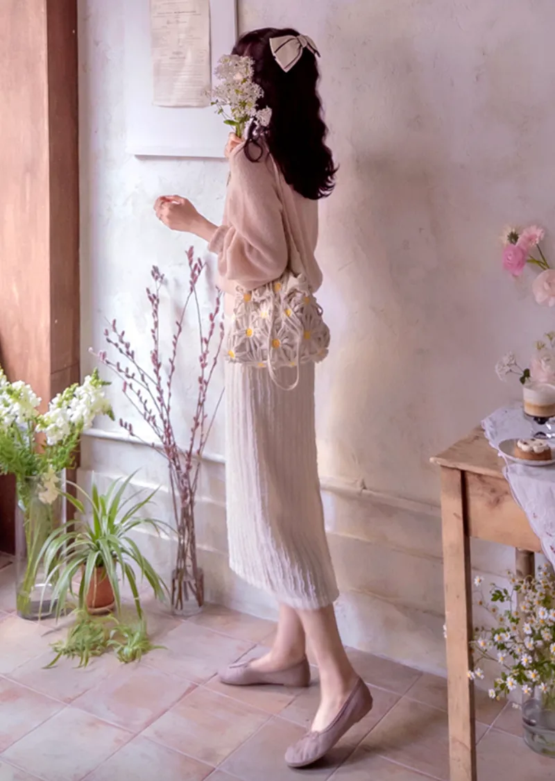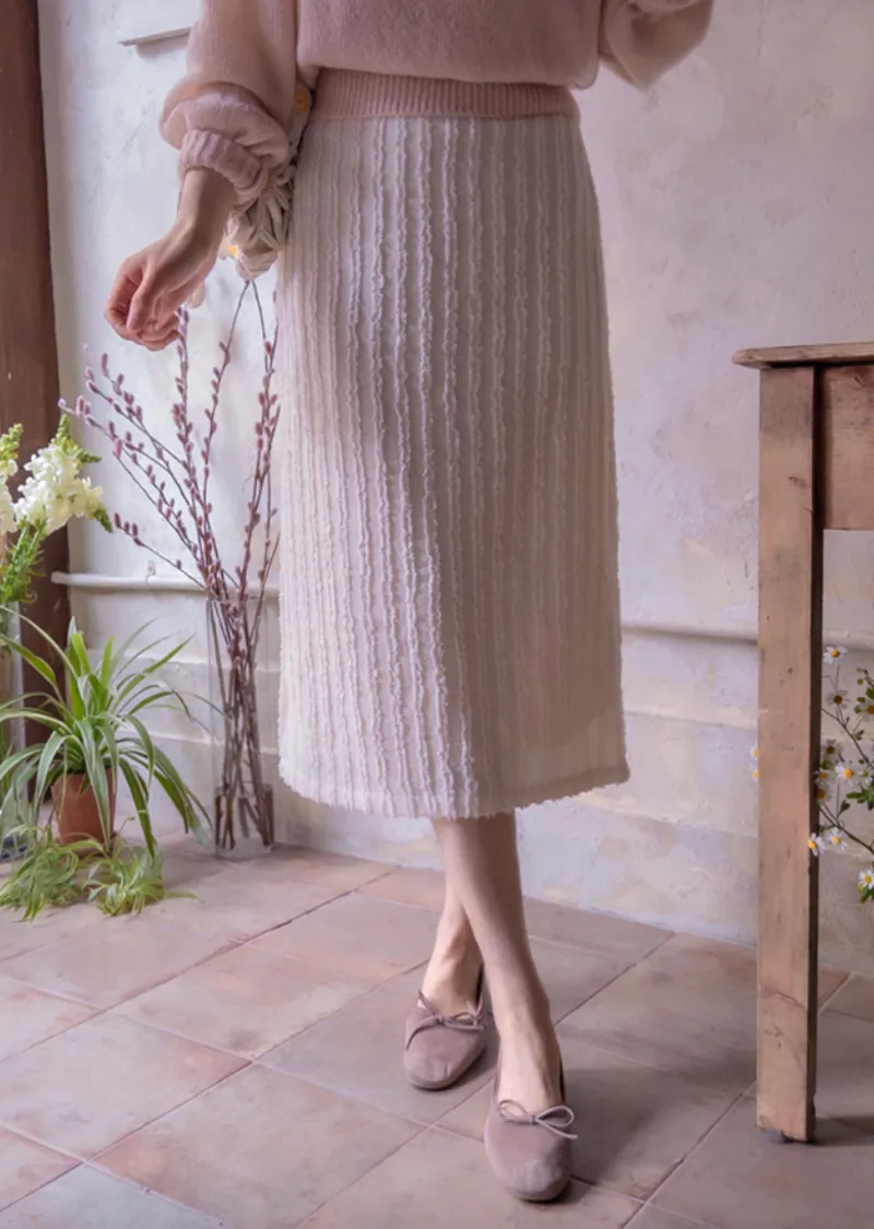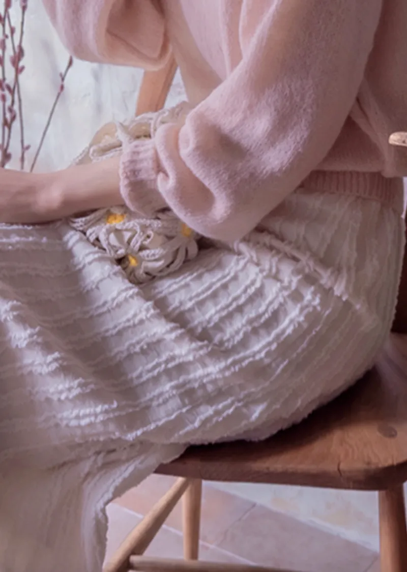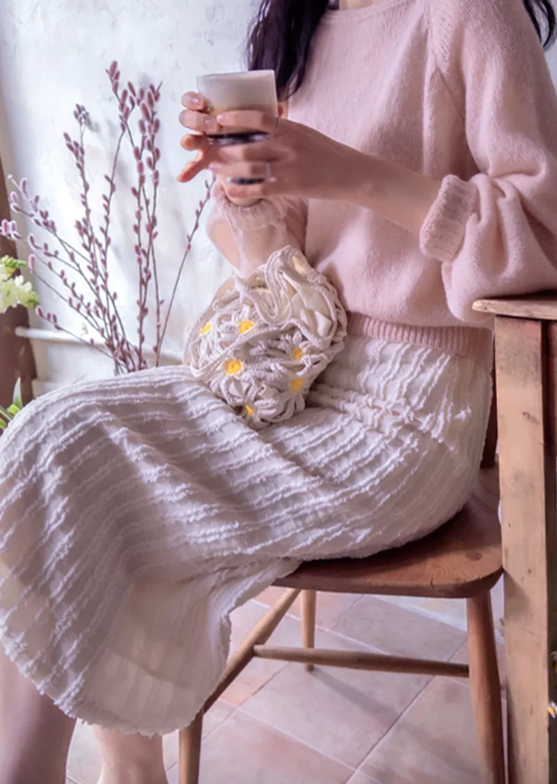 【春季新品】【聚酯纖維內襯】【後腰帶】【後拉鍊】【高品質半身裙】【立體線條可愛半身裙】【捕捉春日氣息的立體圖案】【優美線條,盡顯優雅氣質】【推薦版型時尚可愛】