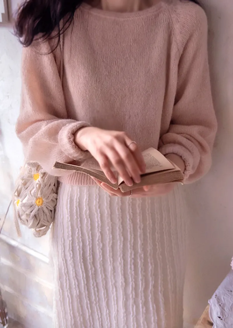 優雅氛圍春季粉彩附綁帶針織上衣