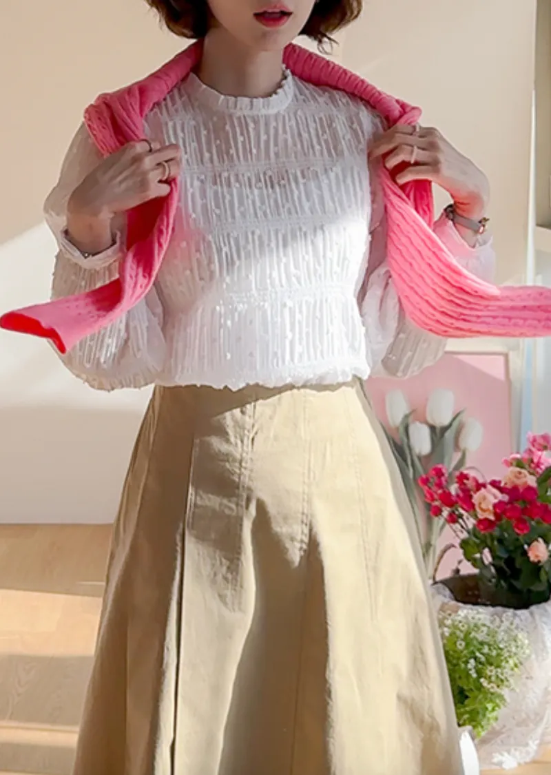 甜美氣息荷葉邊領綁帶排扣上衣