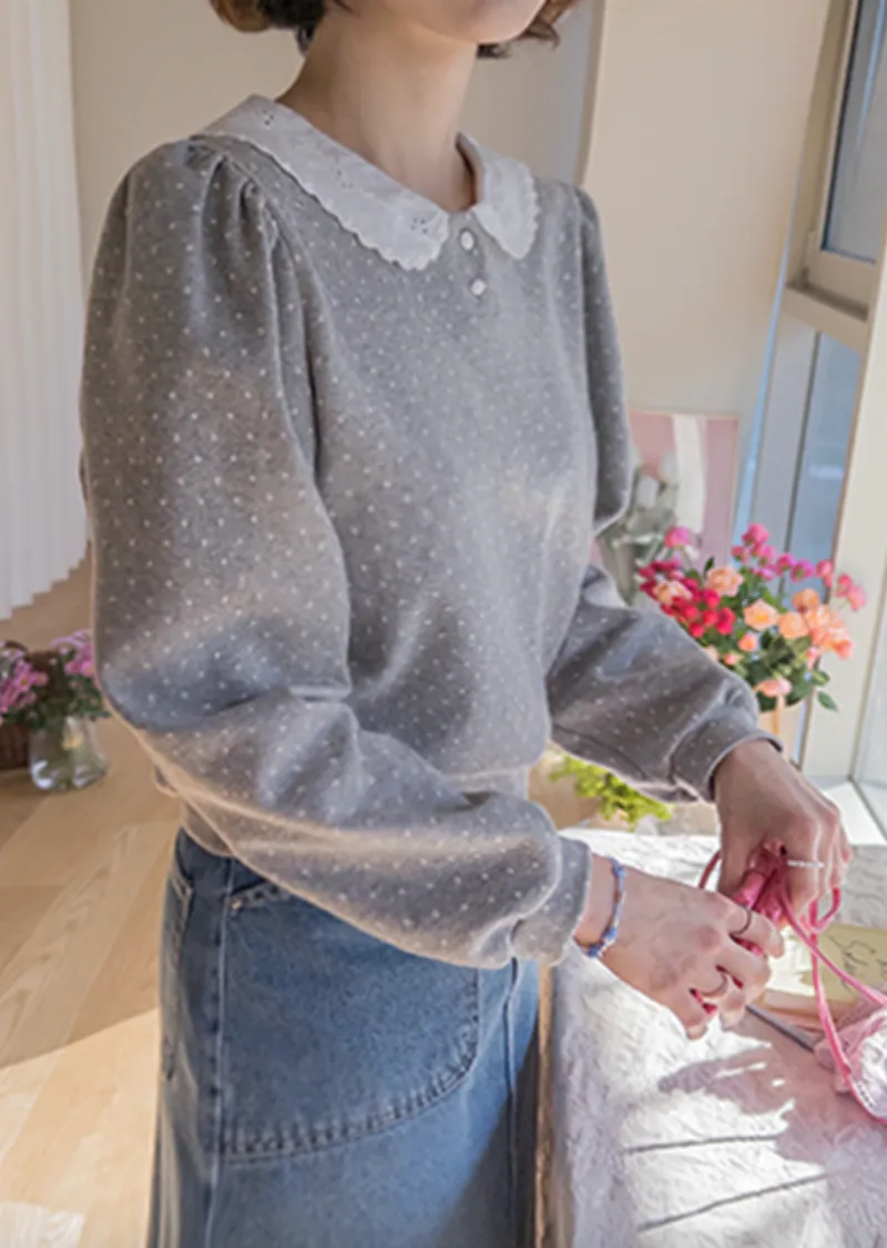 材質:88% 棉,8% 聚酯纖維,4% 氨綸【浪漫氛圍穿搭上衣♥】【可愛的蕾絲領增添了一抹亮色! 】【滿滿的甜蜜】【日常穿著的完美選擇! 】