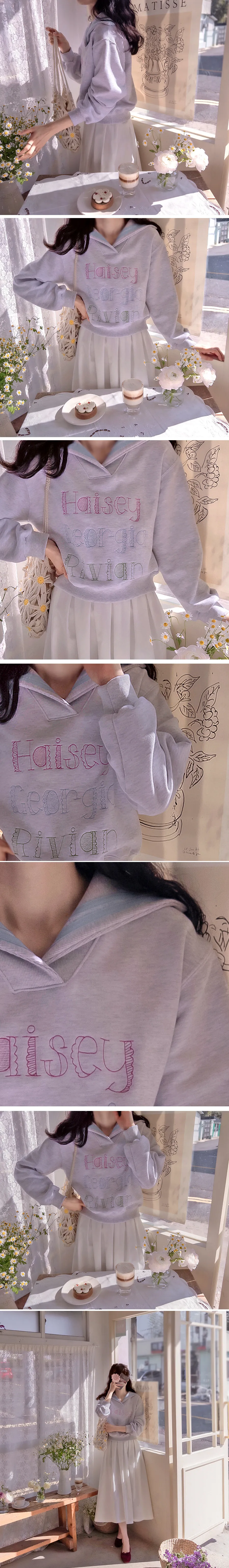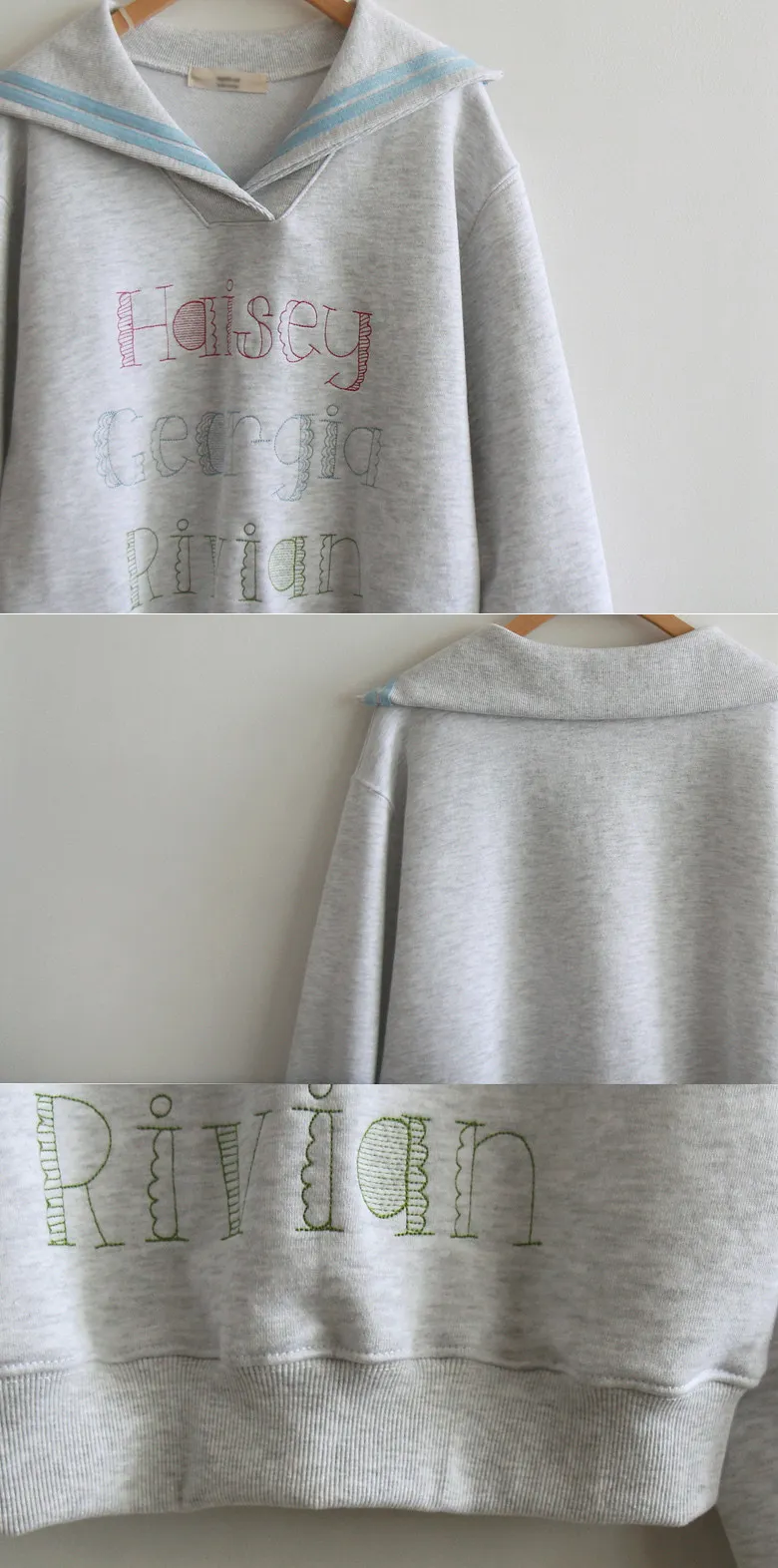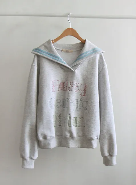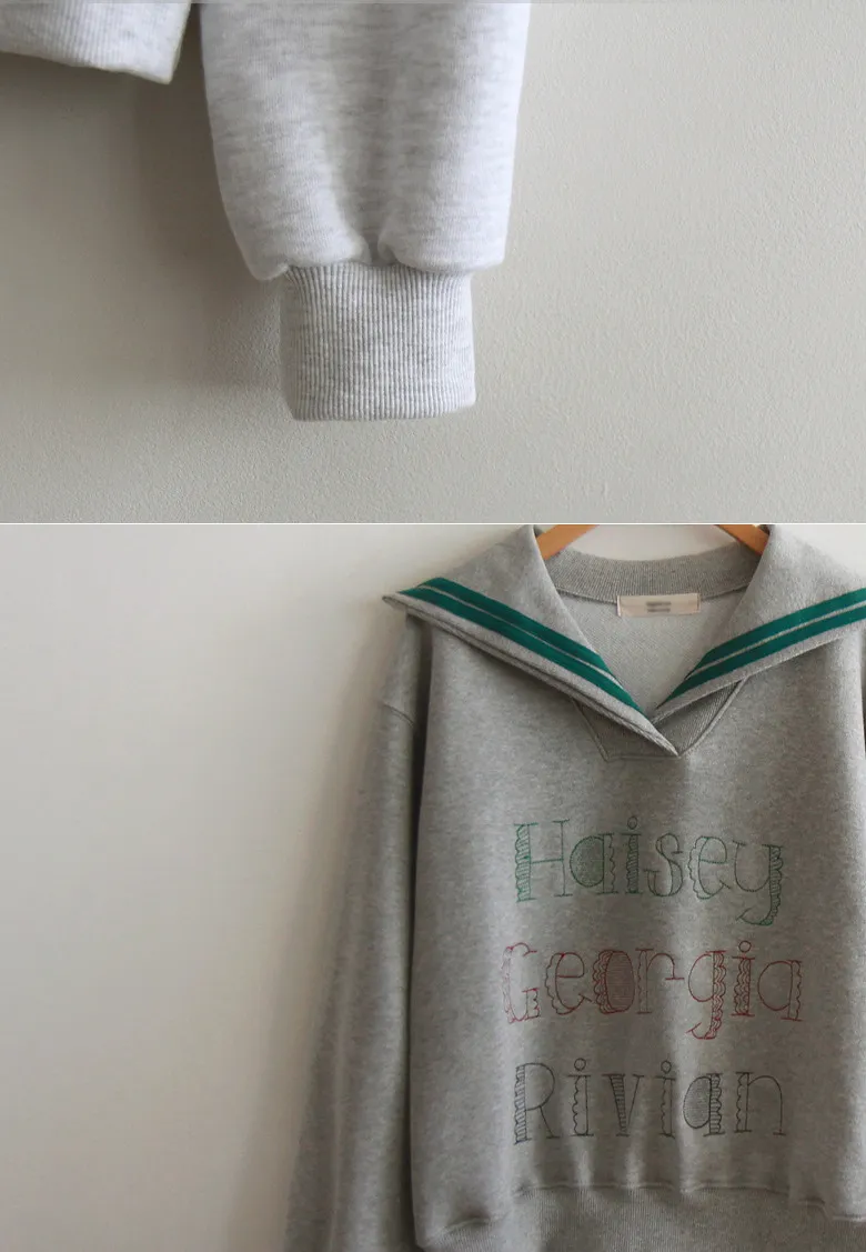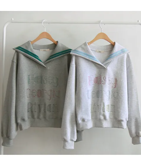 精緻色彩字母刺繡配色水手領穿搭上衣