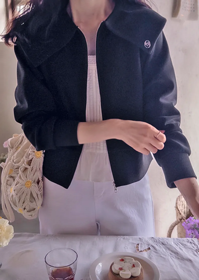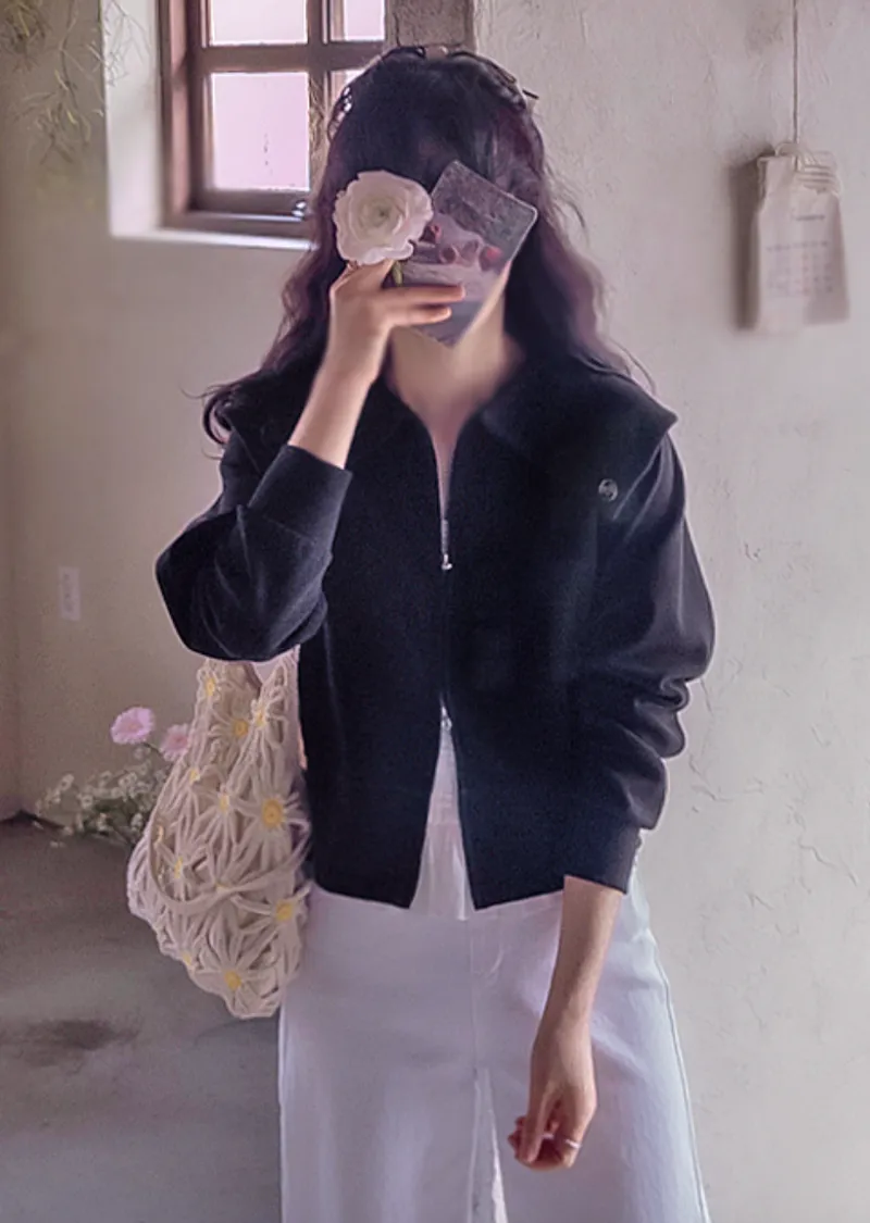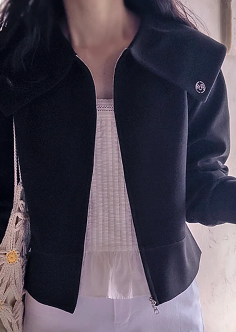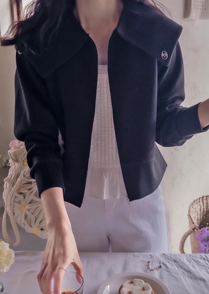 【春季新品】【舒適彈性,含5%氨綸】【開襟式外套,領子漂亮,飾有吊墜,非常適合春天】【領子增添可愛氣息】【拉鍊外套,即將到來的季節日常穿著的理想之選】【強烈推薦,時尚春季外套】】
