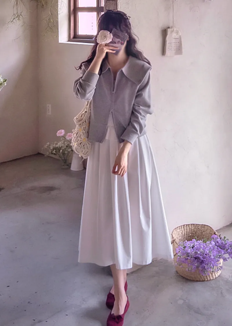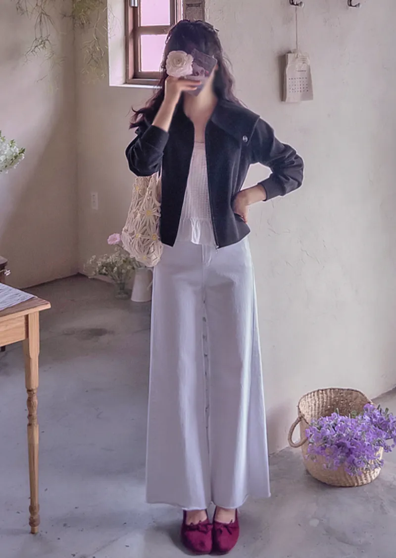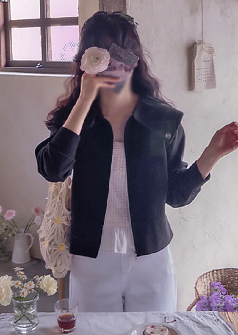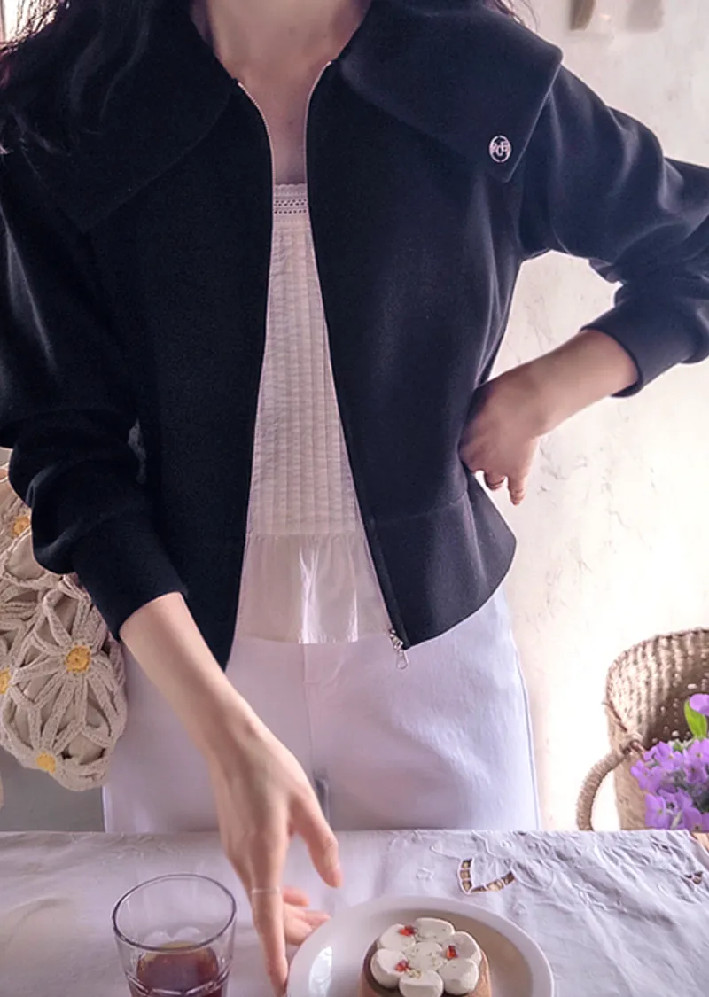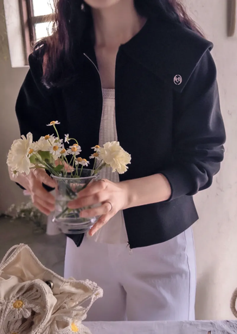【春季新品】【舒適彈性,含5%氨綸】【開襟式外套,領子漂亮,飾有吊墜,非常適合春天】【領子增添可愛氣息】【拉鍊外套,即將到來的季節日常穿著的理想之選】【強烈推薦,時尚春季外套】】