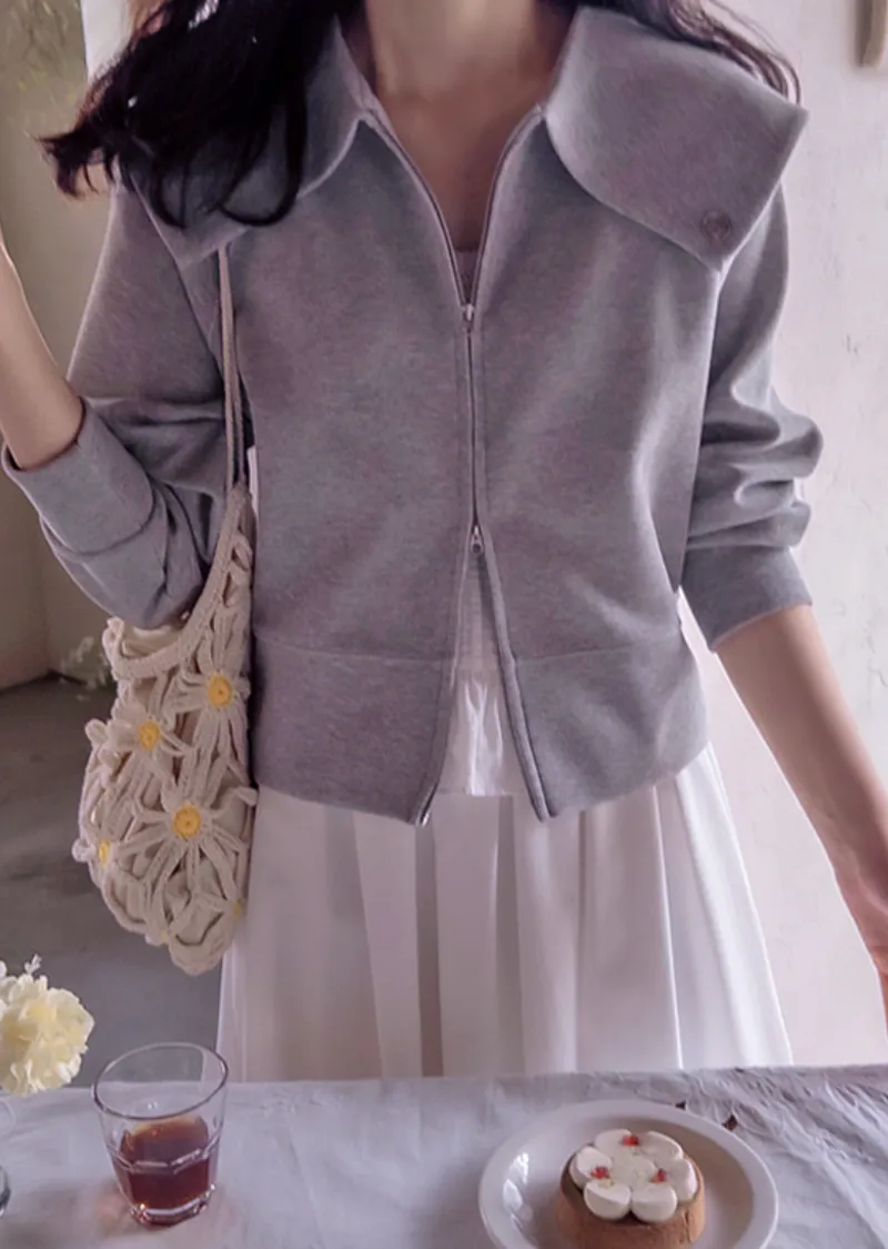 可愛領子點綴吊墜裝飾雙拉鍊外套