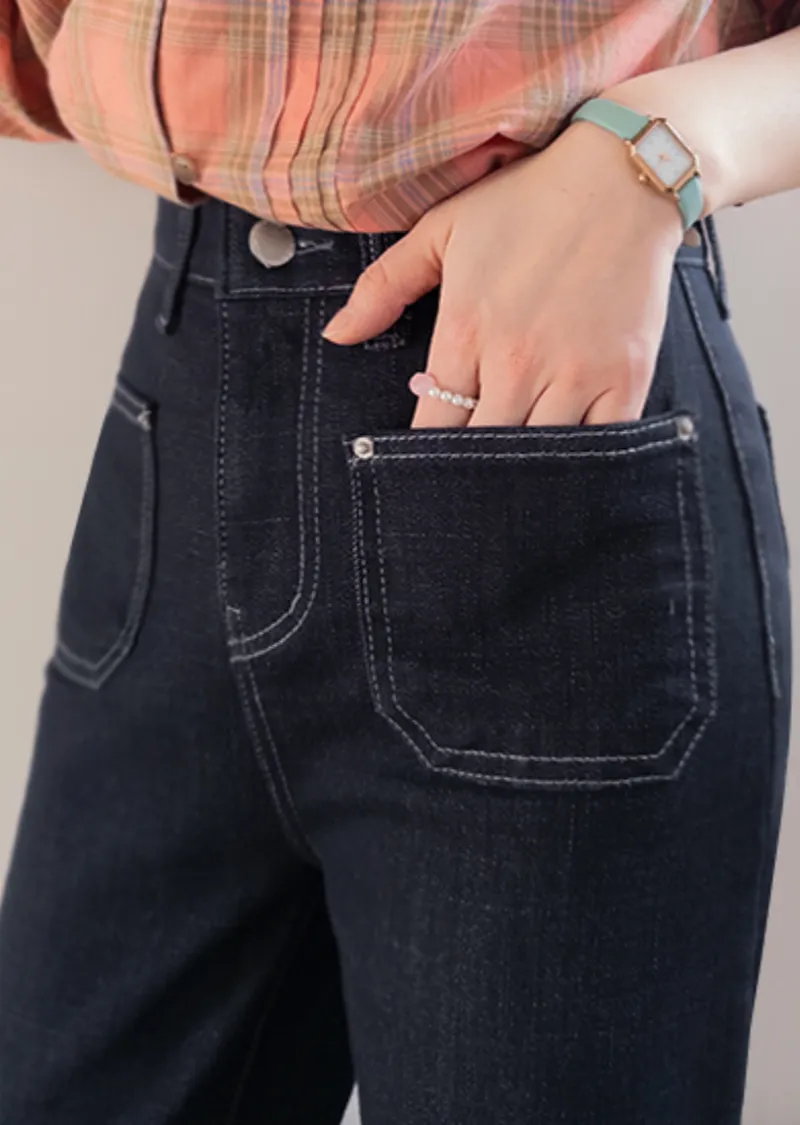 獨特縫線口袋設計舒適彈性修身牛仔褲