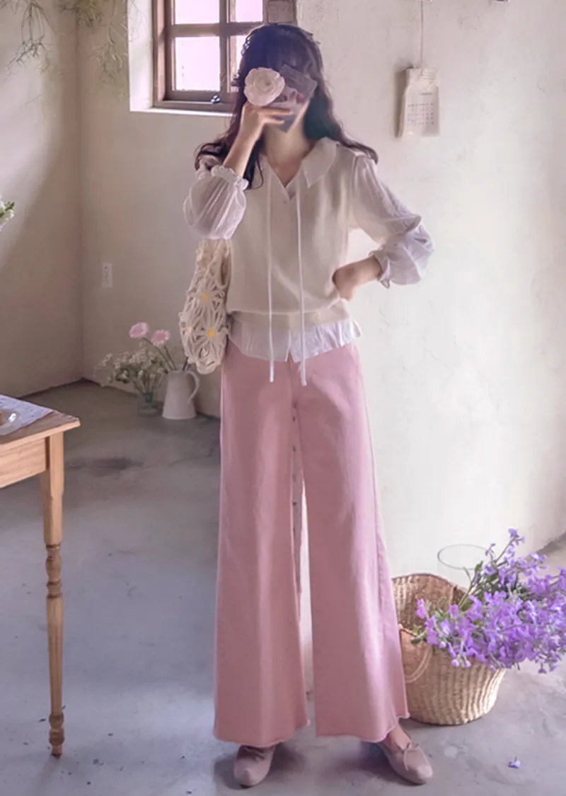 春日柔和色調腰部隱藏鬆緊舒適休閒褲