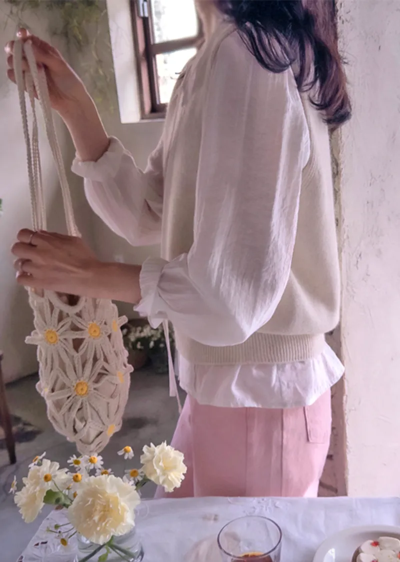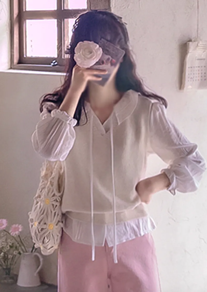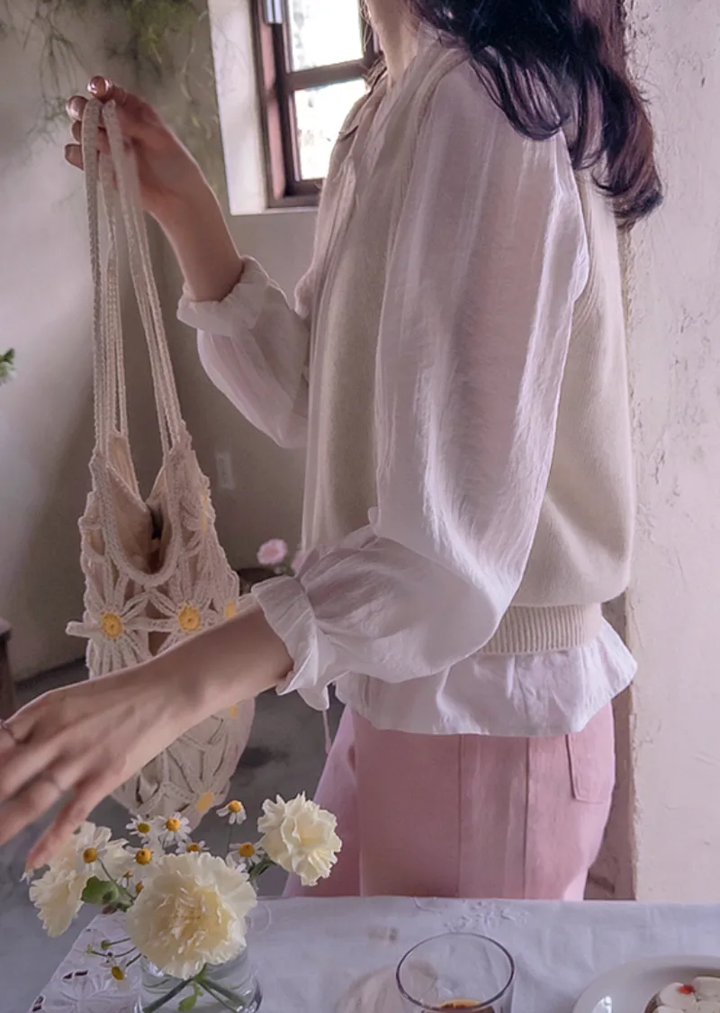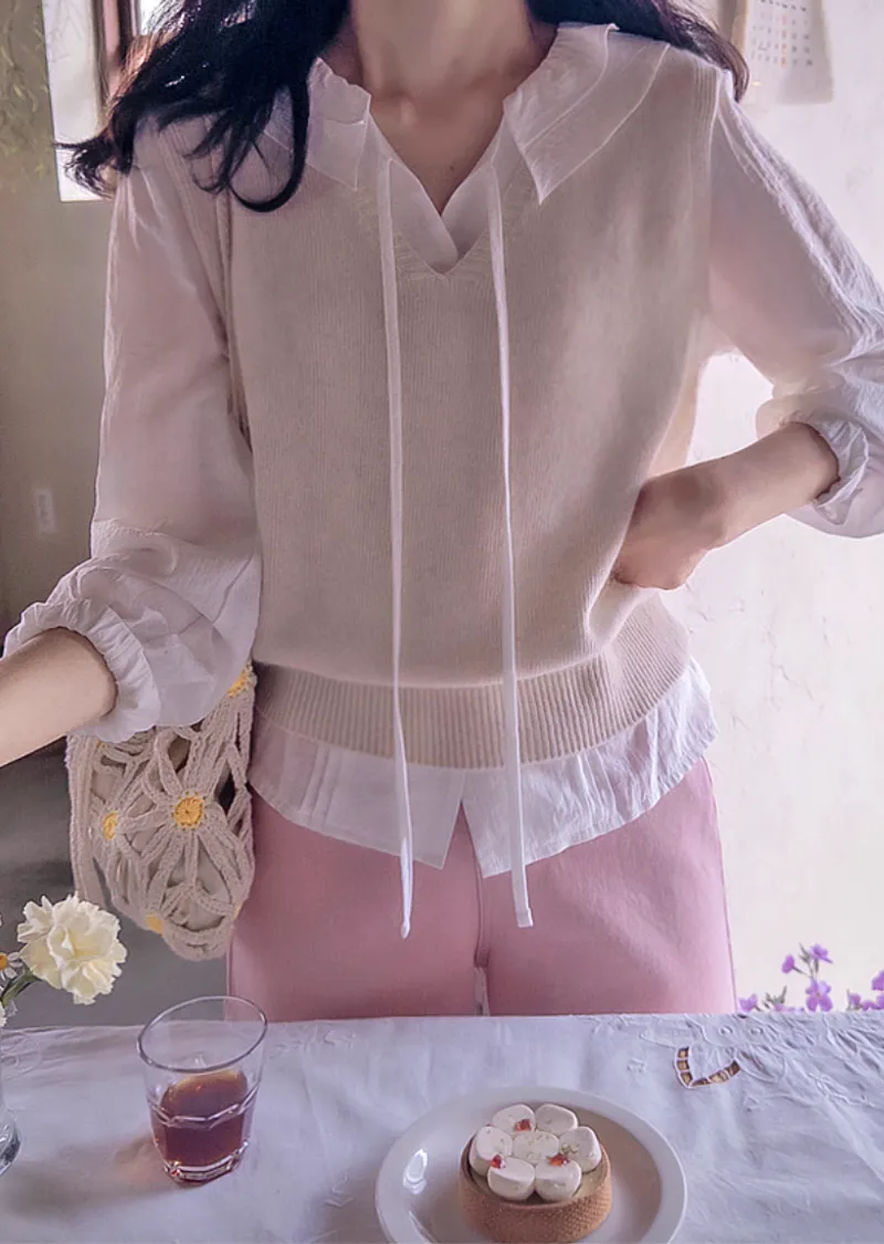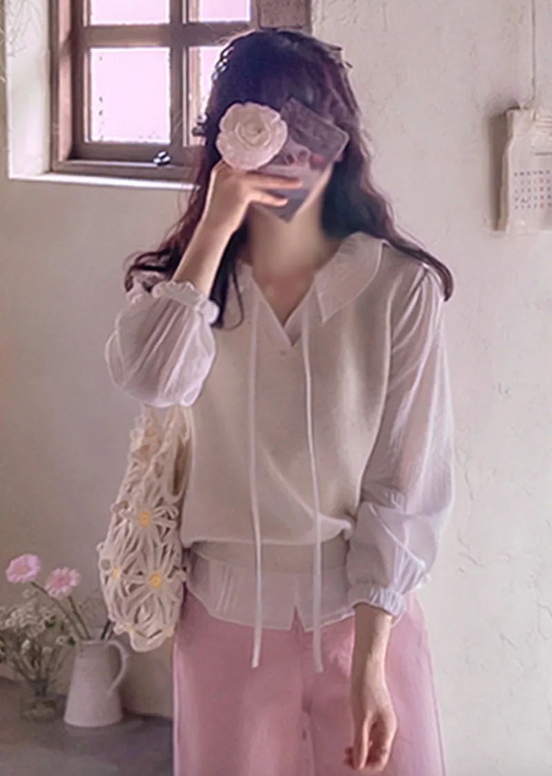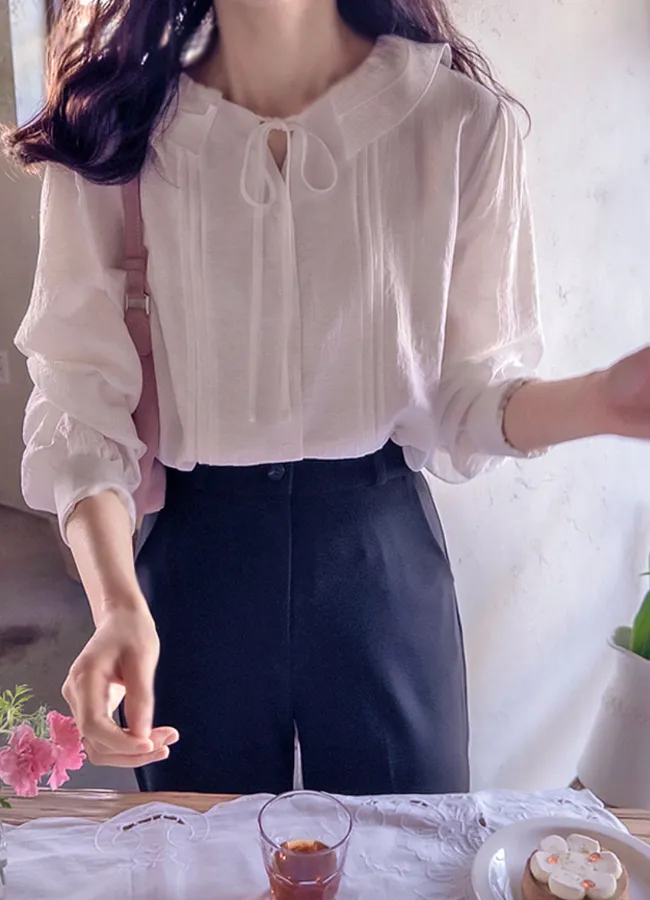 可愛甜美雙層次領綁帶褶襉排扣上衣