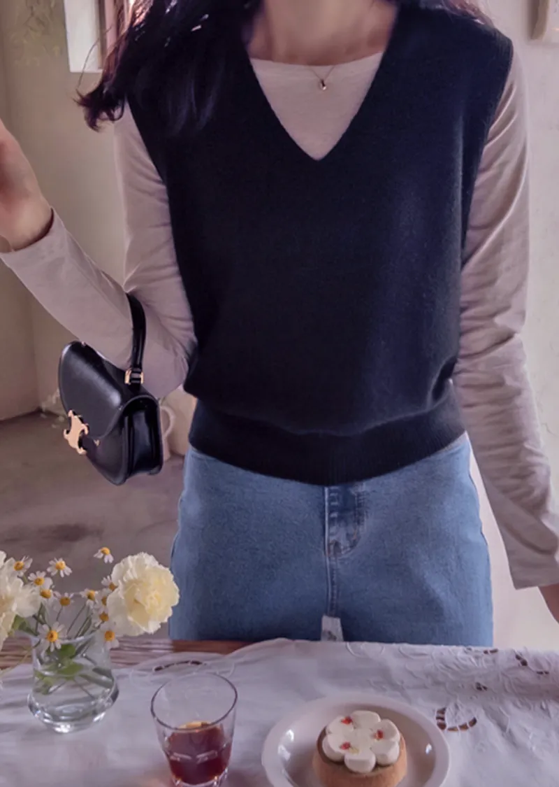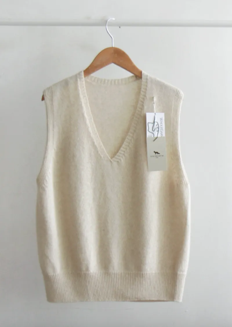 【含15%真狐狸毛與10%羊毛】【高品質柔軟狐狸毛羊毛混紡保暖針織背心】【整件服裝:無縫針織工藝,活動舒適,廓形自然優美】【百搭易配,盡顯精緻優雅】【易於搭配,值得擁有】