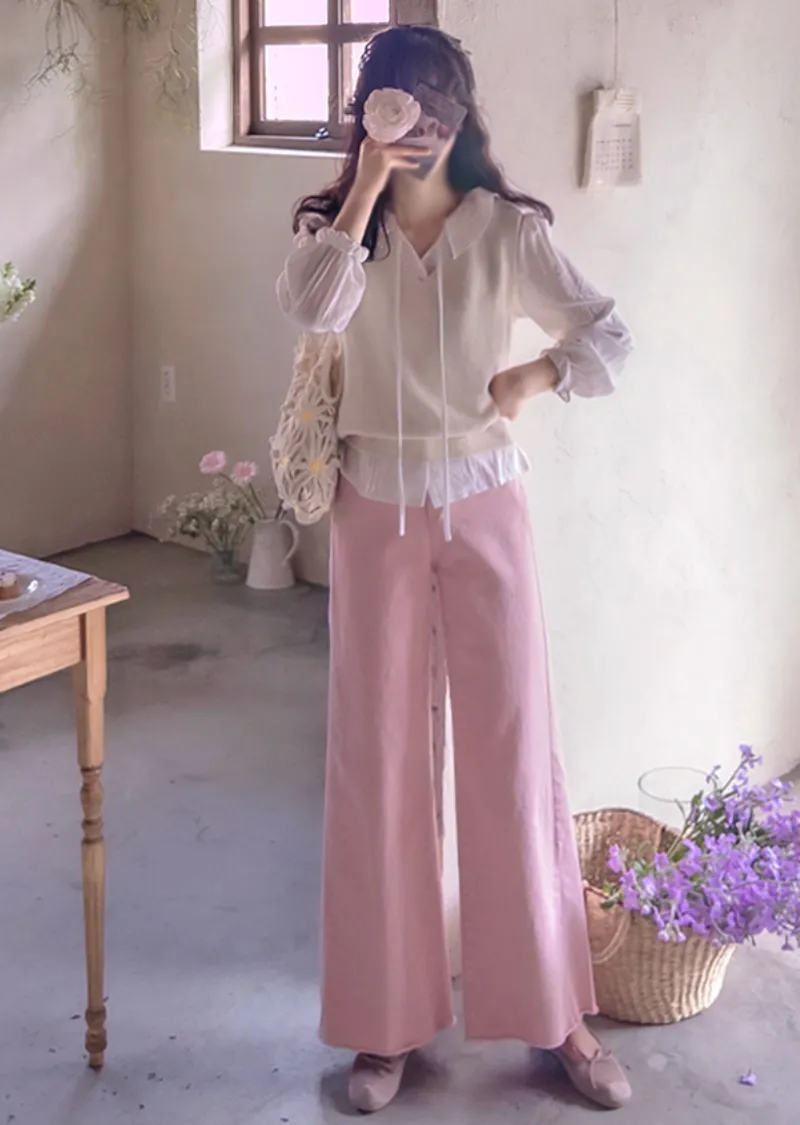 春日柔和色調腰部隱藏鬆緊舒適休閒褲