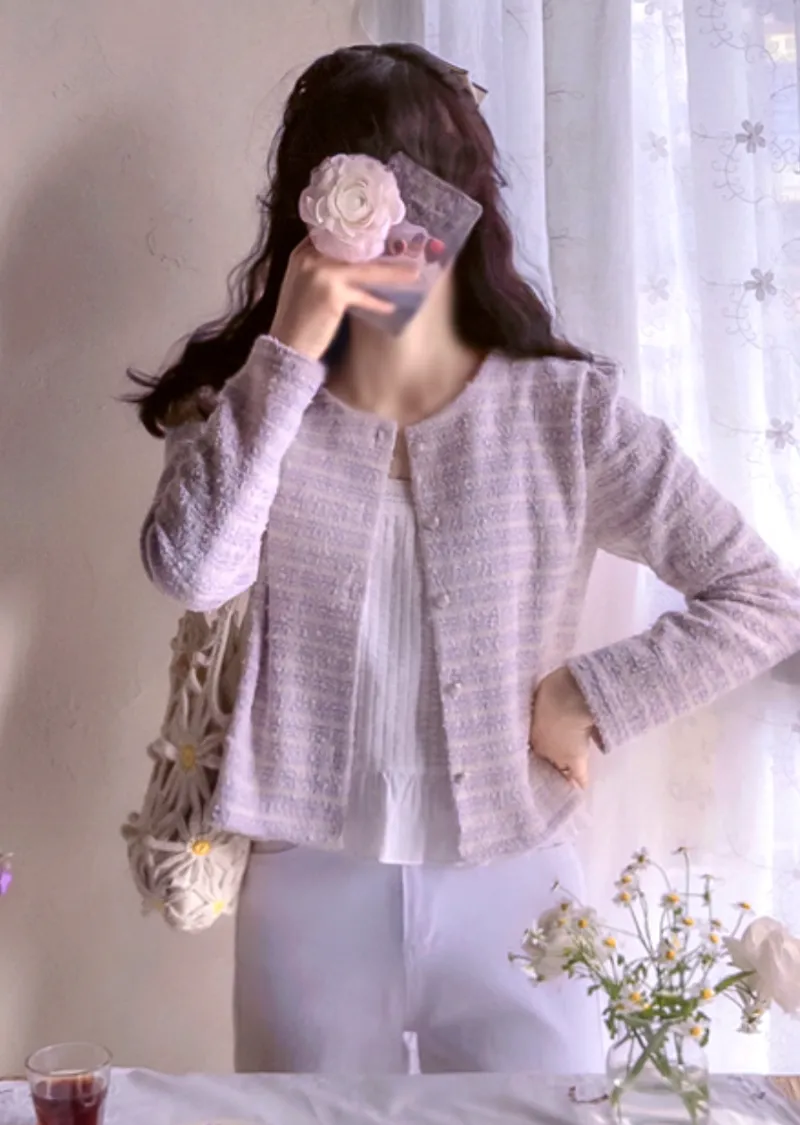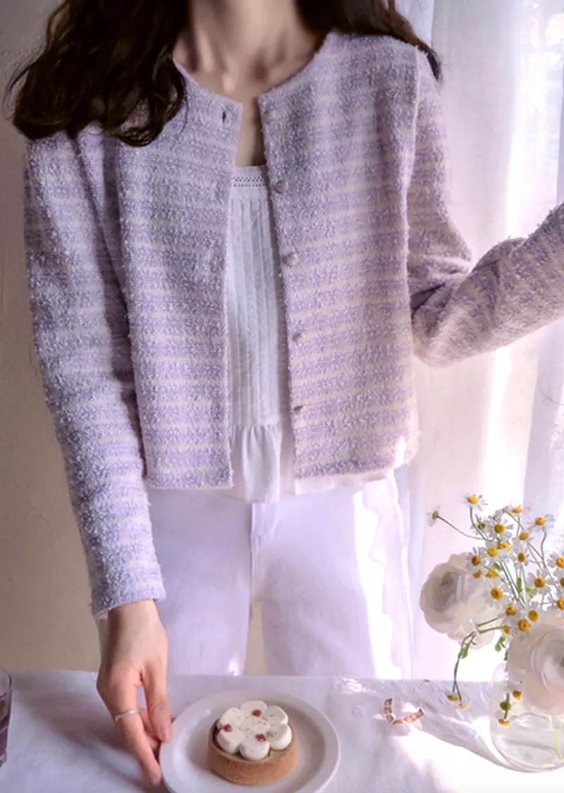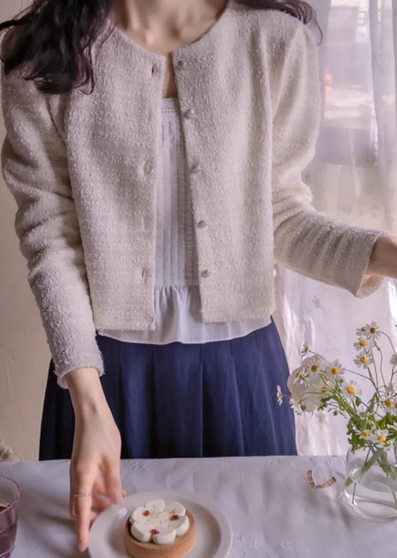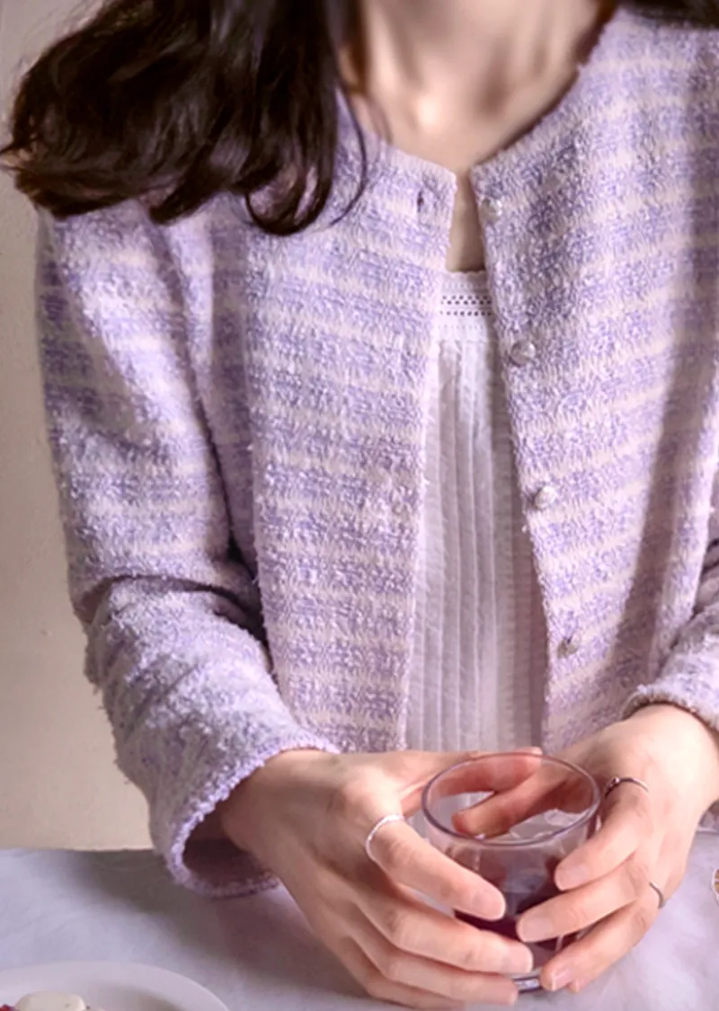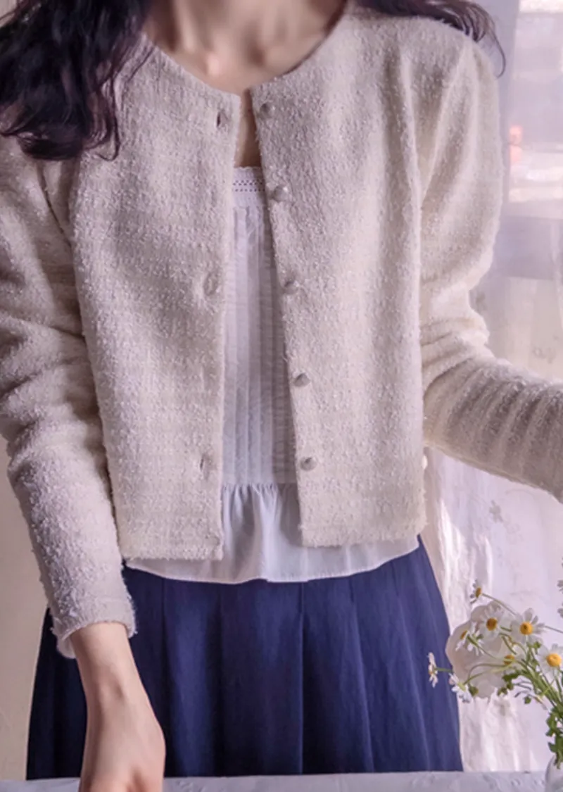 輕盈舒適獨特鈕扣花呢外套