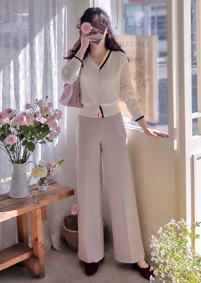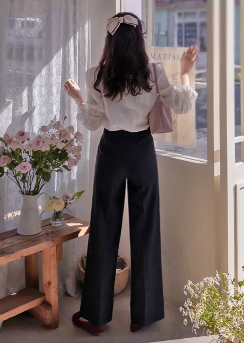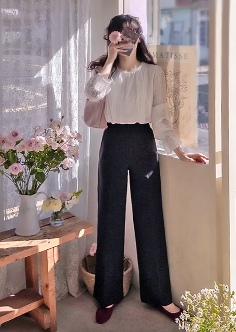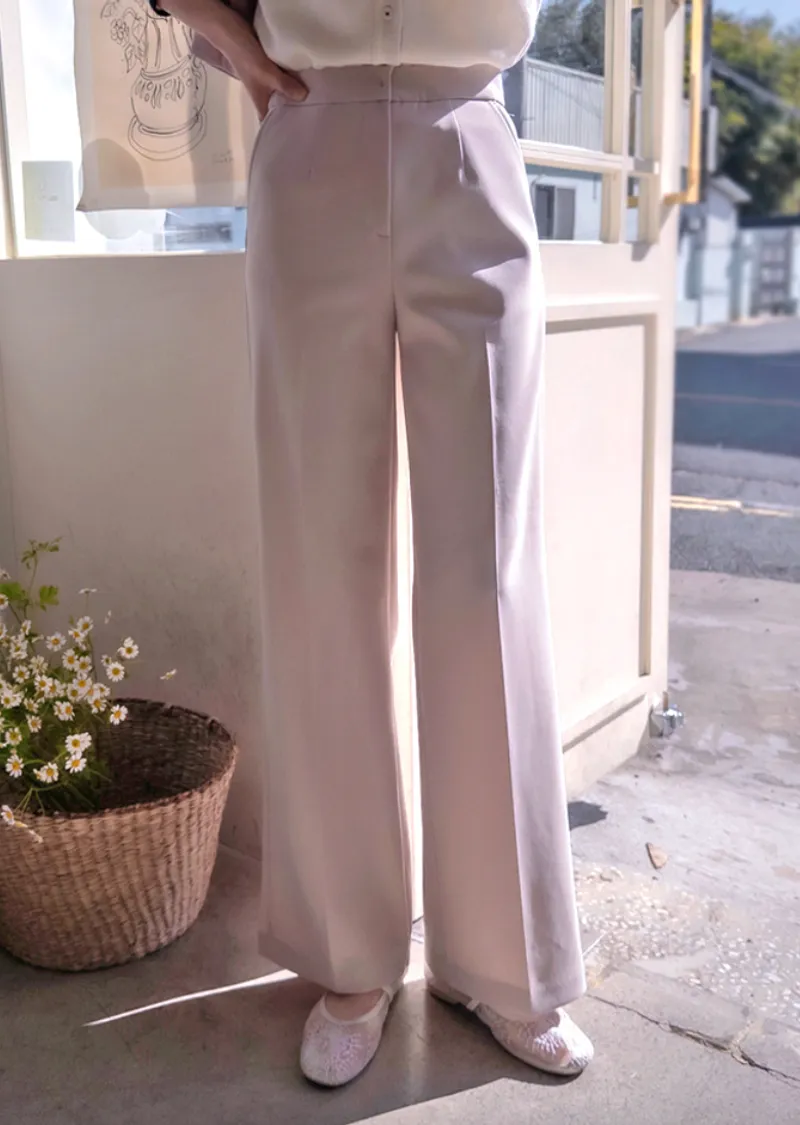 鬆緊帶】【修身彈性面料,寬鬆版型,半闊腿飄逸長褲】【平整版型,無需擔心褶皺】【彈性氨綸面料,穿著舒適】【舒適貼合的褲邊設計】