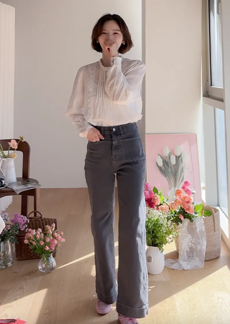 【100%純棉,穿著舒適♡】【領口荷葉邊和蕾絲細節,展現女性柔美氣質】【肩部褶皺和袖口收褶,打造甜美泡泡袖廓形】【單穿也十分出彩】