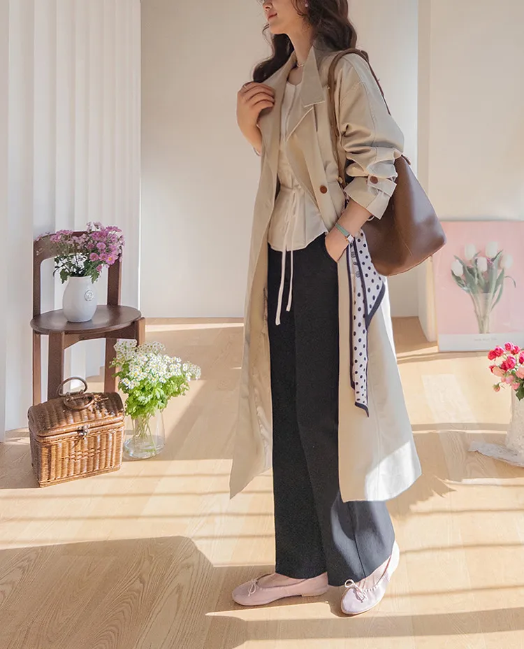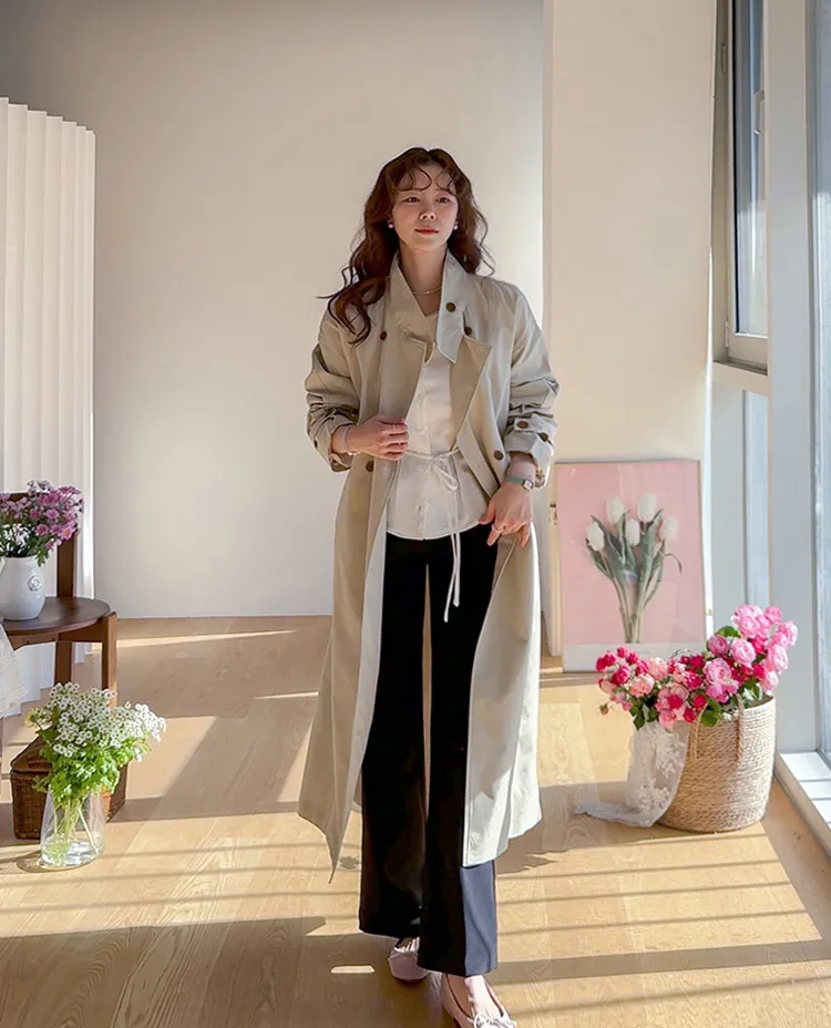 經典奢華雙扣設計附腰帶長款風衣外套