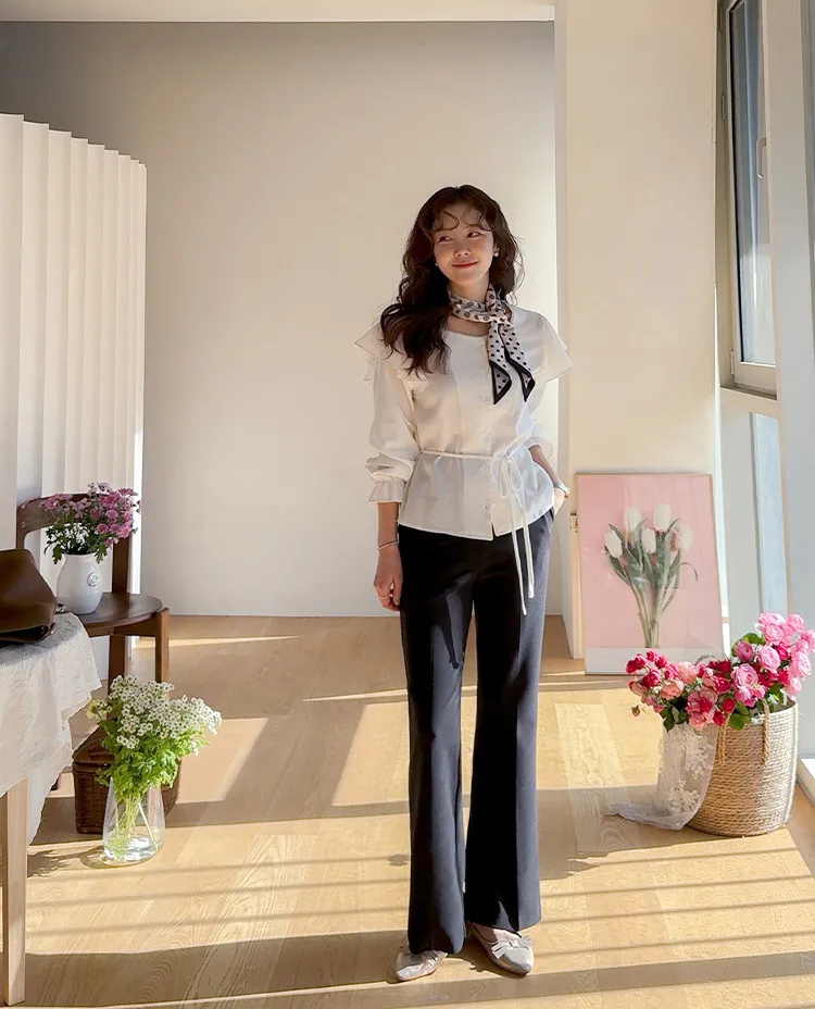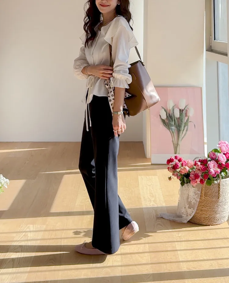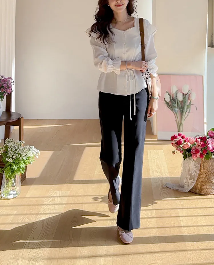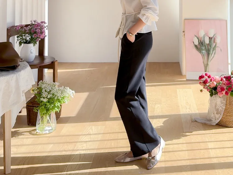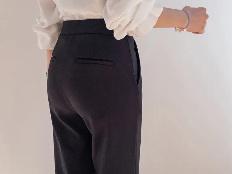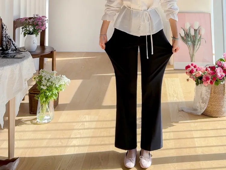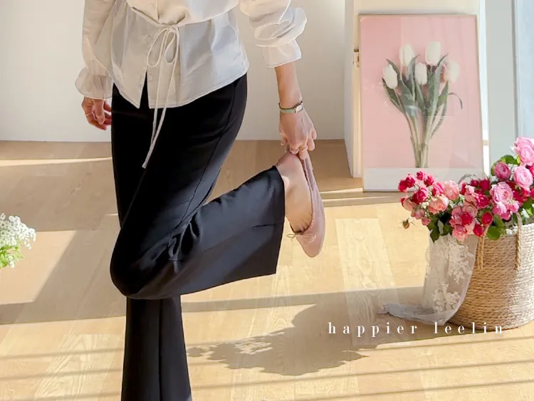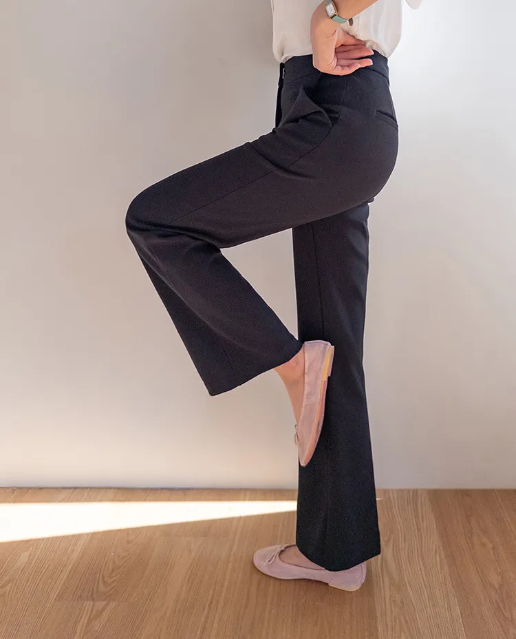 【彈性氨綸布料,穿著非常舒適】【設計使腿部更顯修長】【俐落線條飄逸的靴型褲型! 】【日常和工作場合都適合♡】