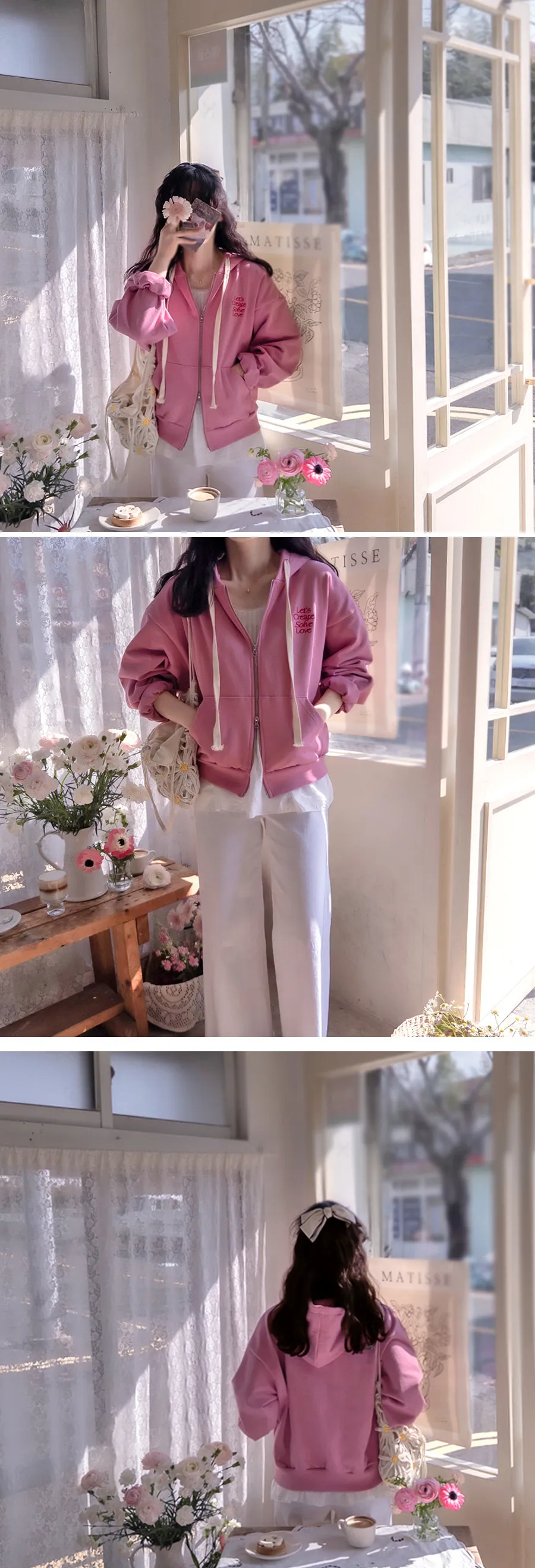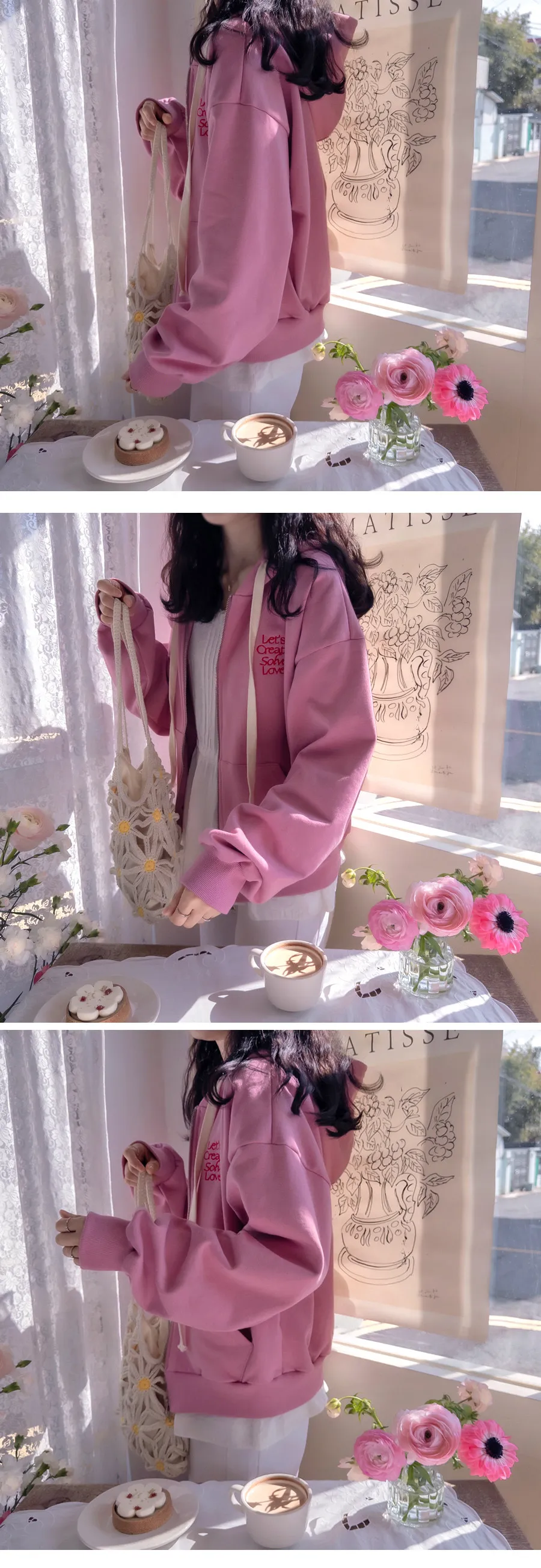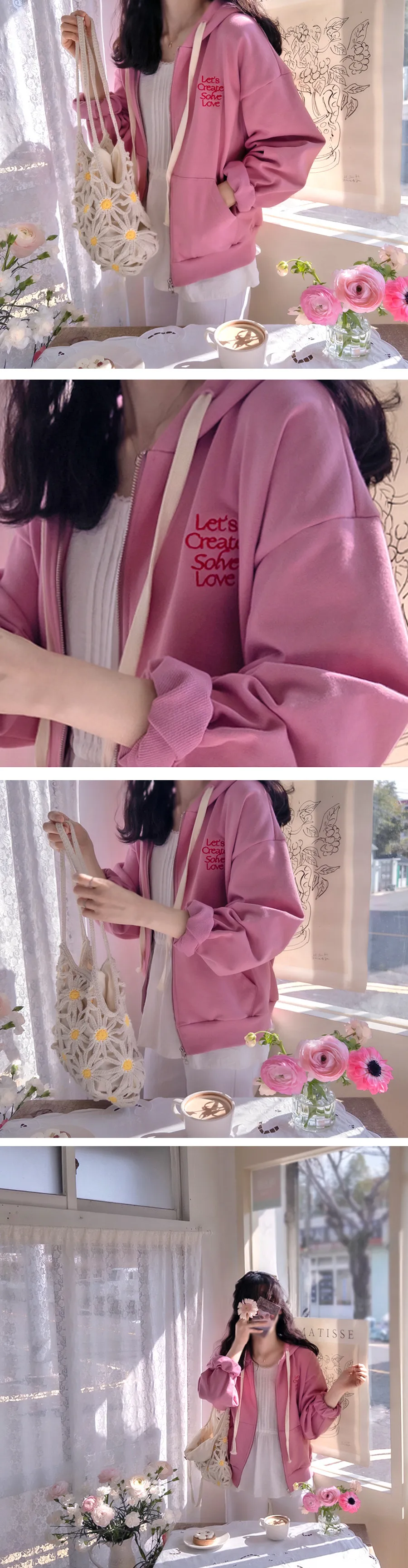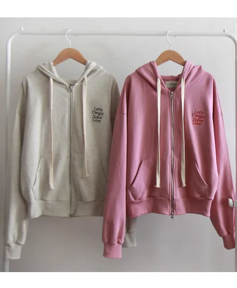 【春季新品】【充滿春日氣息的可愛連帽拉鍊外套】【舒適百搭的日常單品,增添字母刺繡為亮點】【基礎配色,百搭實用】【推薦春季日常連帽拉鍊外套】