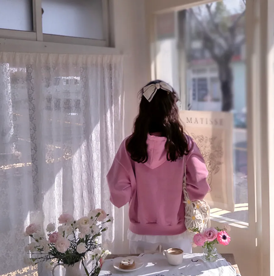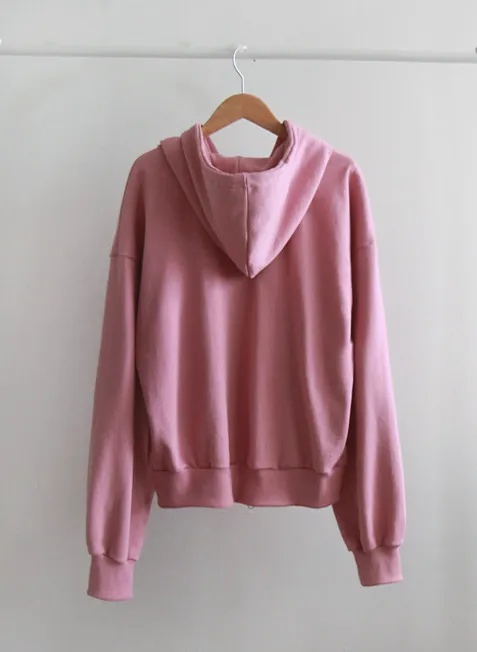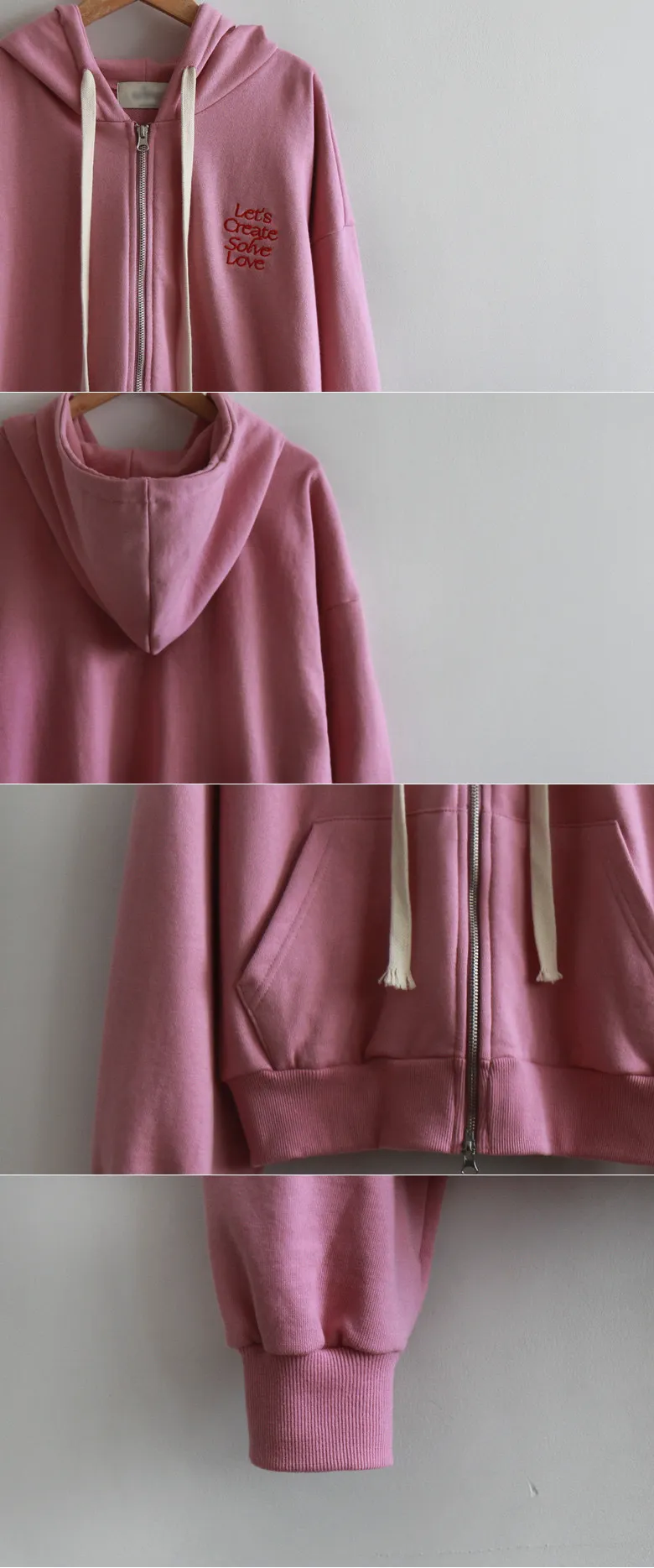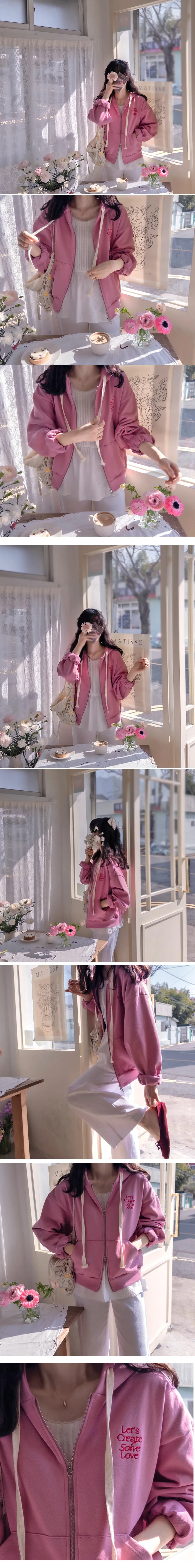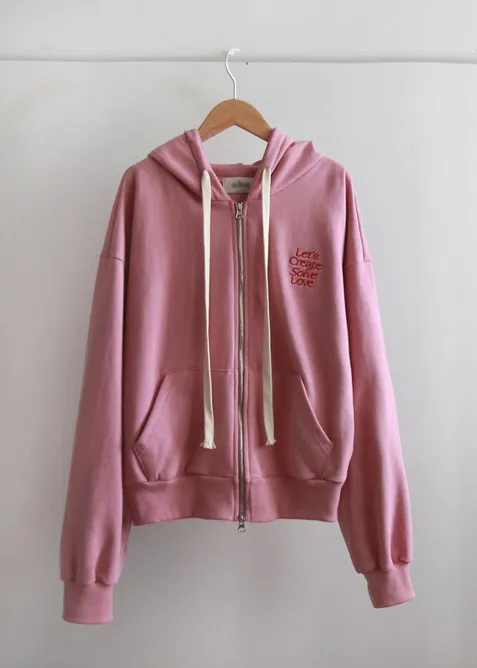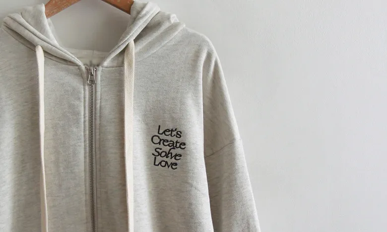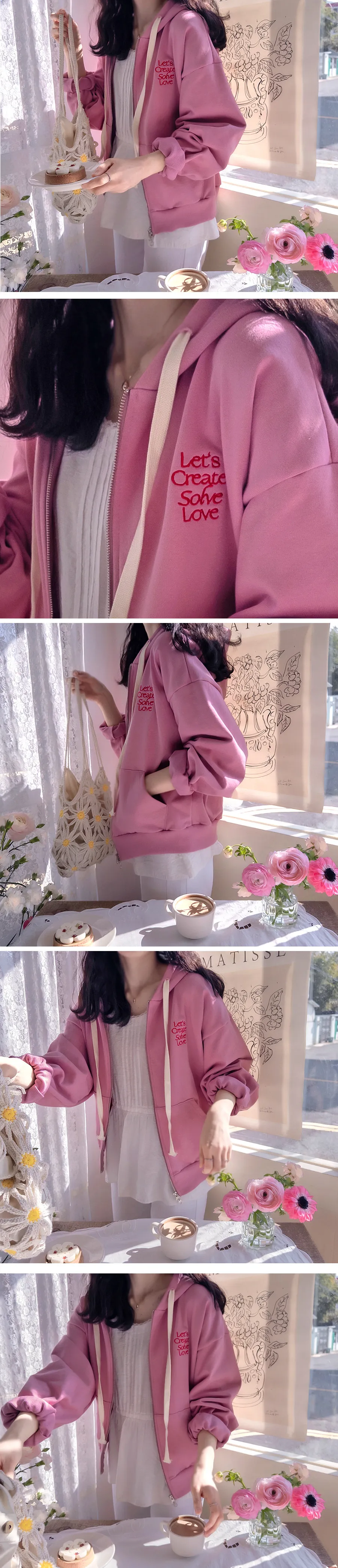 可愛春日氣息點綴字母刺繡連帽拉鍊外套