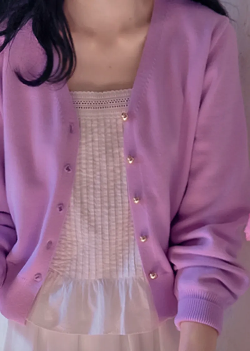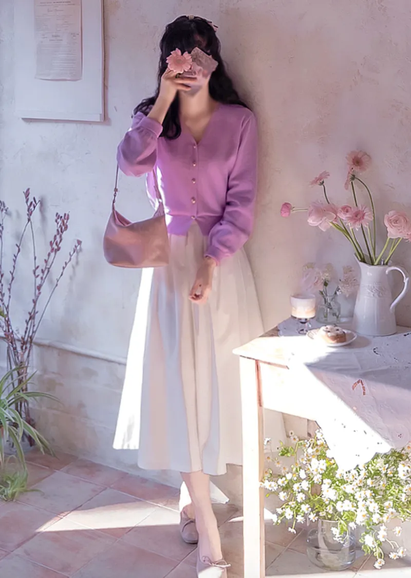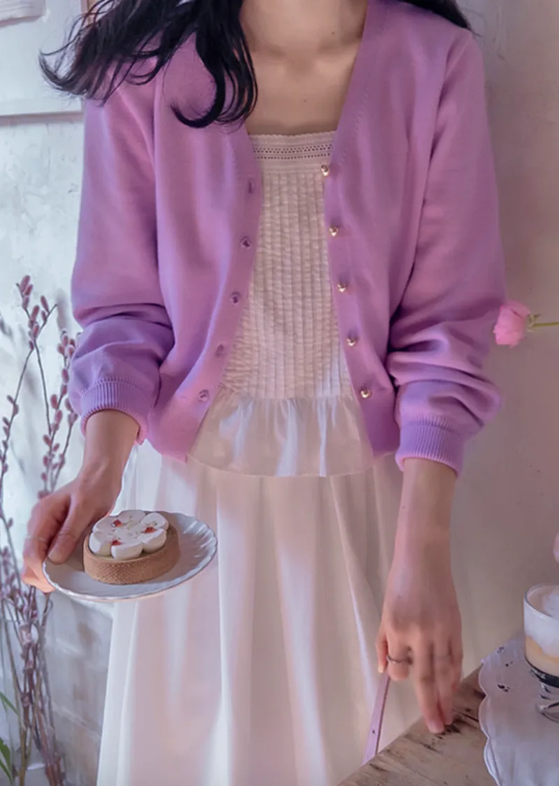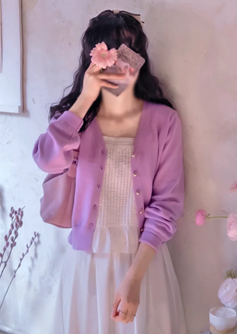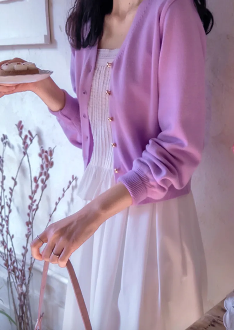 【春季新品】【柔軟彈性針織布料】【粉彩色系,充滿春日氣息的亮色針織衫】【精緻V領搭配金色鈕扣,獨特設計】【泡泡袖設計,盡顯優雅氣質】【柔軟彈性布料,穿著舒適】【充滿春日氣息的針織衫】