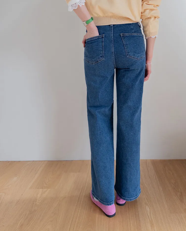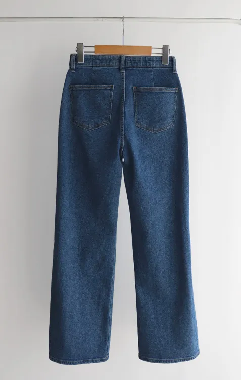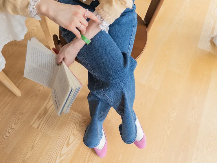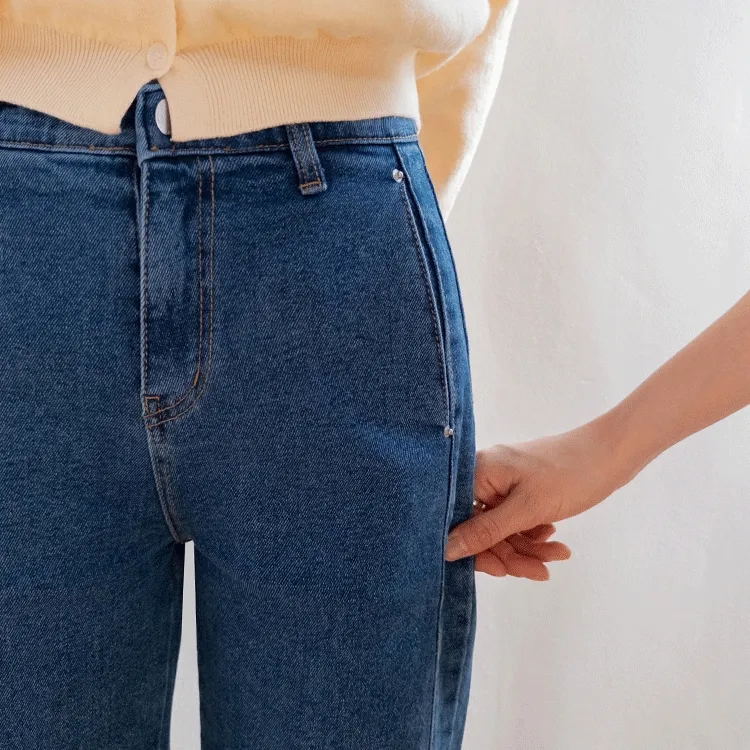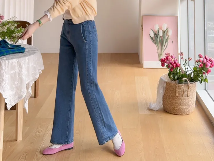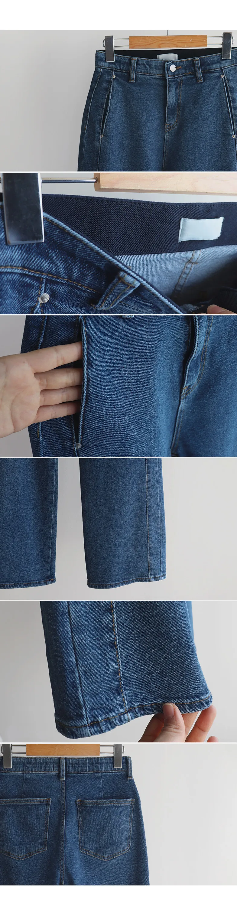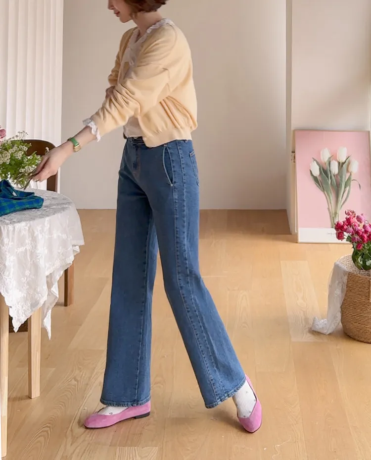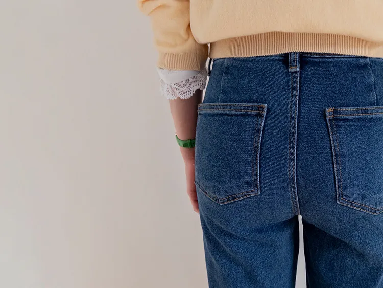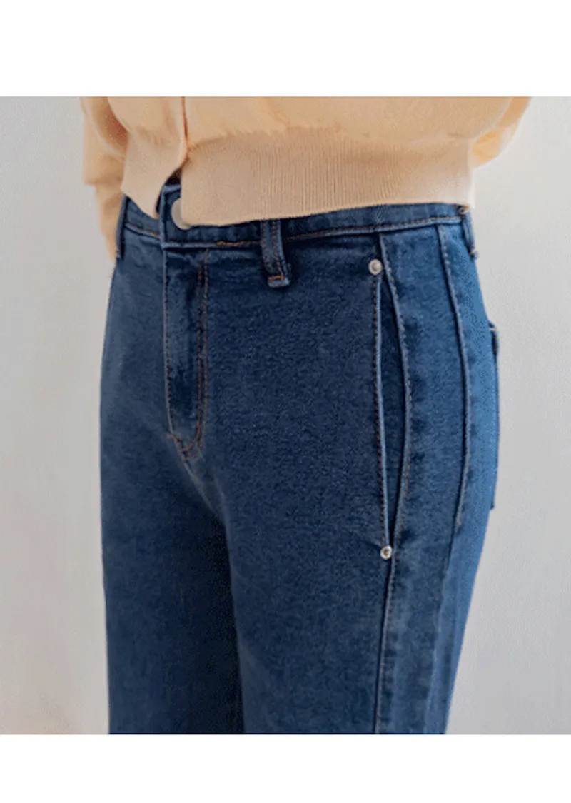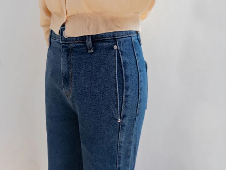 獨特口袋垂直剪裁線條舒適修身牛仔褲