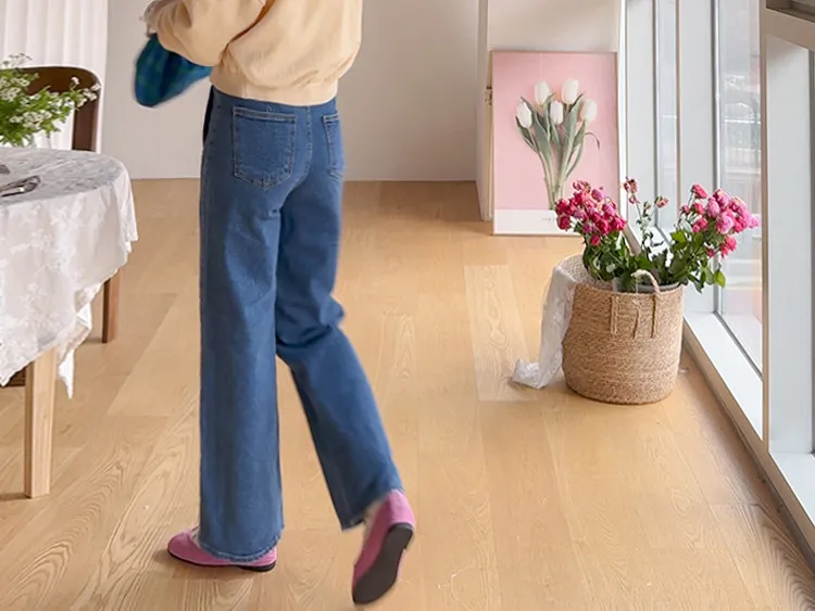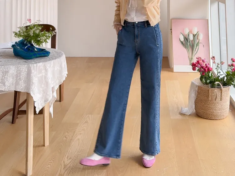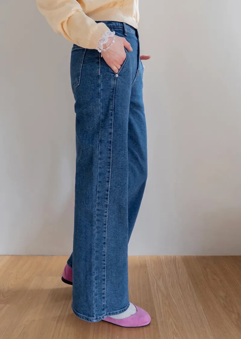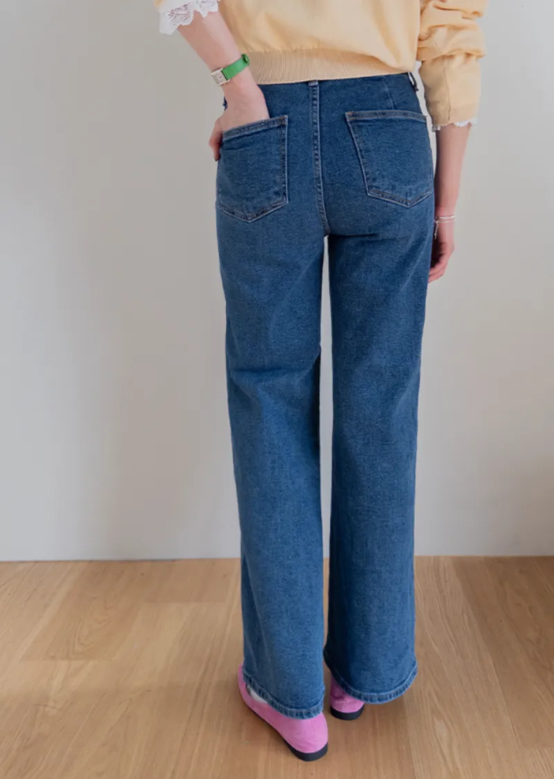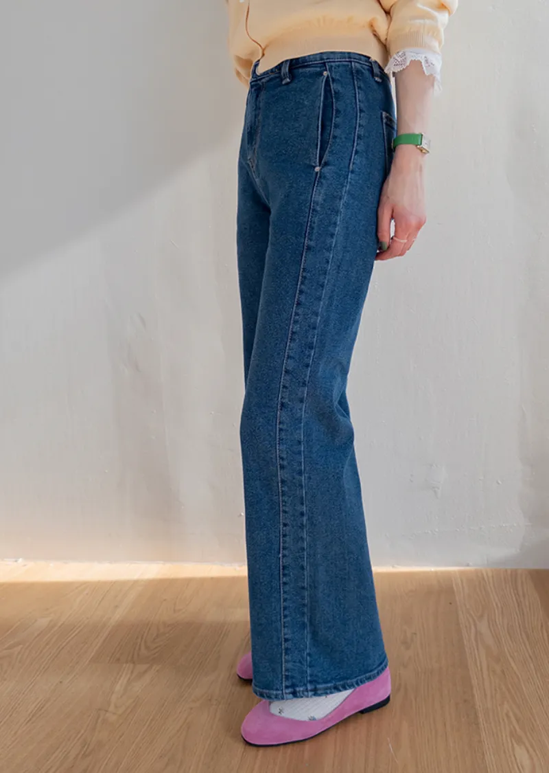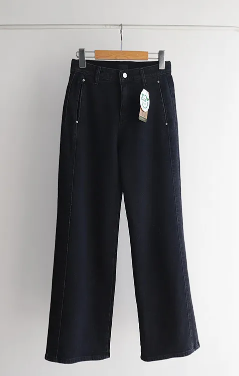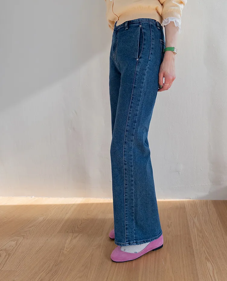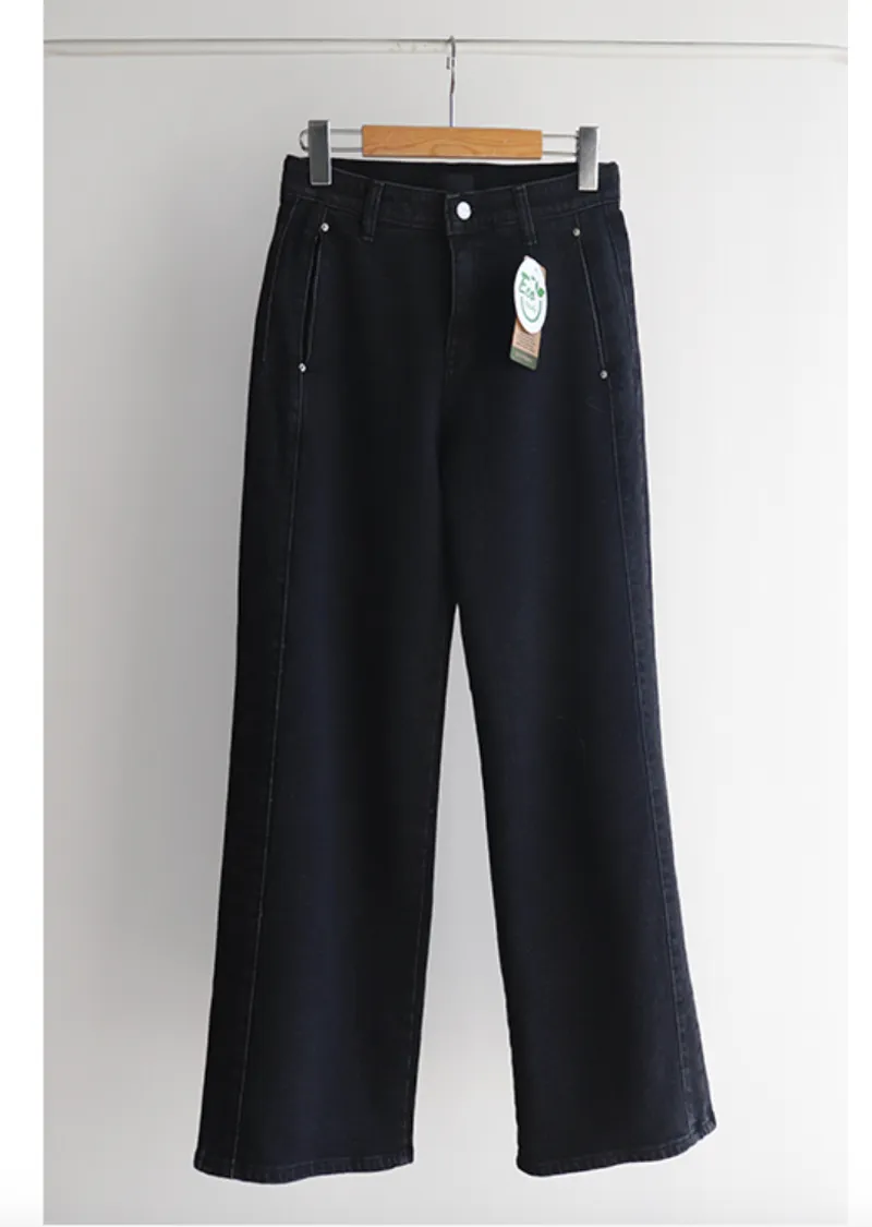 獨特口袋垂直剪裁線條舒適修身牛仔褲