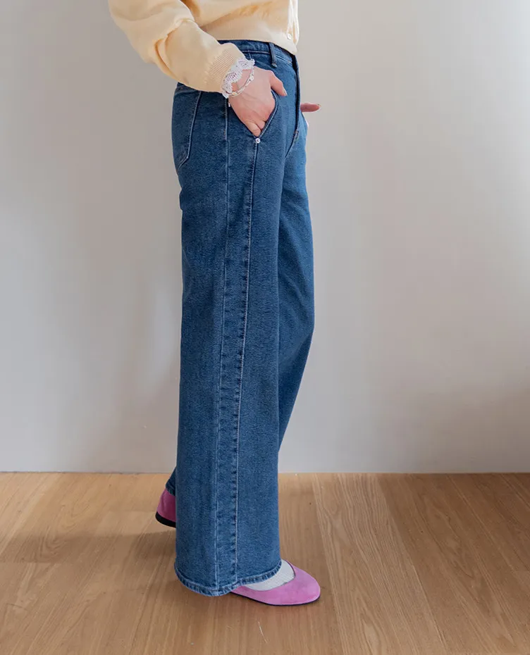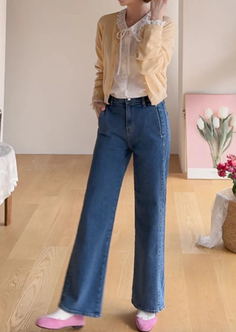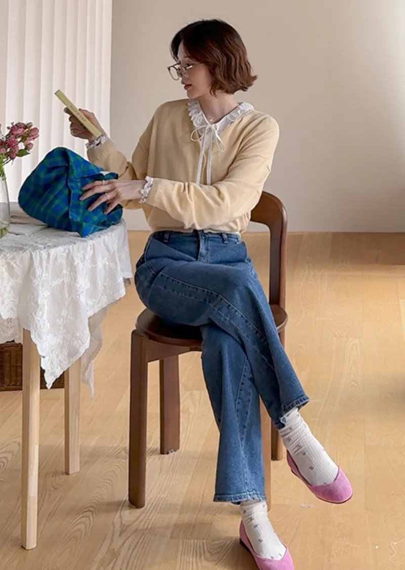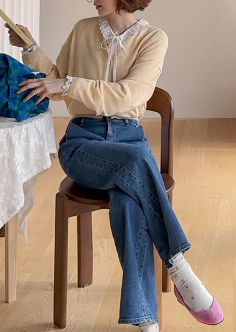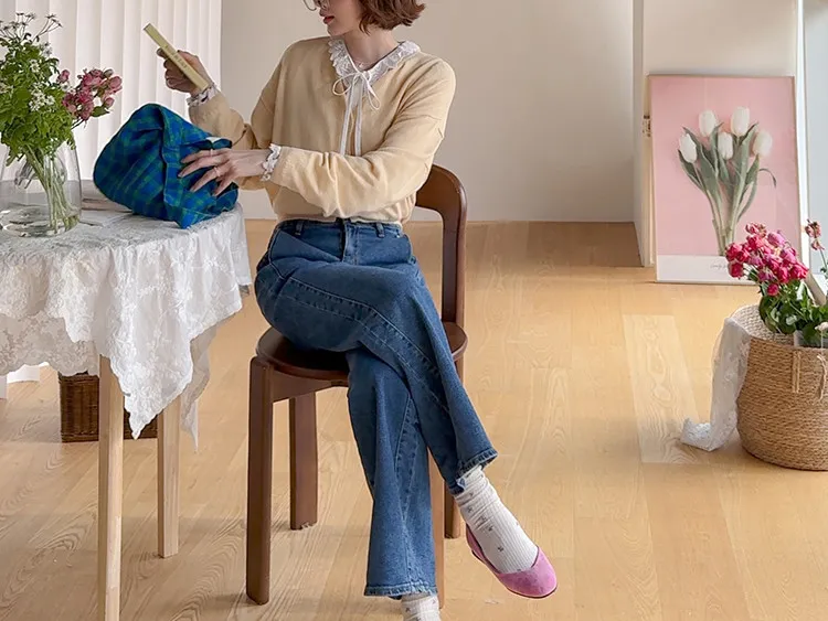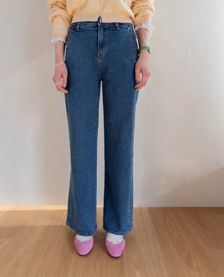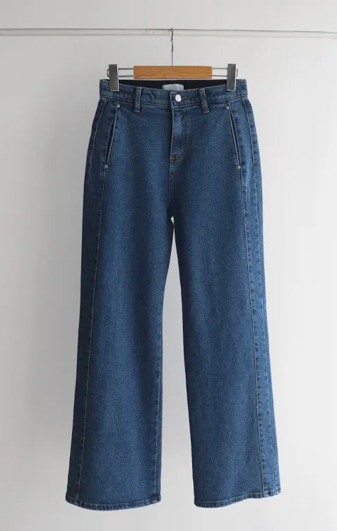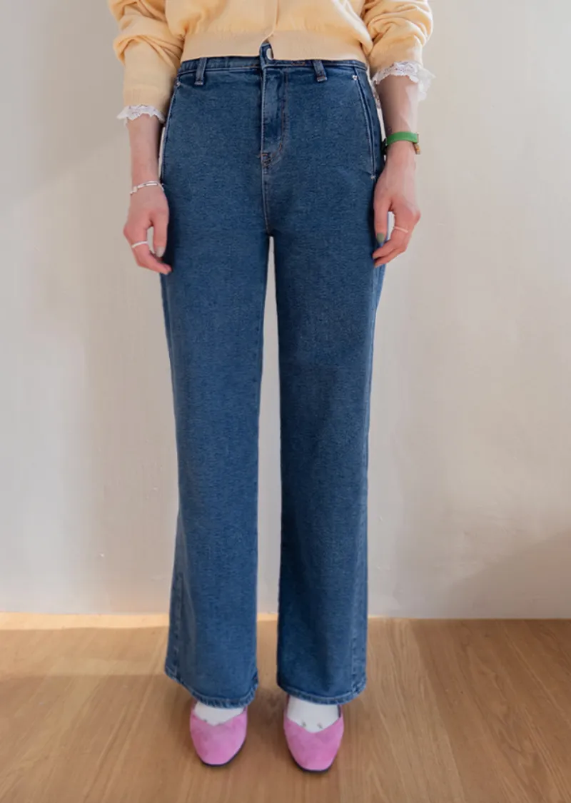 獨特口袋垂直剪裁線條舒適修身牛仔褲