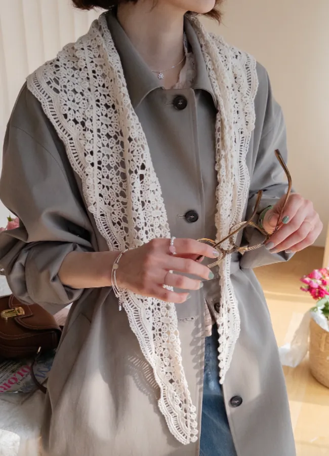 點綴奢華蕾絲披肩腰帶長款風衣外套