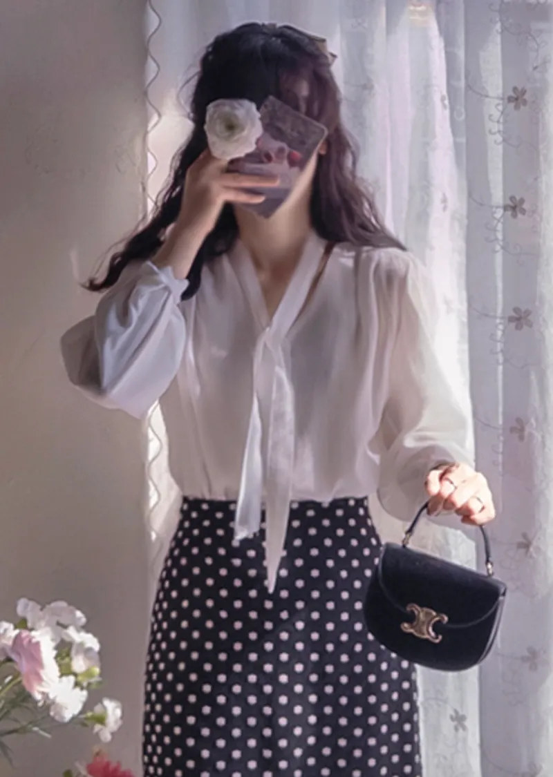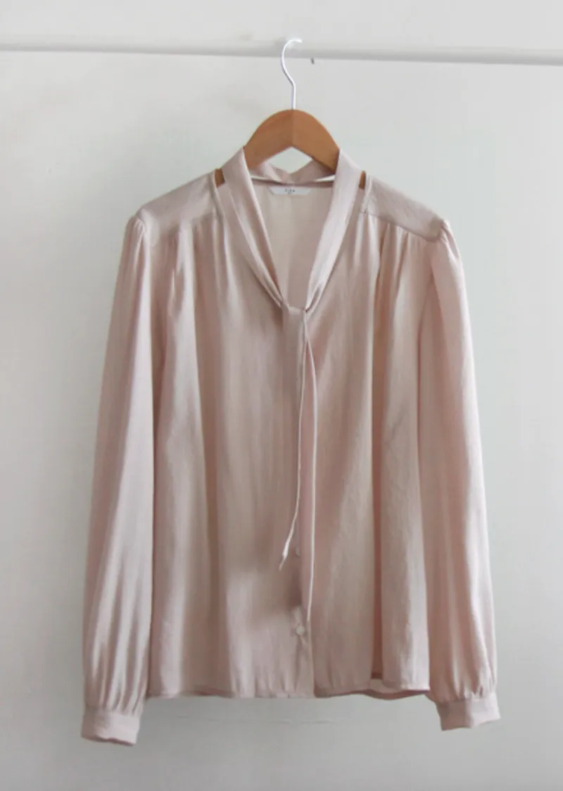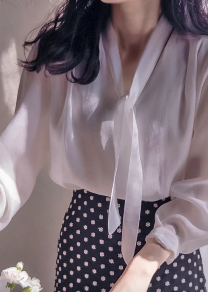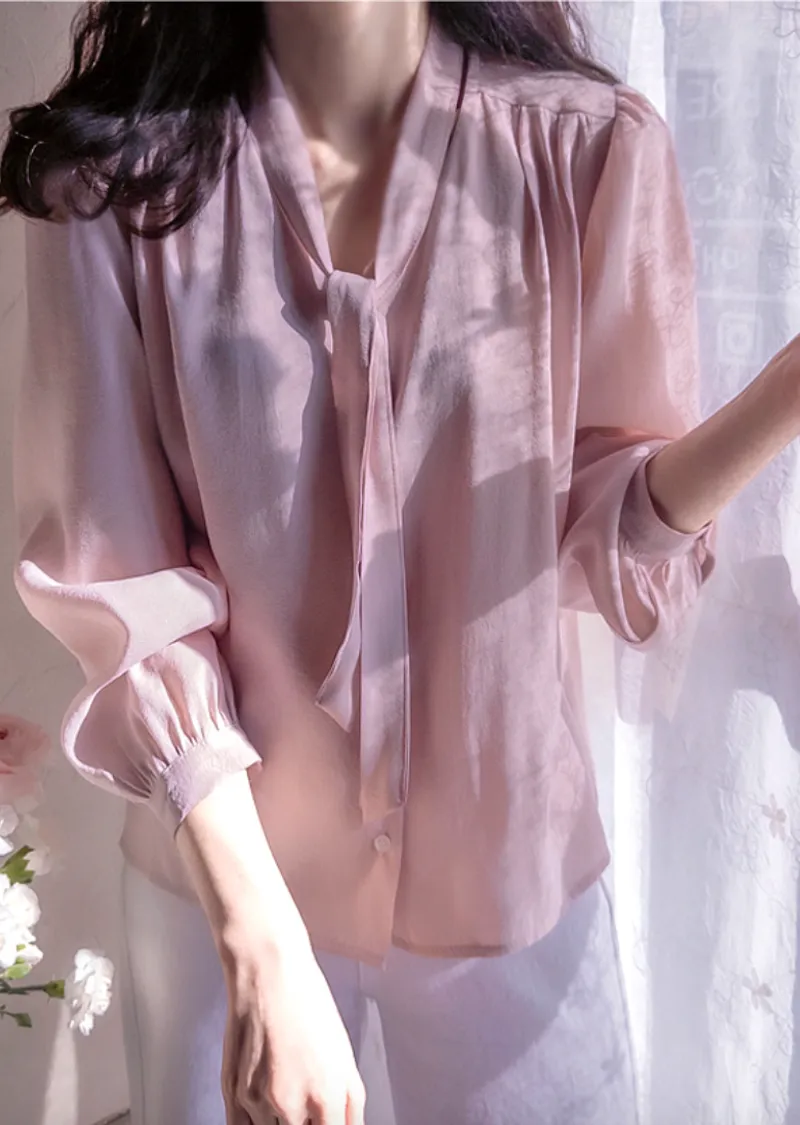 【春季新品】【採用81%莫代爾纖維製成的柔軟透氣面料】【肩線設計也很漂亮】【紐帶可拆卸繫帶】【綁帶即可打造可愛造型】【V領設計盡顯優雅氣質】【版型時尚,易於搭配,百搭優雅的上衣】