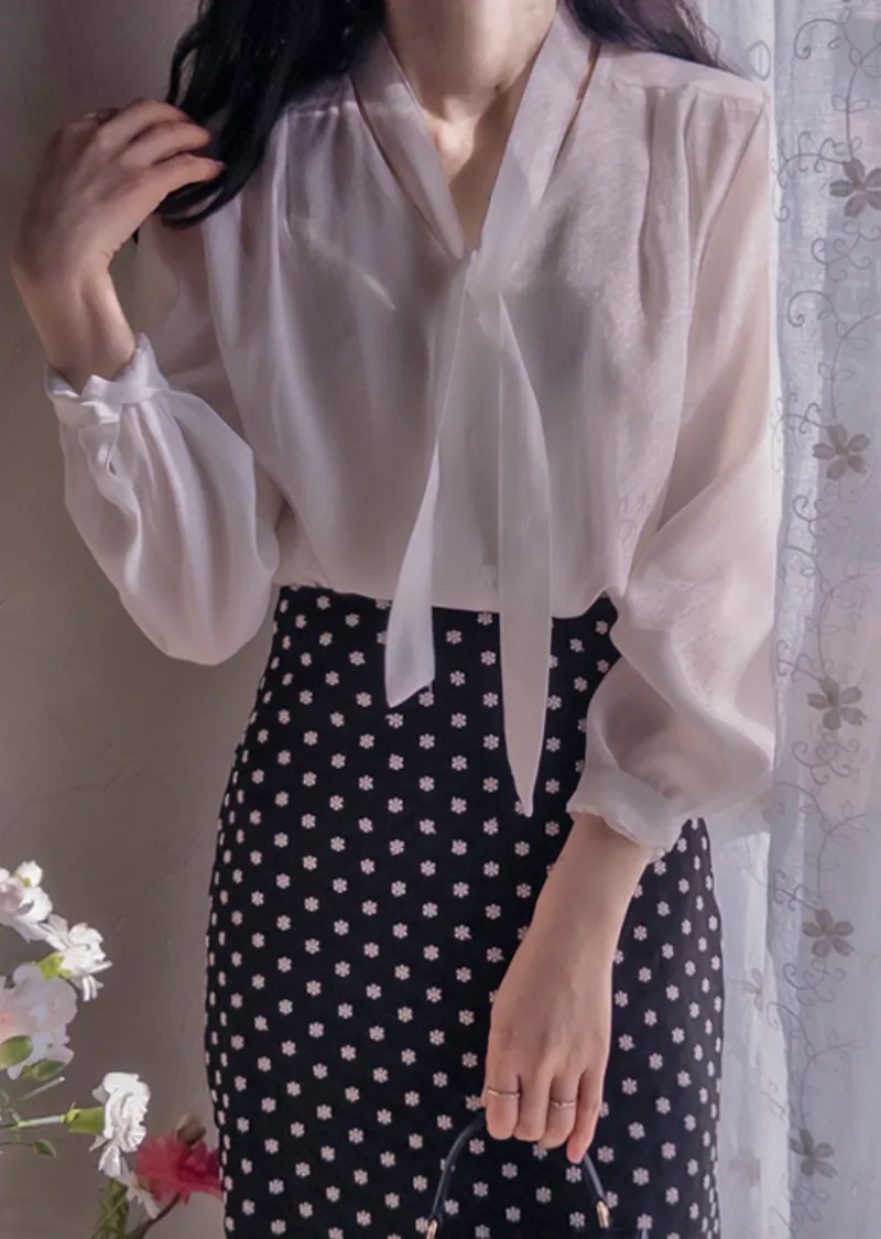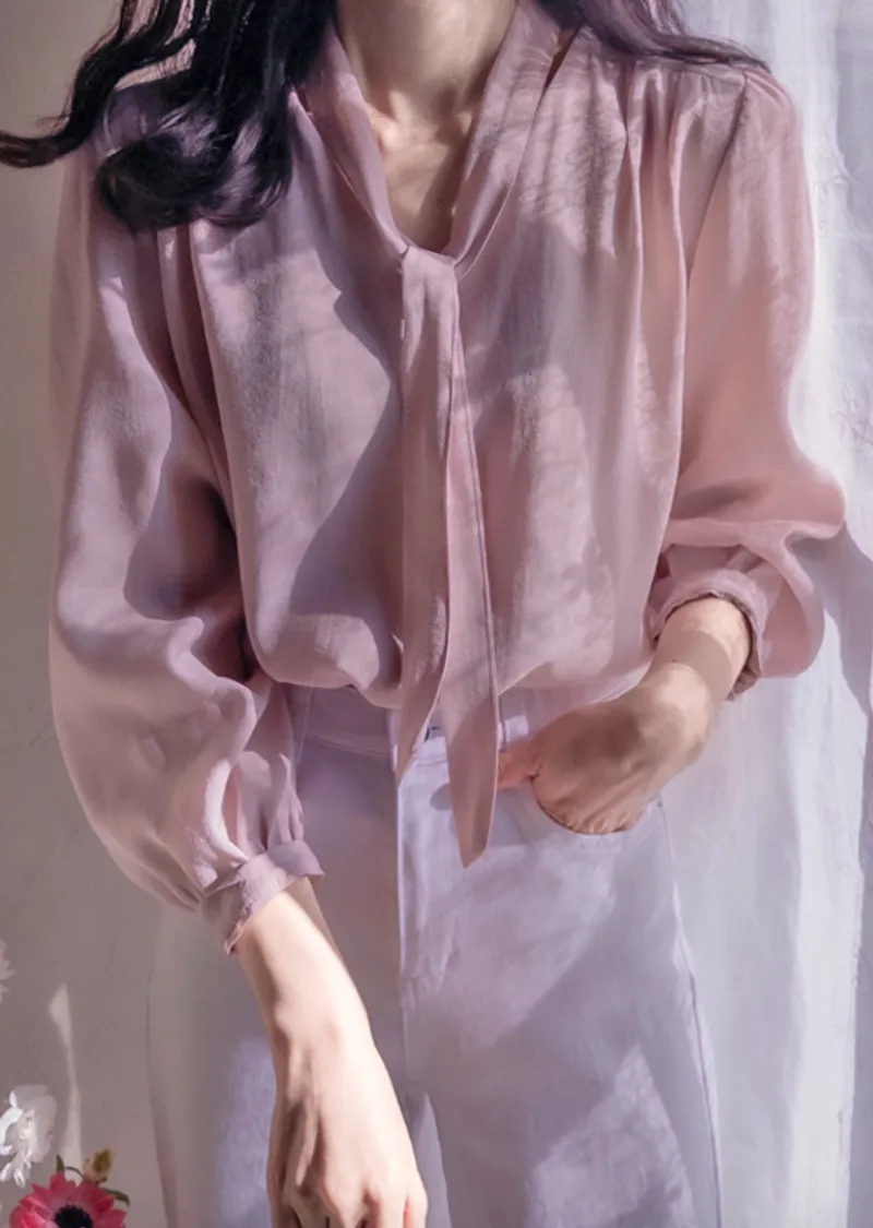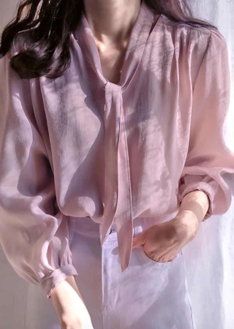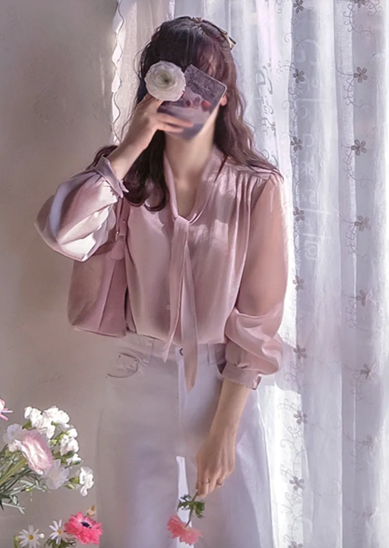 【春季新品】【採用81%莫代爾纖維製成的柔軟透氣面料】【肩線設計也很漂亮】【紐帶可拆卸繫帶】【綁帶即可打造可愛造型】【V領設計盡顯優雅氣質】【版型時尚,易於搭配,百搭優雅的上衣】