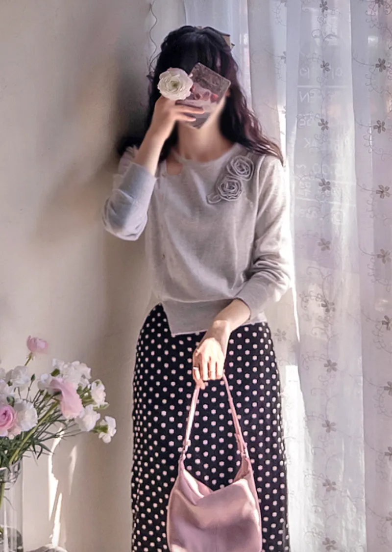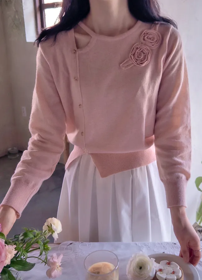 獨特立體花朵裝飾排扣點綴針織上衣