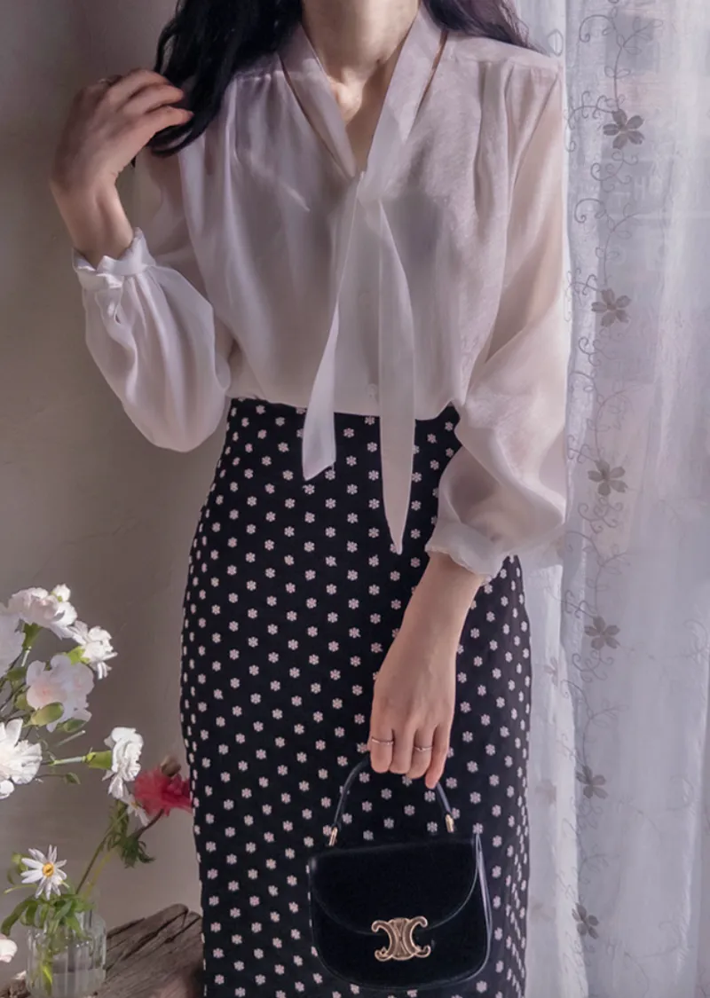 優雅領綁帶肩線剪裁排扣上衣