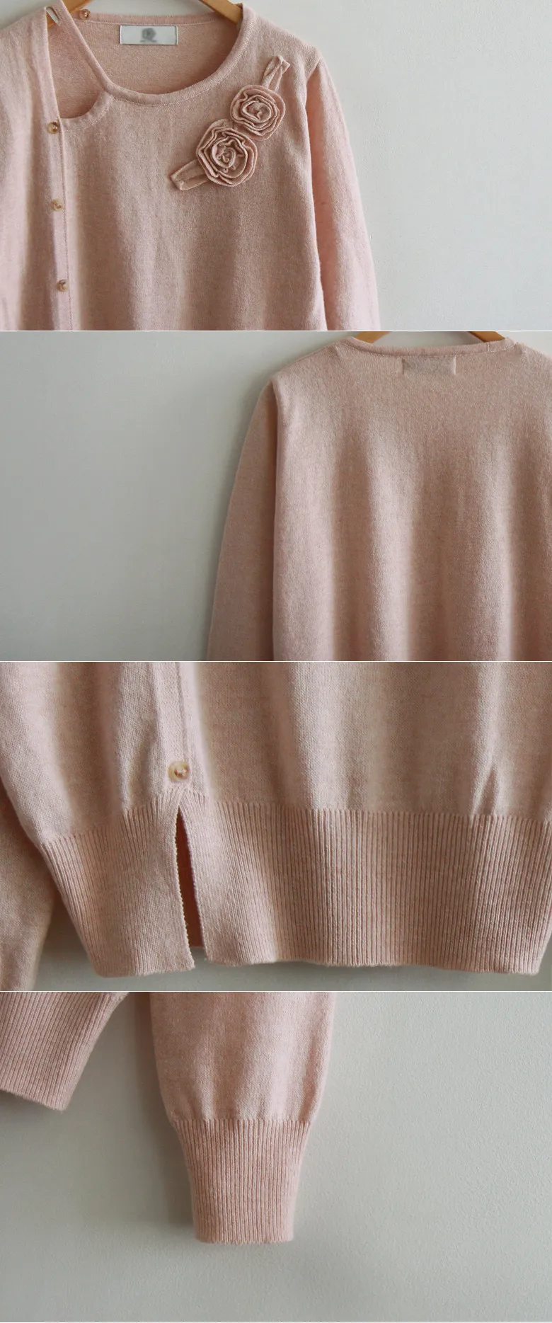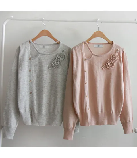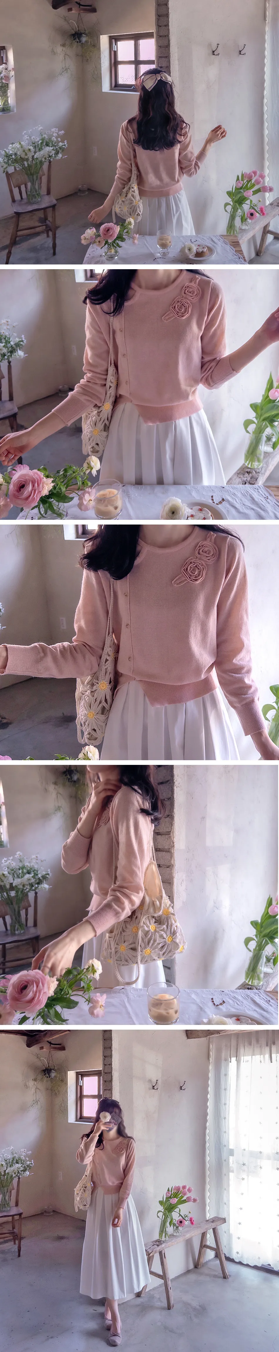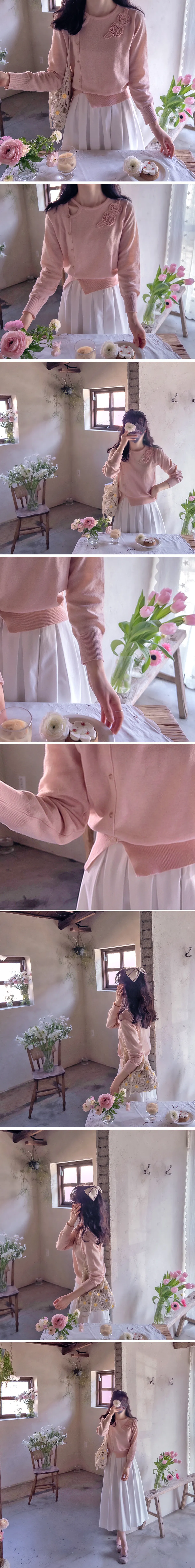 【春季新品】【立體花朵針織衫】【獨特精緻的針織衫,採用春意盎然的粉彩色調】【設計精美的針織衫,紐扣搭配還有下擺設計】【推薦這款春季色彩的針織衫】