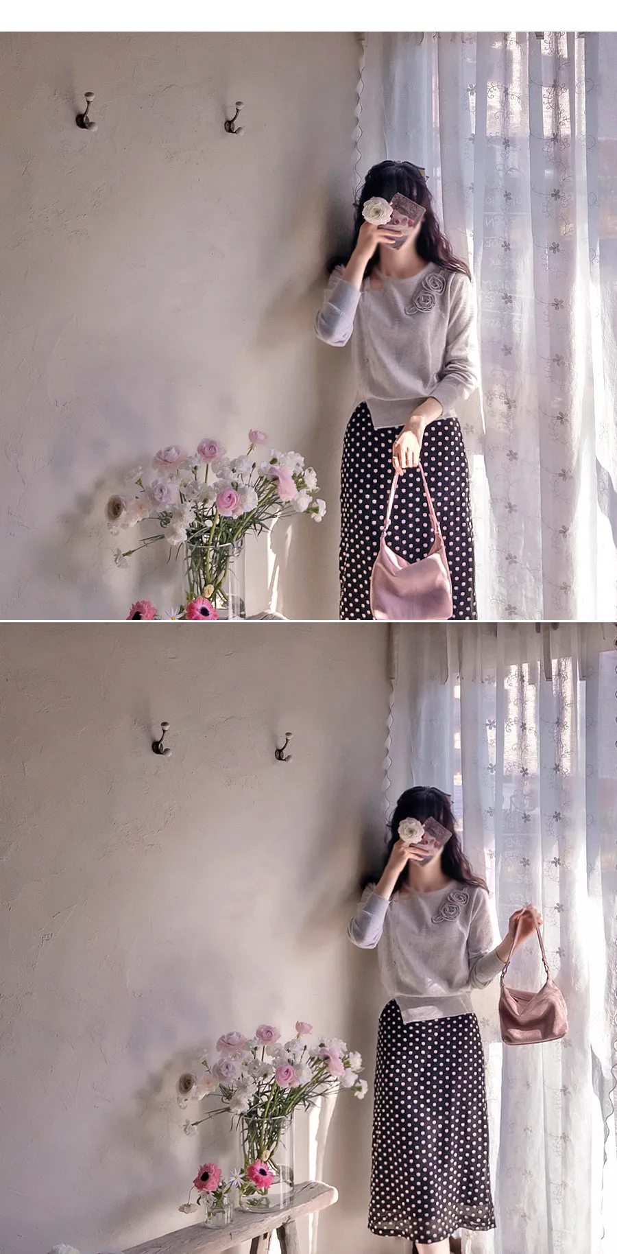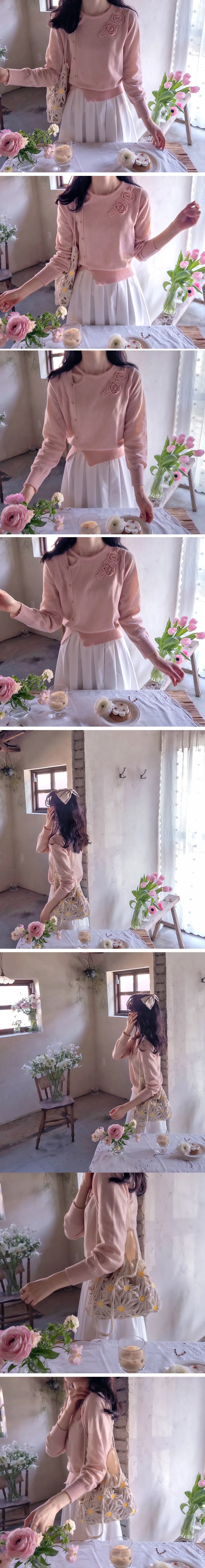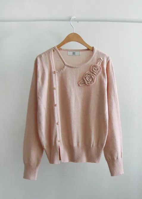【春季新品】【立體花朵針織衫】【獨特精緻的針織衫,採用春意盎然的粉彩色調】【設計精美的針織衫,紐扣搭配還有下擺設計】【推薦這款春季色彩的針織衫】