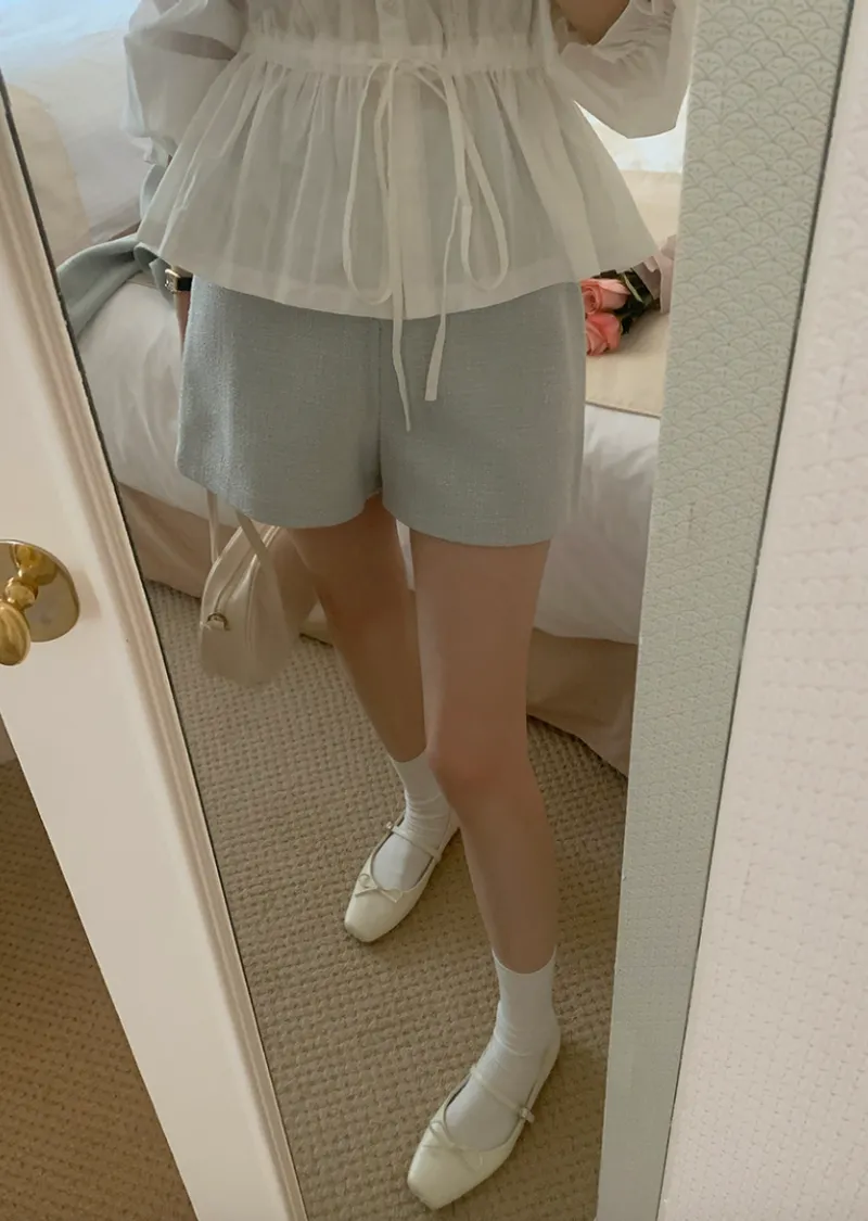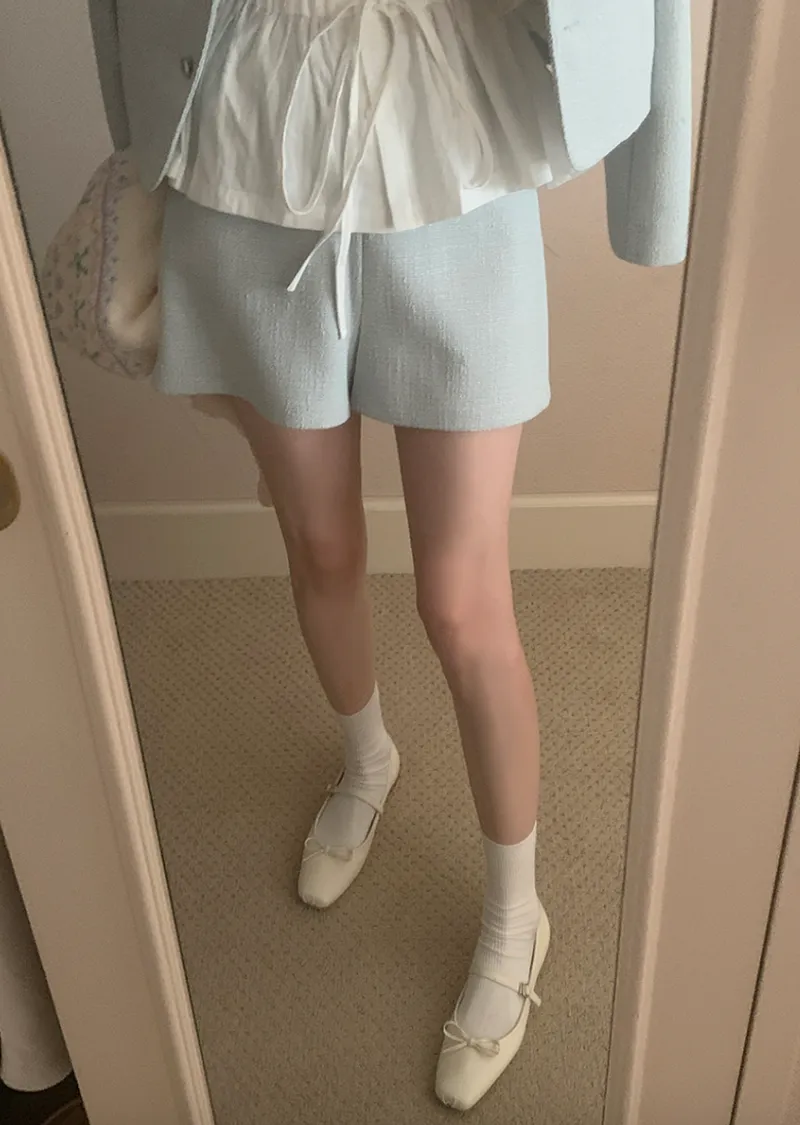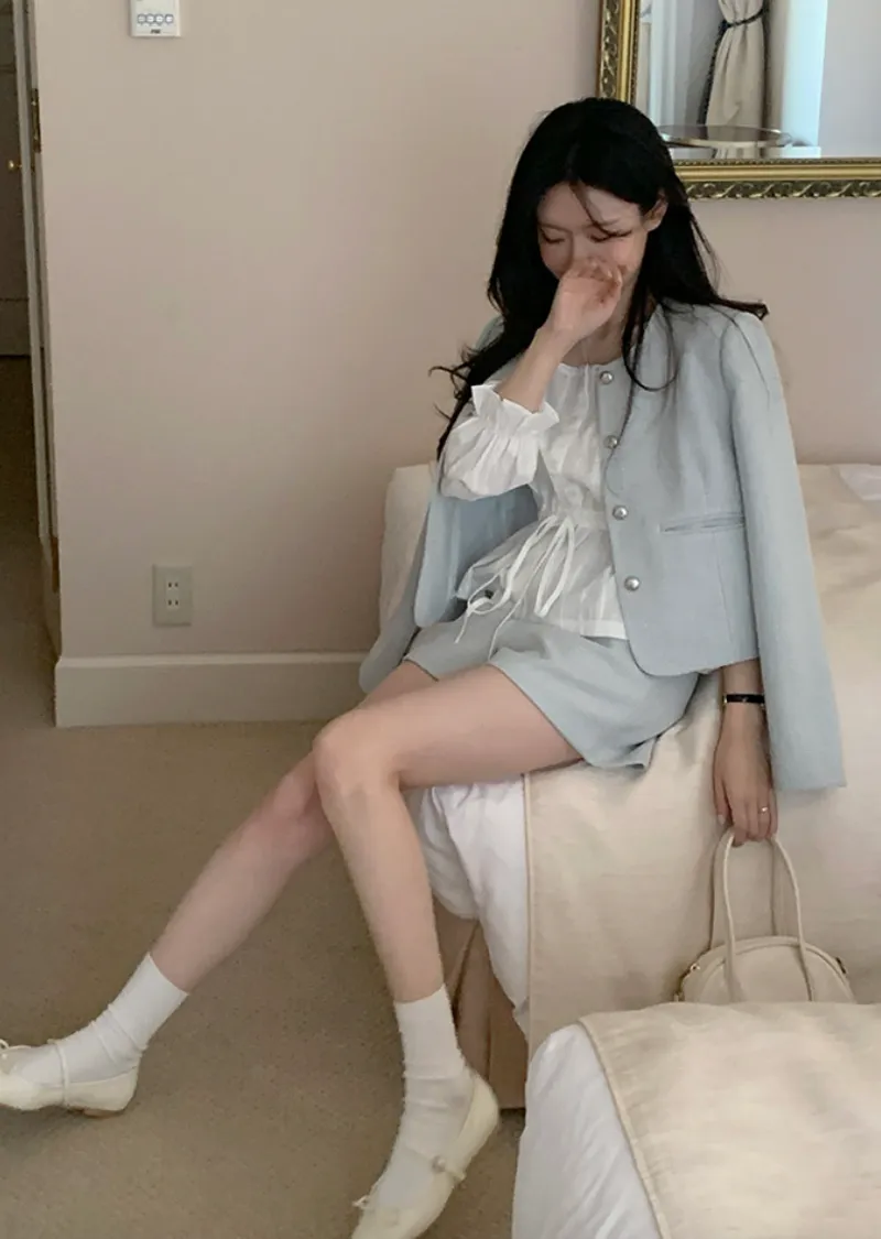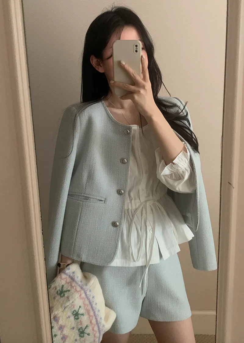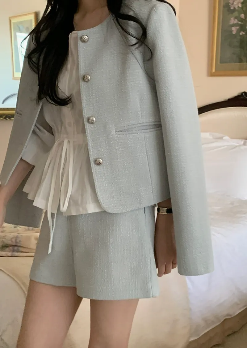 浪漫氛圍圓領銀色花紋鈕扣花呢外套