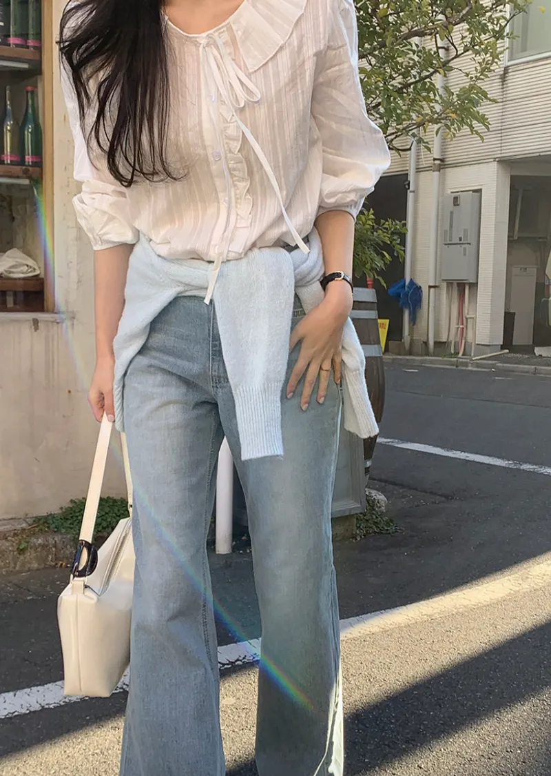 淺藍色靴型牛仔褲,