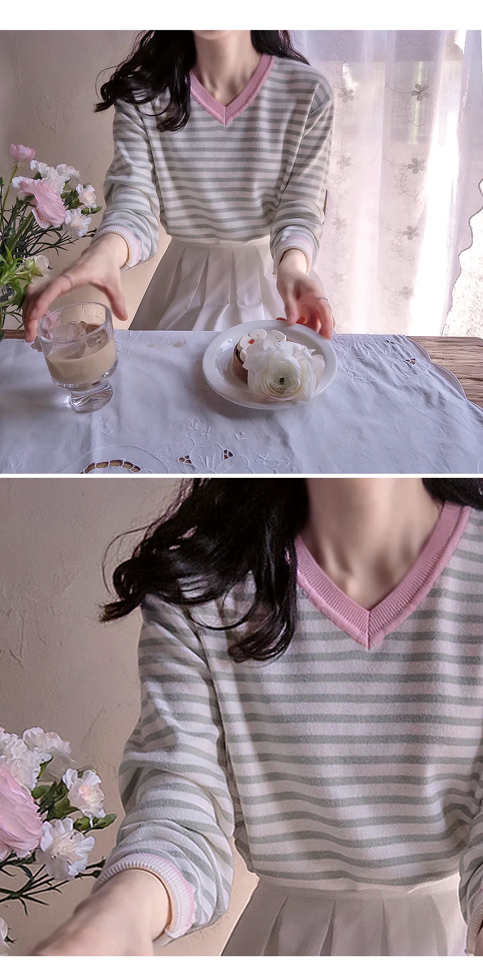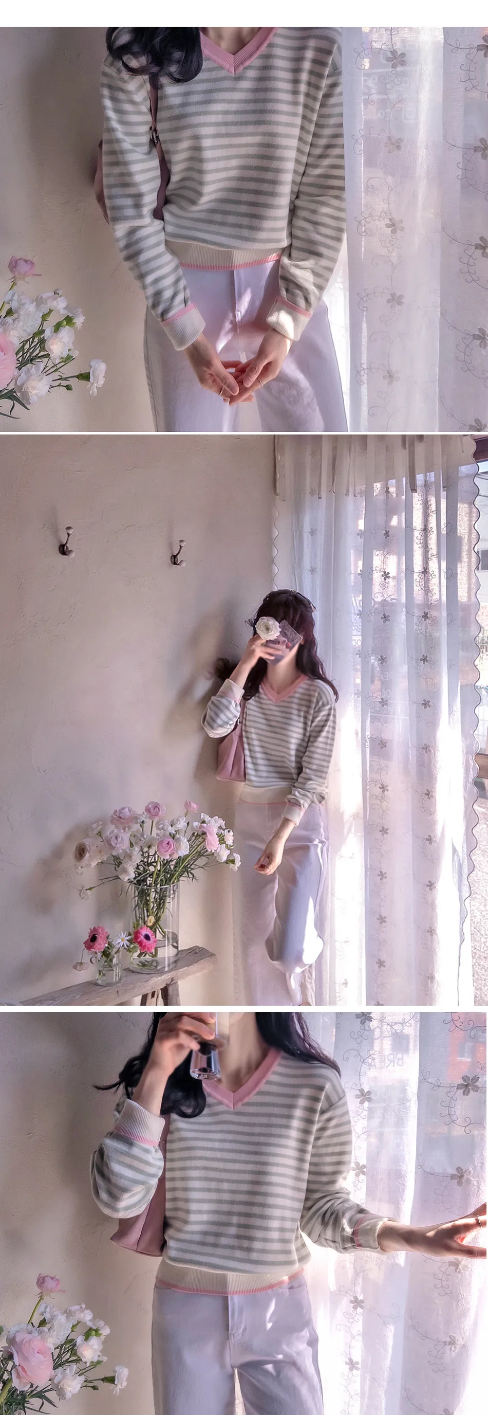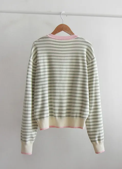 材質:52%黏膠纖維,28% PBT,20%尼龍【春季新品】【柔軟彈性布料,含52%黏膠纖維和28%PBT】【清新配色,條紋設計,非常漂亮】【舒適柔軟的針織布料,柔和的粉紅彩色調,彷彿春天已經來臨! 】【領口配色清新怡人,展現優雅氣質】