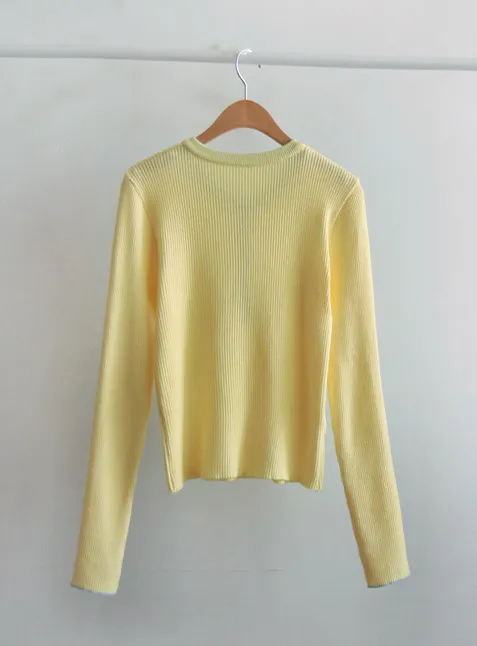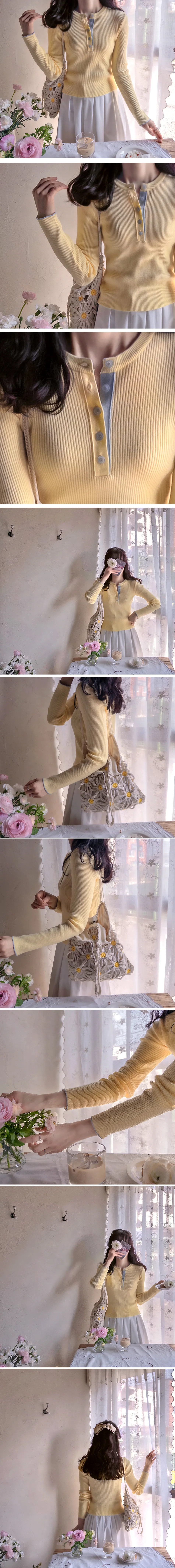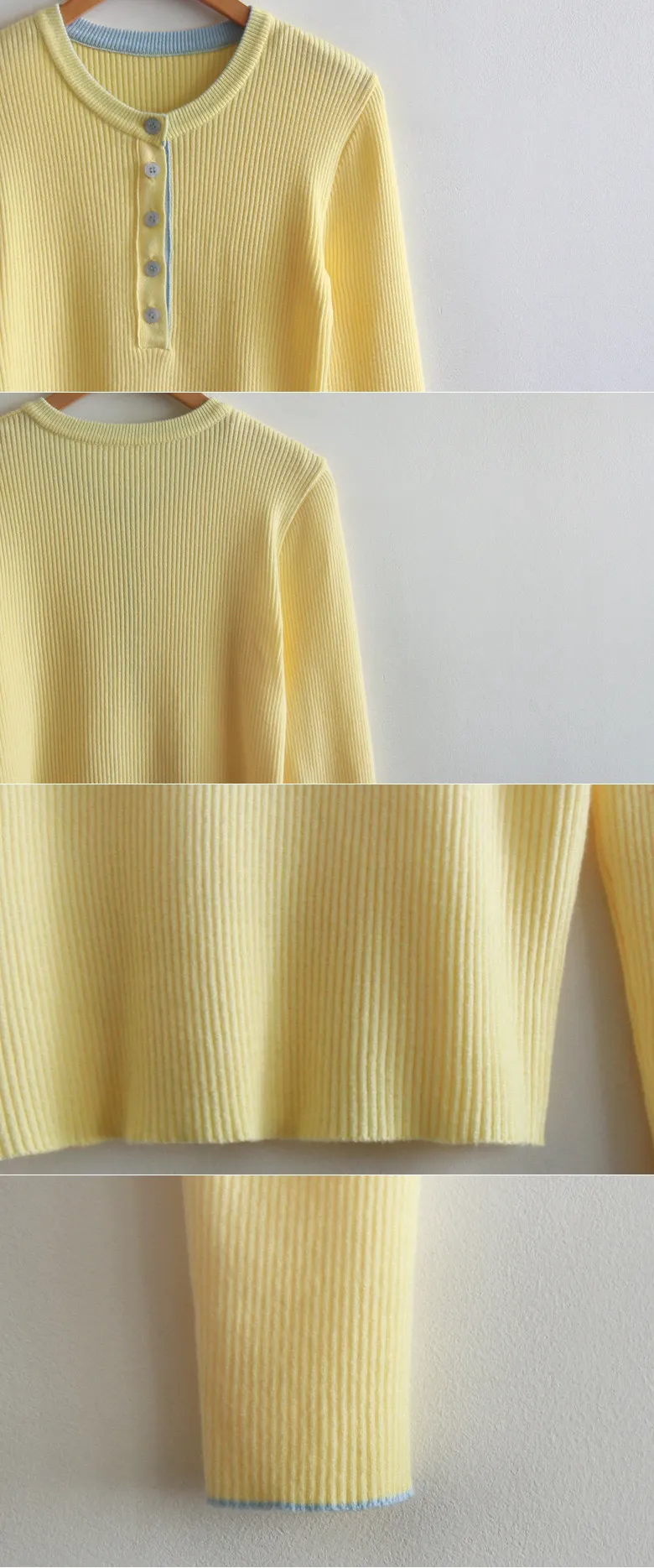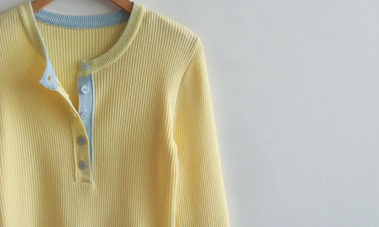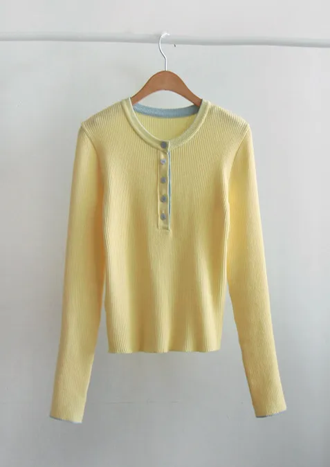 柔軟舒適配色鈕扣襯邊羅紋修身針織上衣