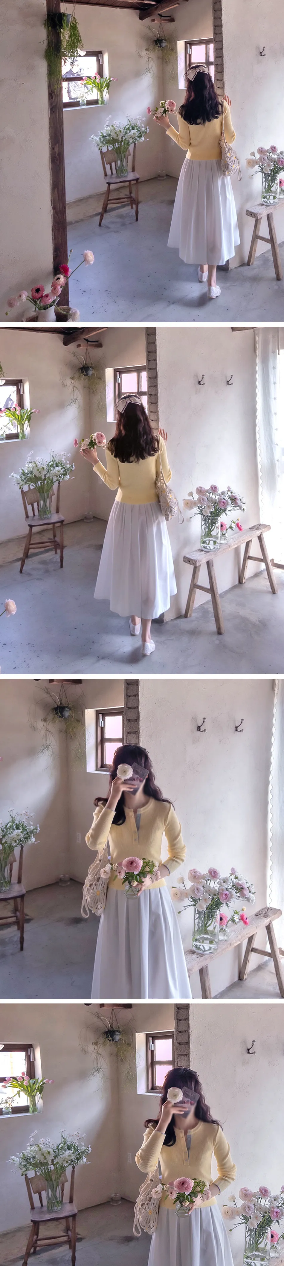 【春季新品】【柔軟彈性布料,52%黏膠纖維,28% PBT材質】【打開鈕扣,配色設計非常漂亮】【舒適柔軟的針織布料,柔和的粉彩色調,讓人想起春天! 】【修身剪裁,羅紋針織,清爽舒適】【袖口的配色設計也很漂亮】
