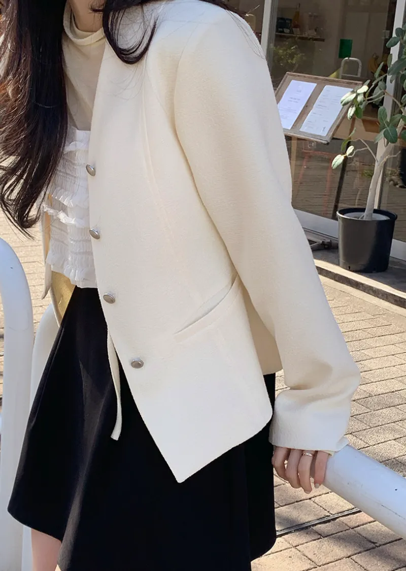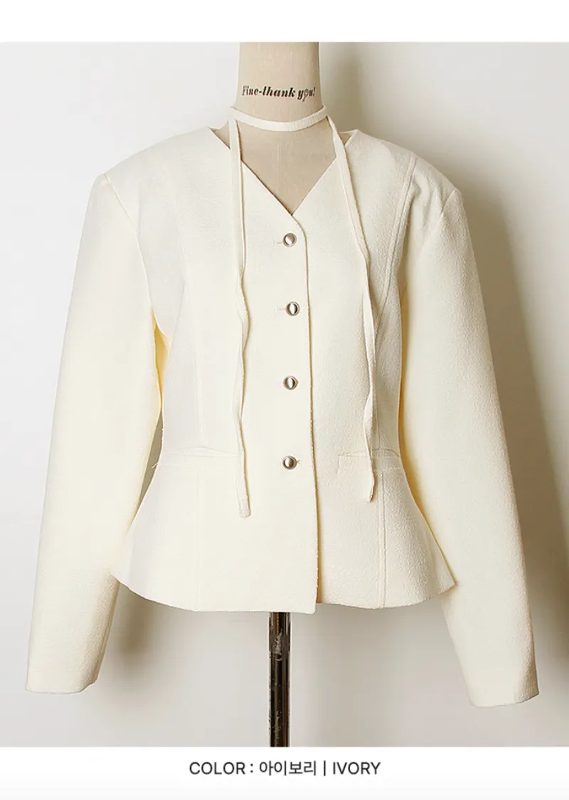 優雅氣質略微收腰柔美設計附綁帶花呢外套