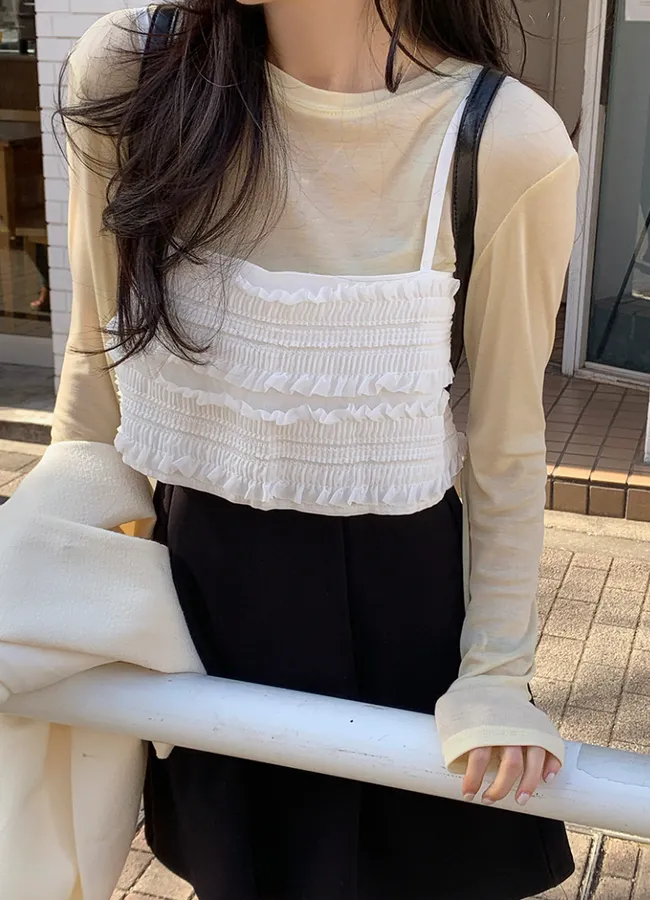 可愛層次荷葉摺邊可調肩帶厚綁帶穿搭背心