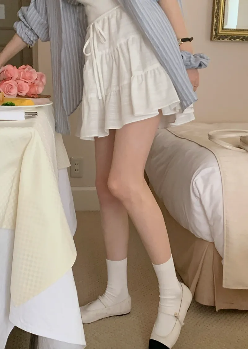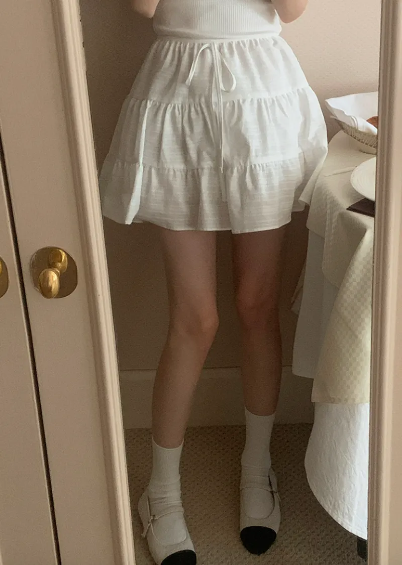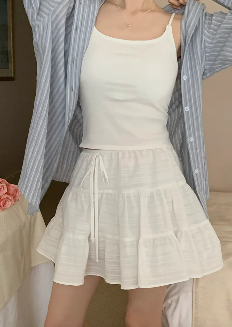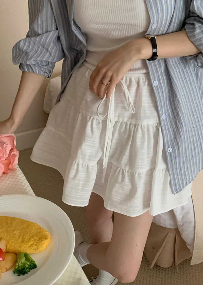 甜美層次裙擺柔美橫紋線條內襯褲短裙