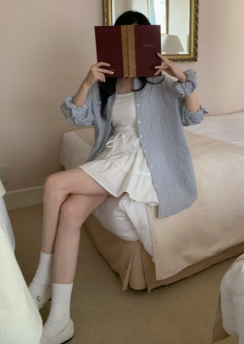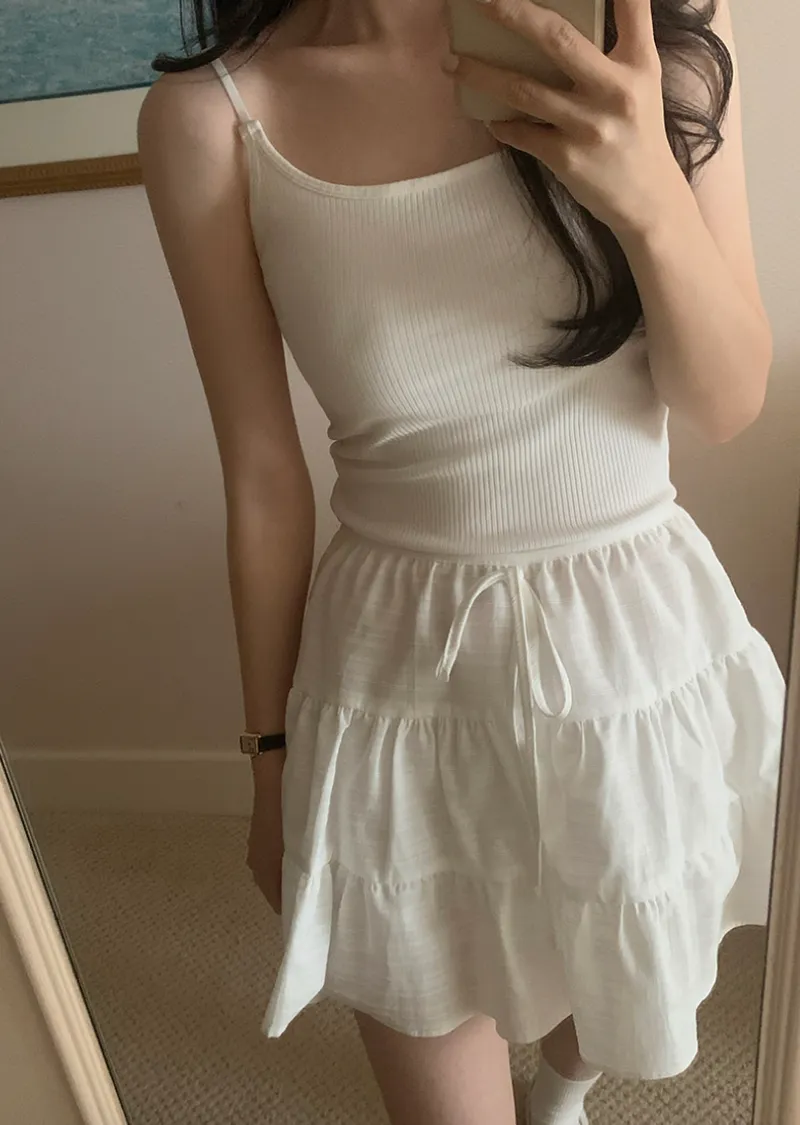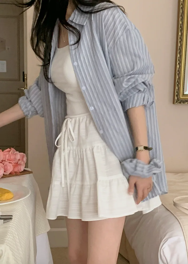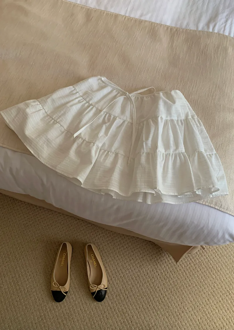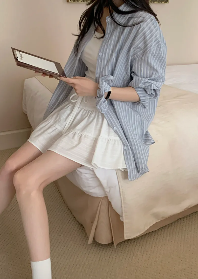 甜美層次裙擺柔美橫紋線條內襯褲短裙