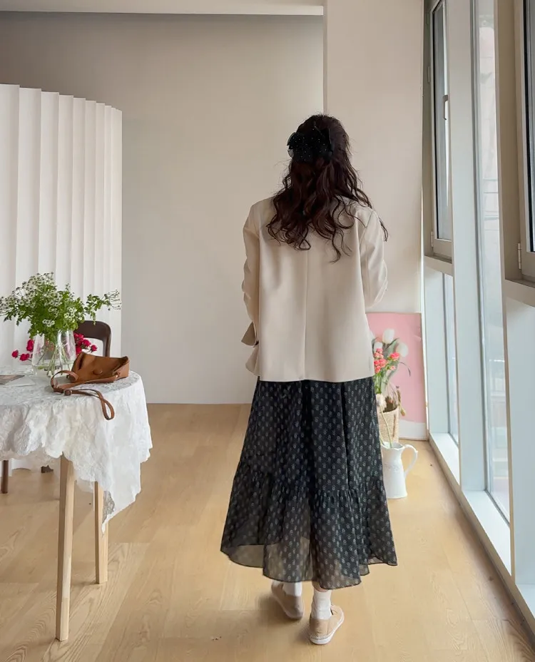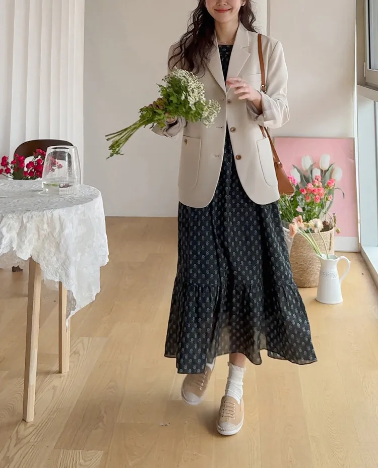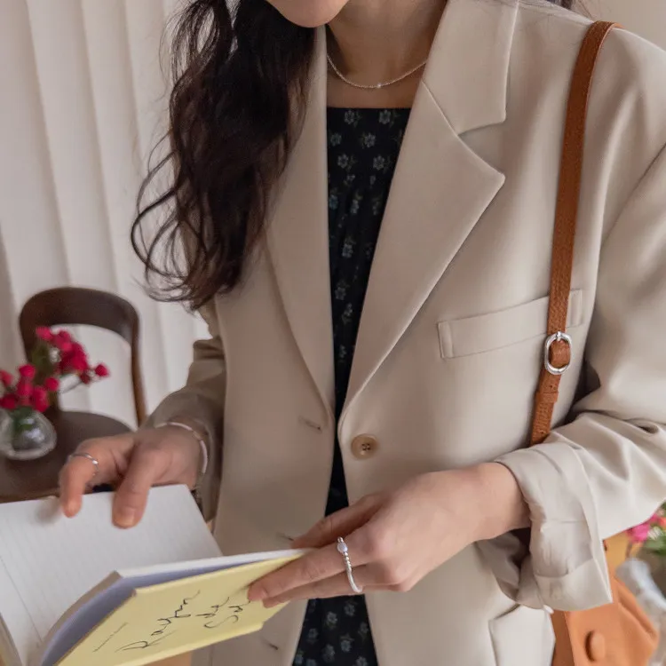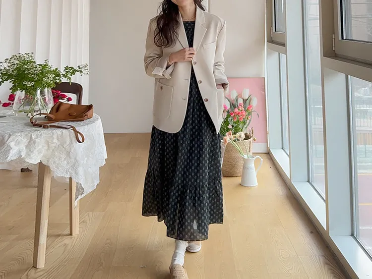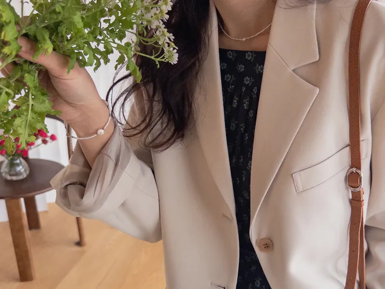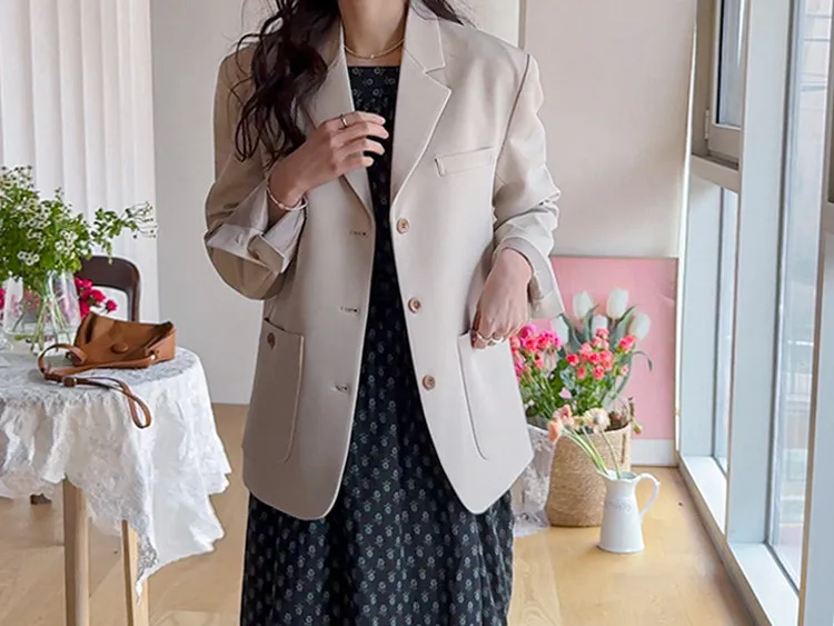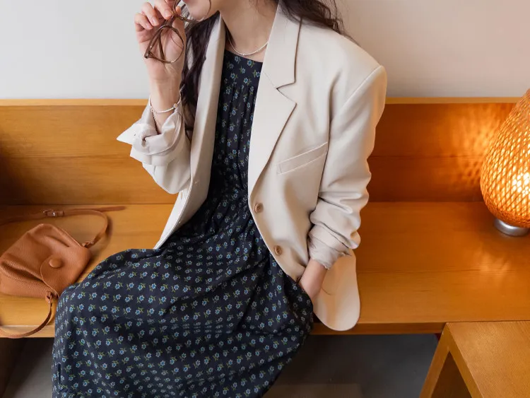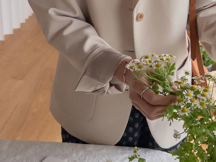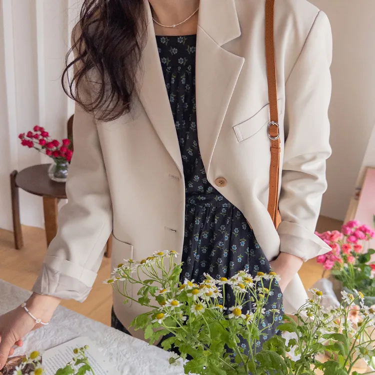 【簡潔俐落的線條,無繁複裝飾】【簡約單排扣設計】【長度適中,略微遮住臀部】【用途廣泛,從日常到正式場合均可穿著】