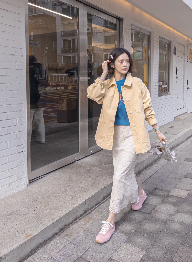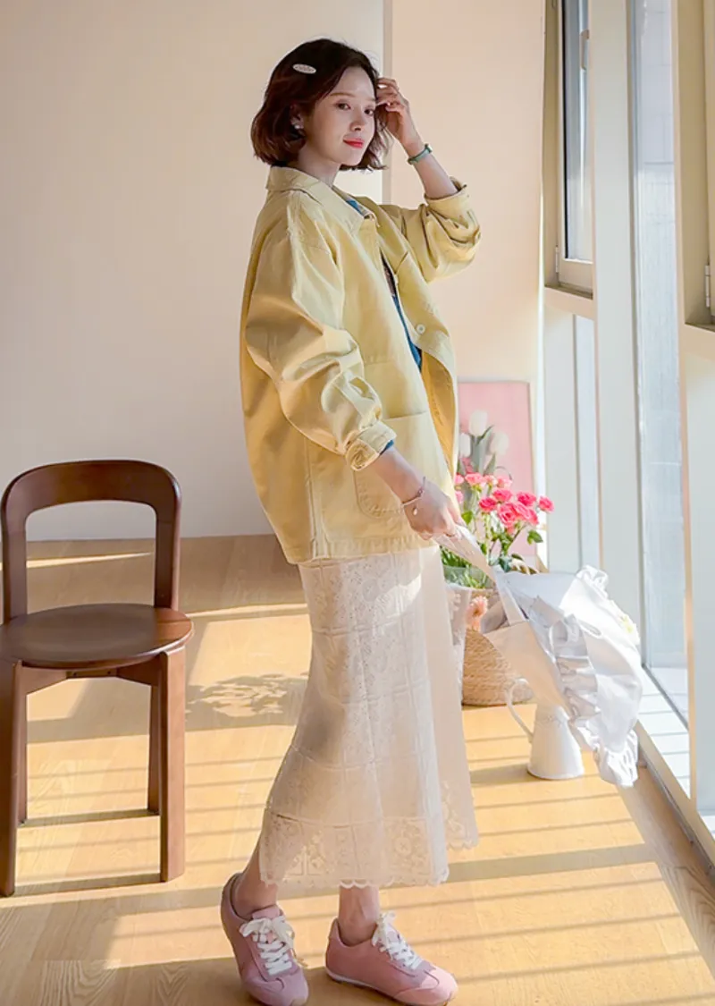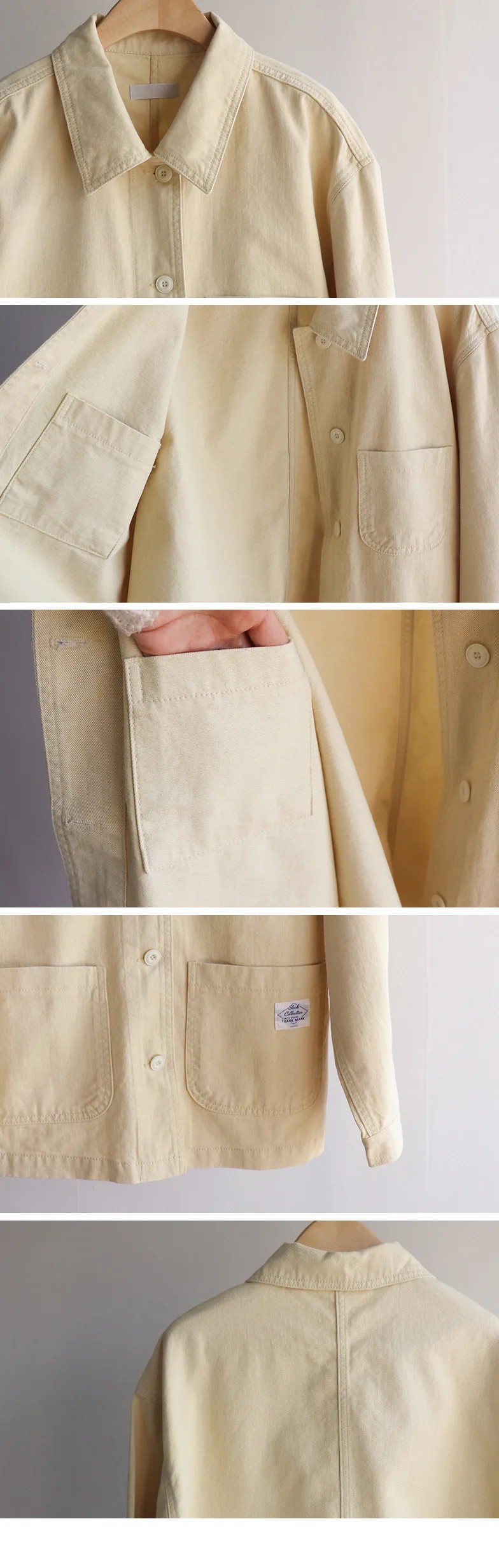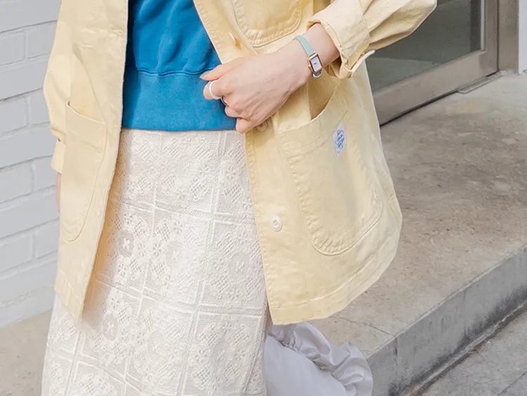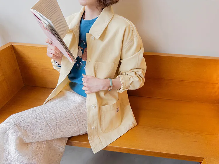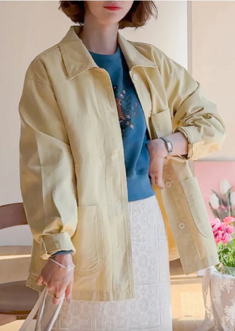 【寬鬆版型,休閒口袋貼片設計】【柔和的黃色,帶來明亮心情】【寬鬆長度,遮住臀部,穿著舒適】【可作襯衫或外套的百搭單品】