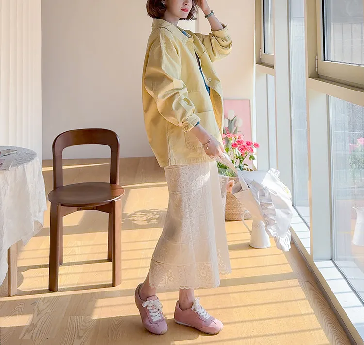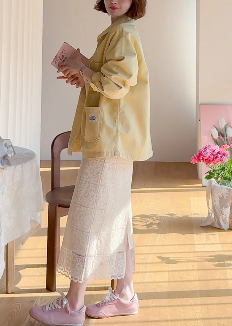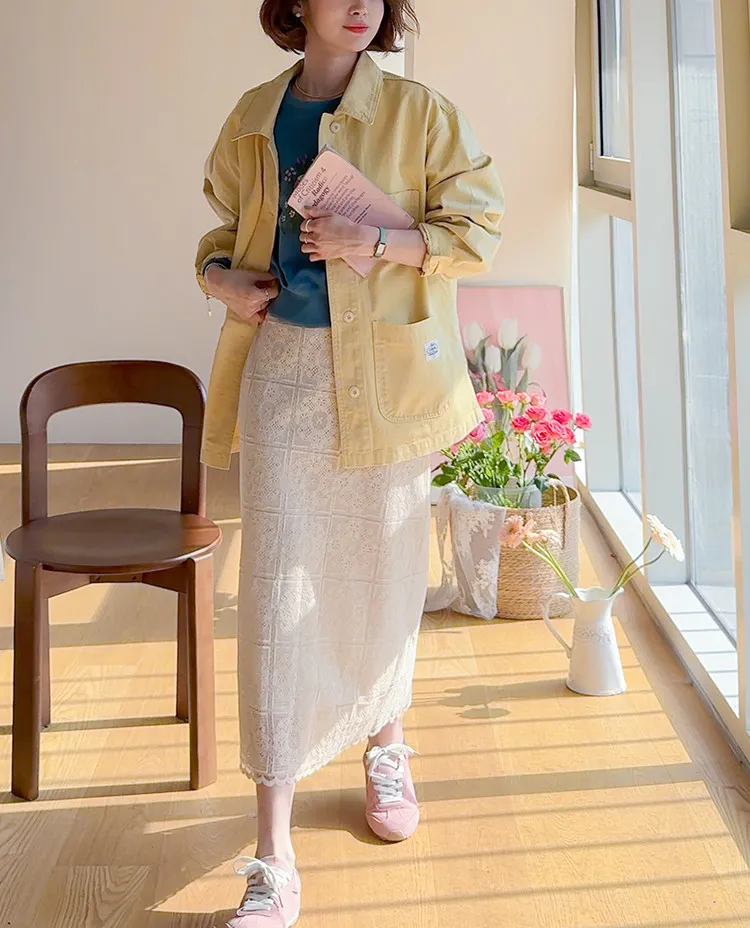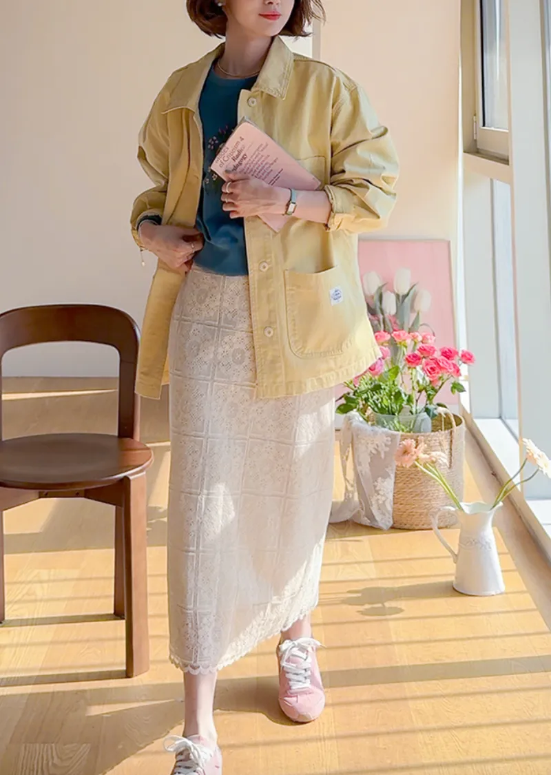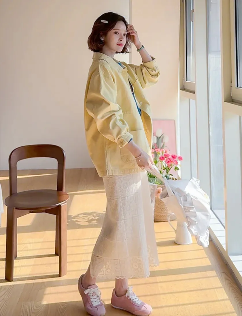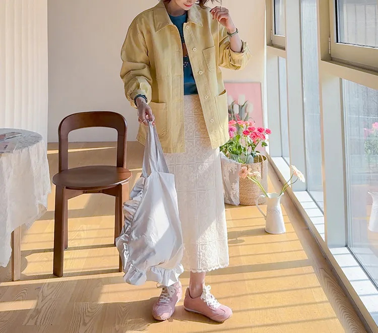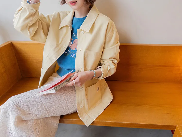 【寬鬆版型,休閒口袋貼片設計】【柔和的黃色,帶來明亮心情】【寬鬆長度,遮住臀部,穿著舒適】【可作襯衫或外套的百搭單品】