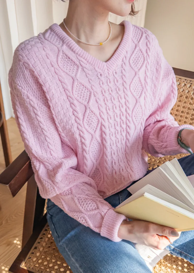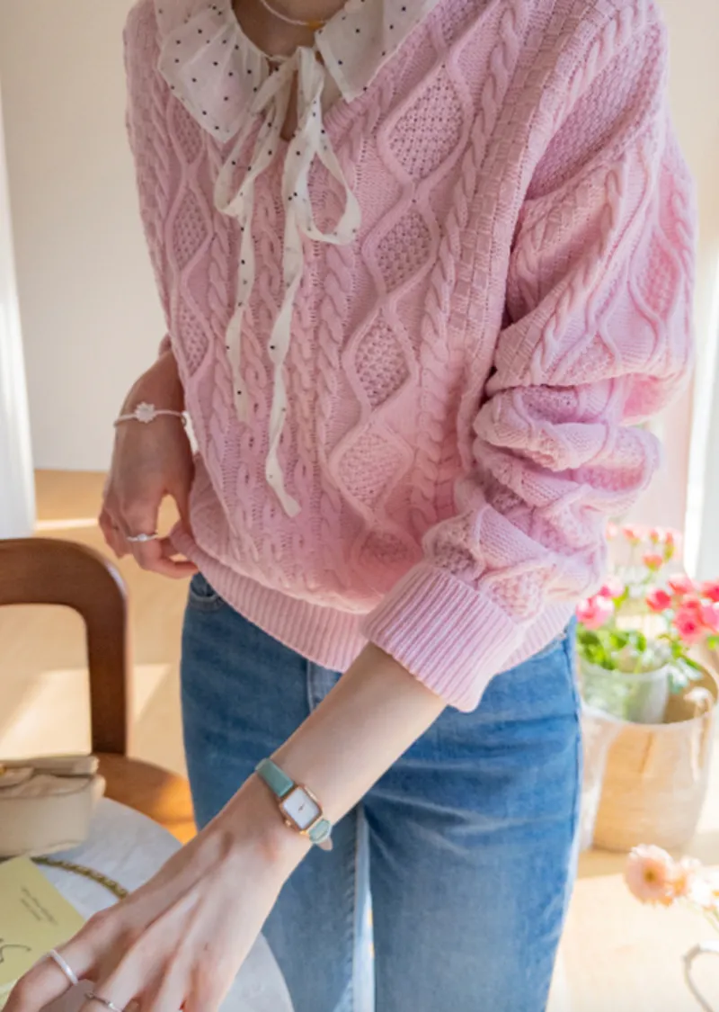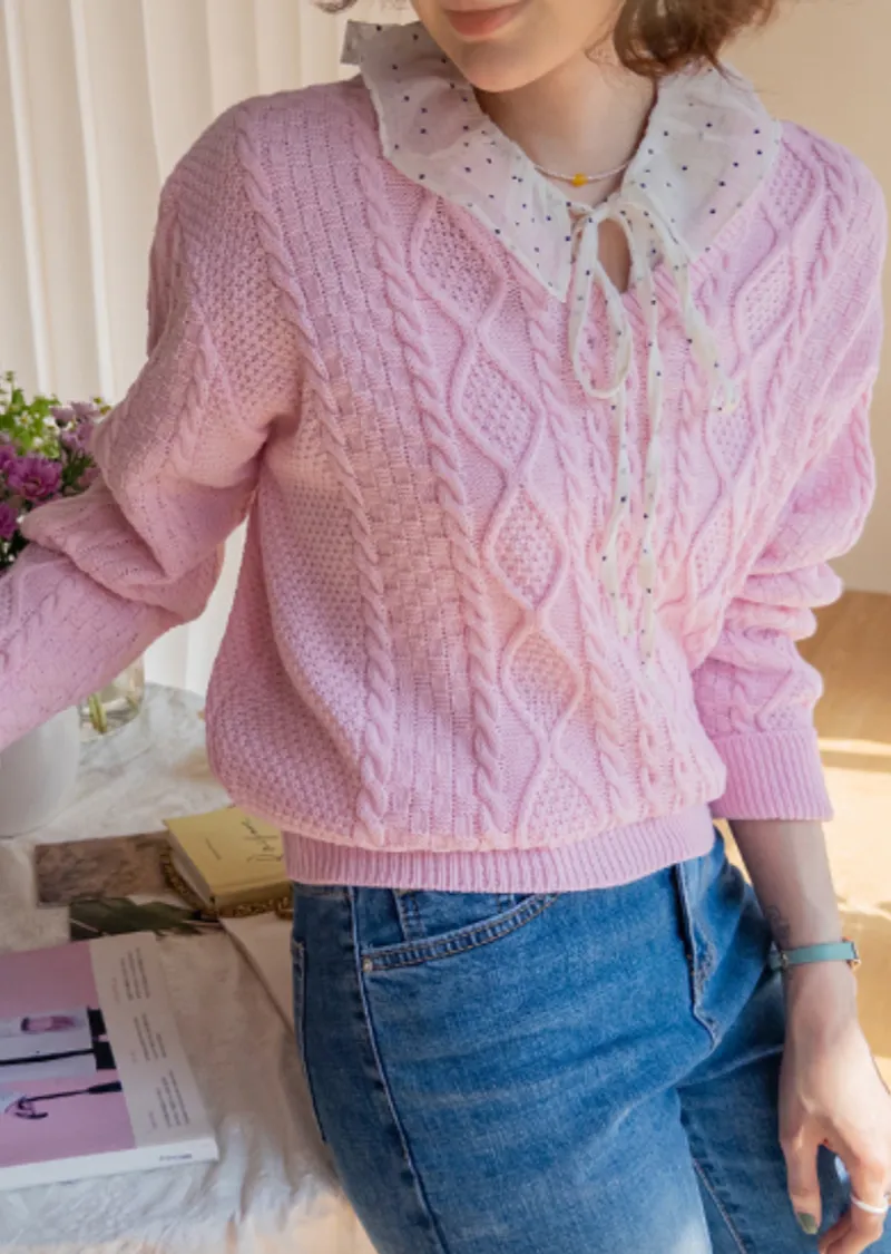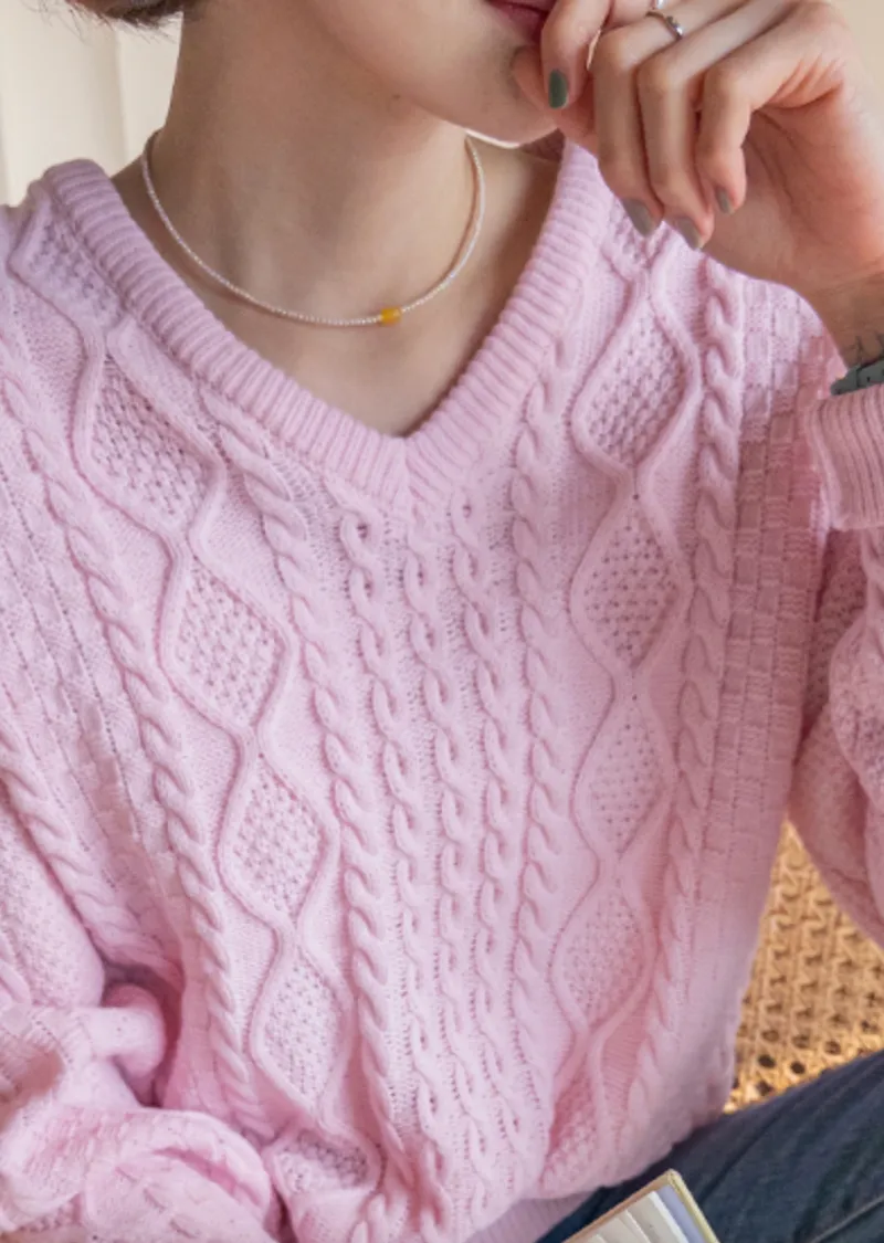 【立體扭紋編織針織衫】【可愛的粉紅色調】【領口細節營造浪漫氛圍】【非常適合搭配襯衫疊穿】