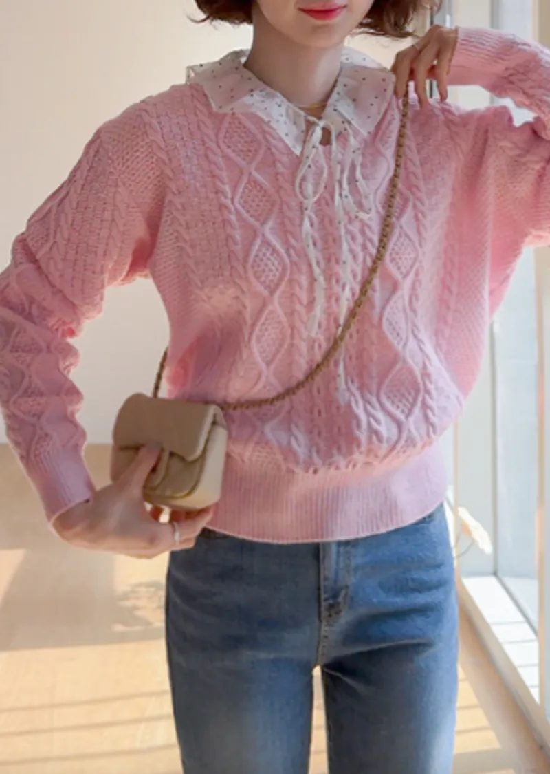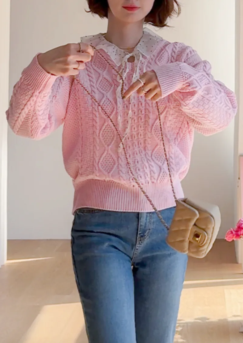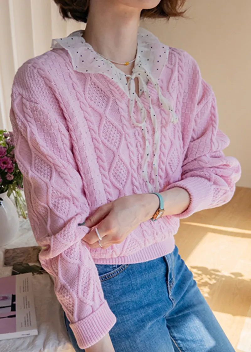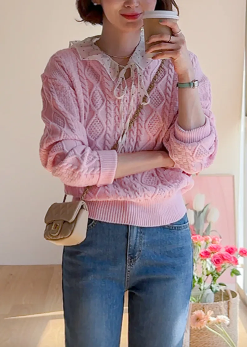【立體扭紋編織針織衫】【可愛的粉紅色調】【領口細節營造浪漫氛圍】【非常適合搭配襯衫疊穿】
