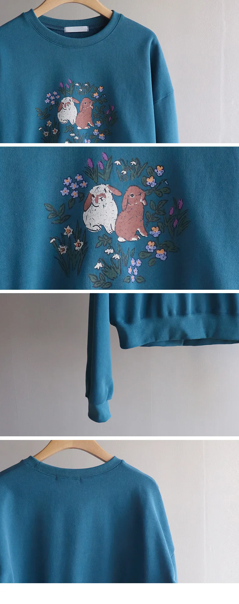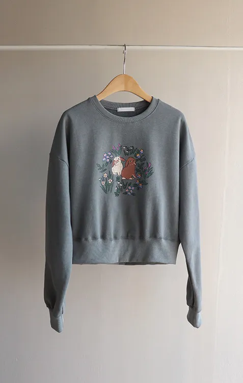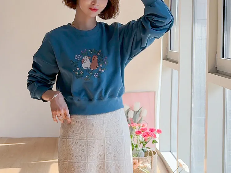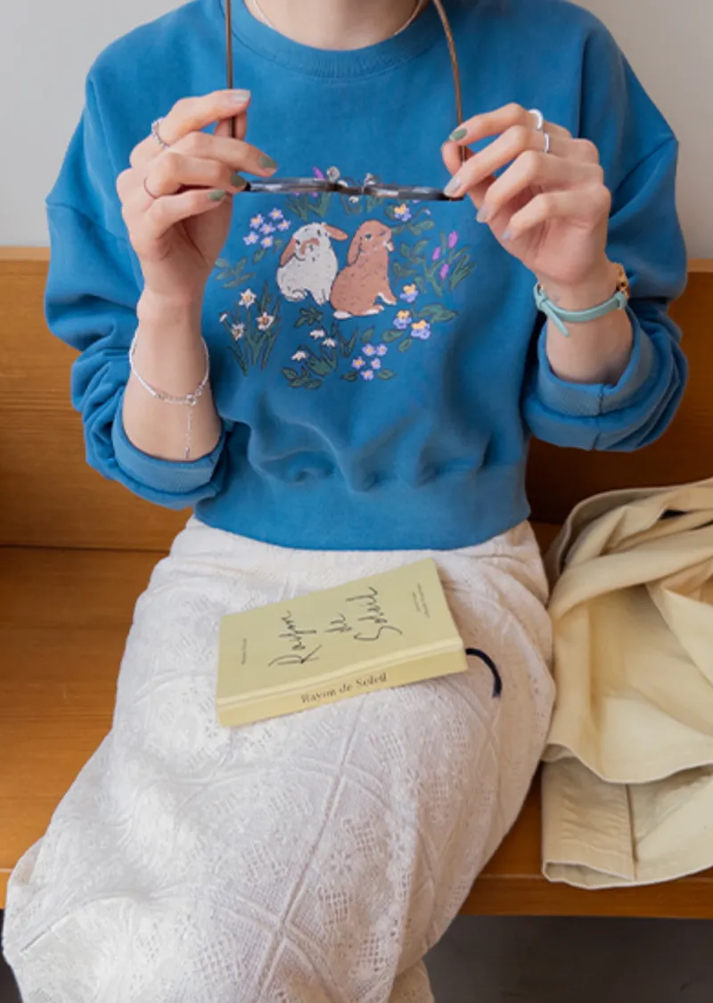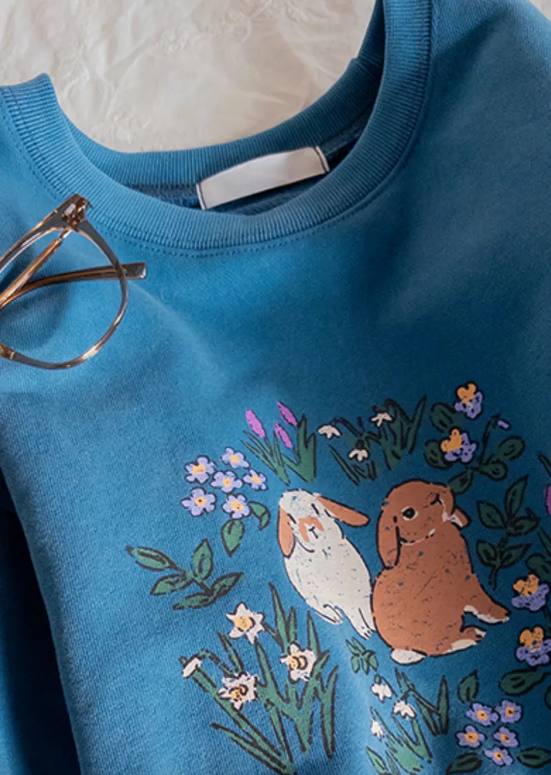 【半剪裁長度設計,打造完美比例造型】【可愛的花朵和兔子印花】【寬鬆舒適】【一款獨具特色的上衣,絕對吸睛】