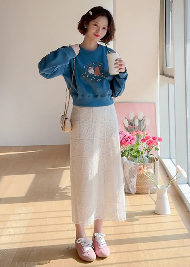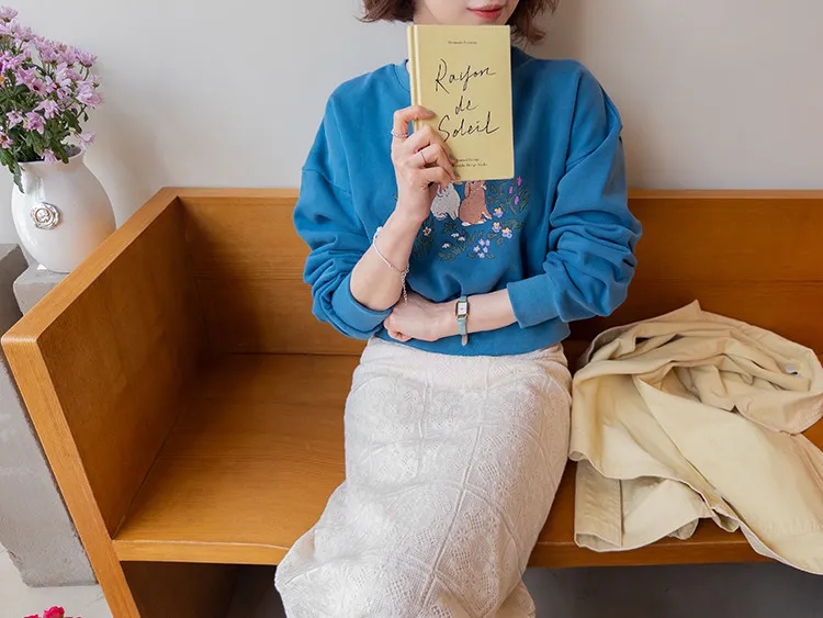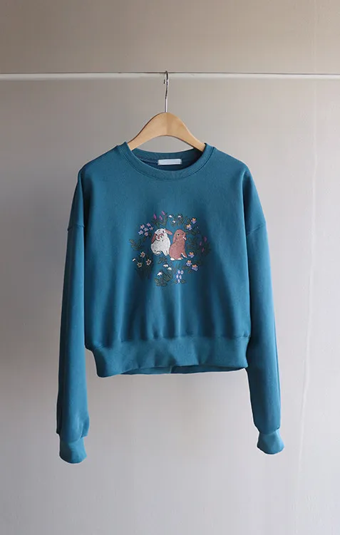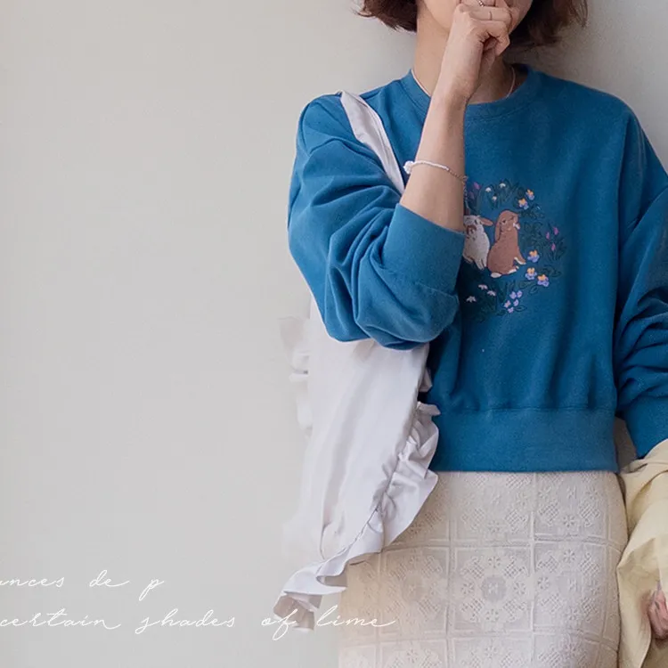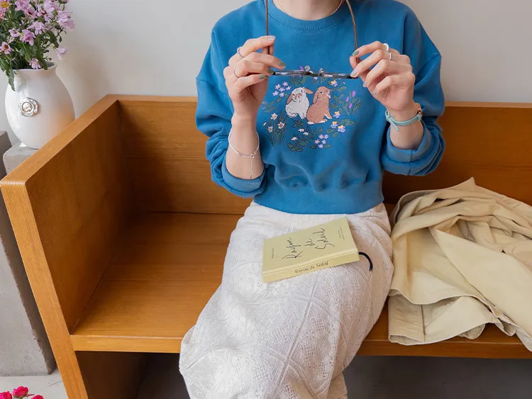 【半剪裁長度設計,打造完美比例造型】【可愛的花朵和兔子印花】【寬鬆舒適】【一款獨具特色的上衣,絕對吸睛】