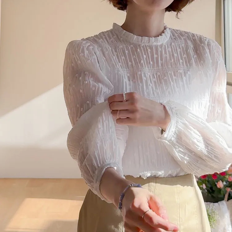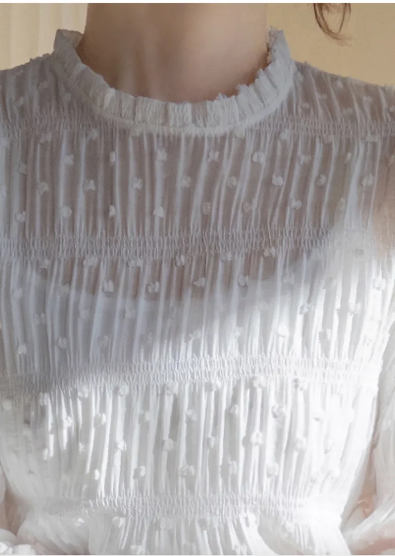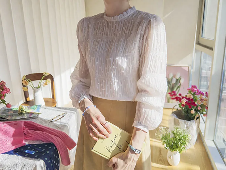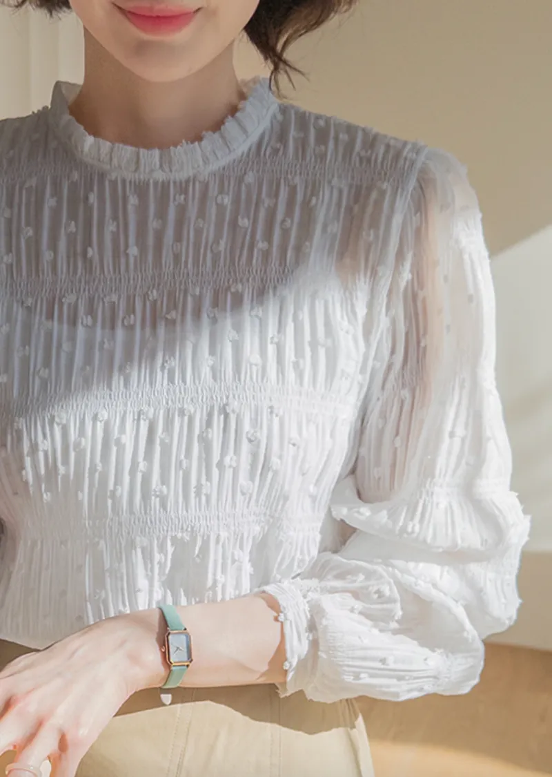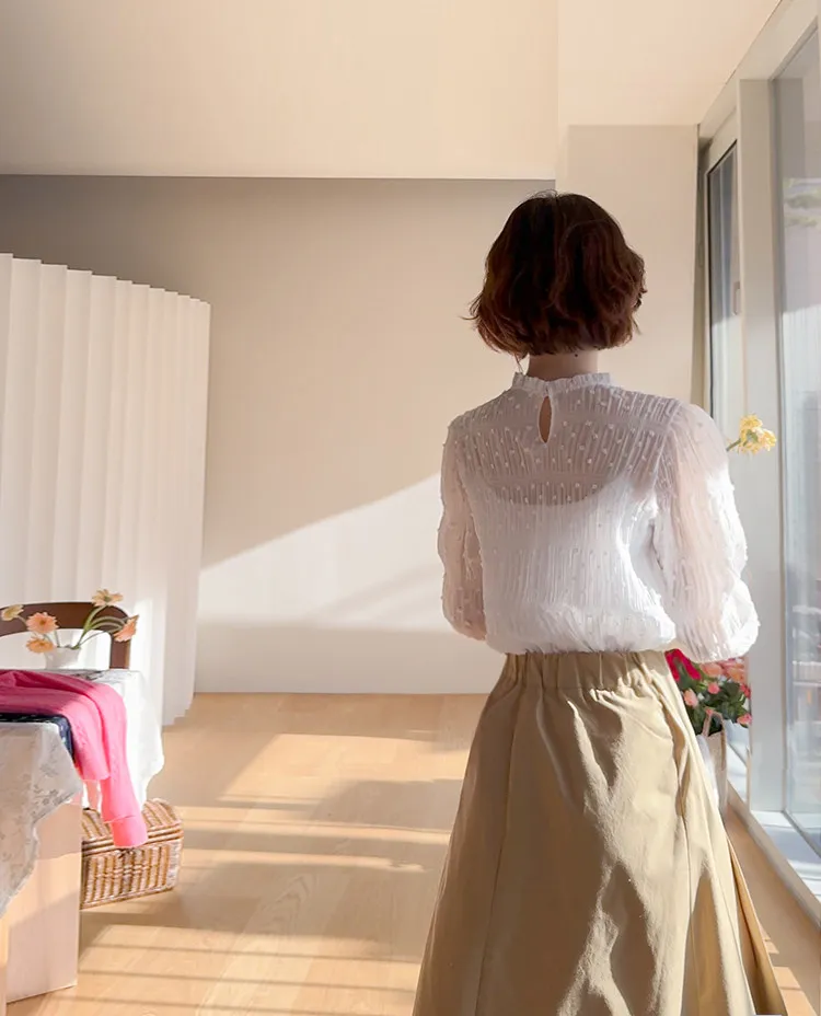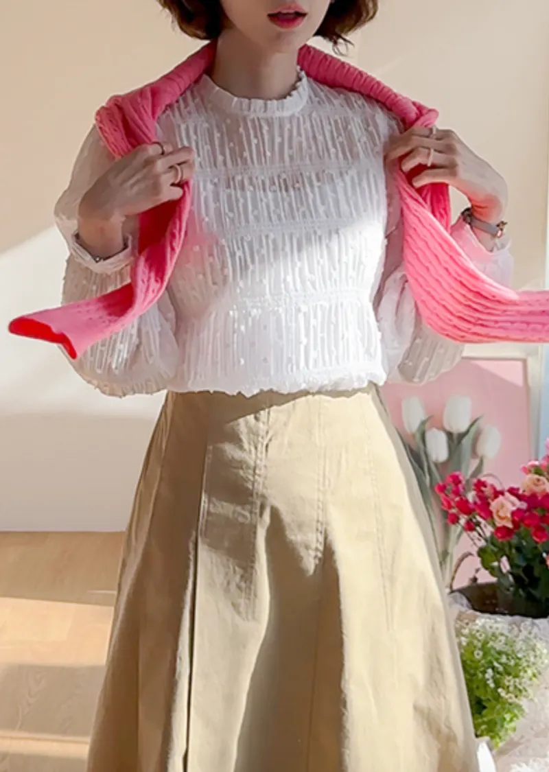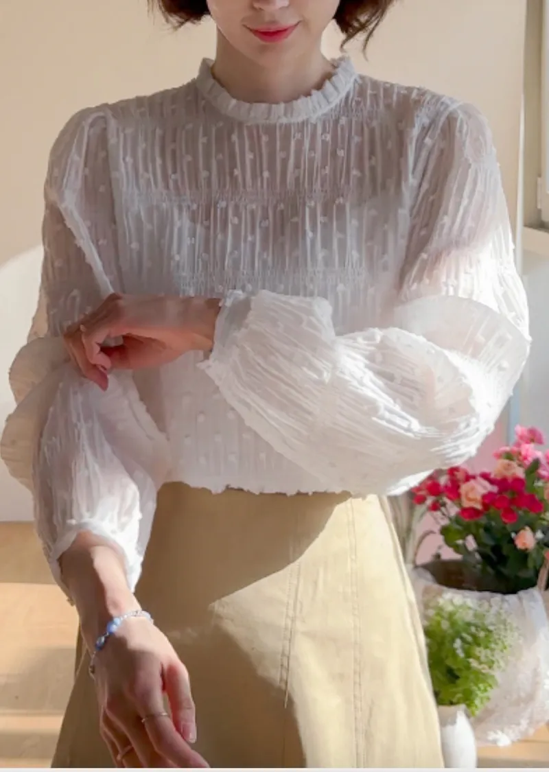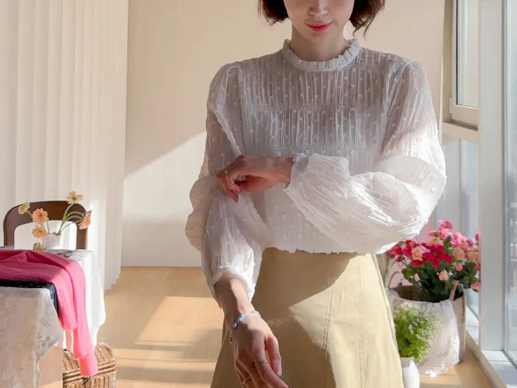 【蓬鬆感十足的雪花上衣♥】【泡泡袖設計很漂亮~】【布料柔軟細膩,看起來很精緻! 】【陽光下更美! 】